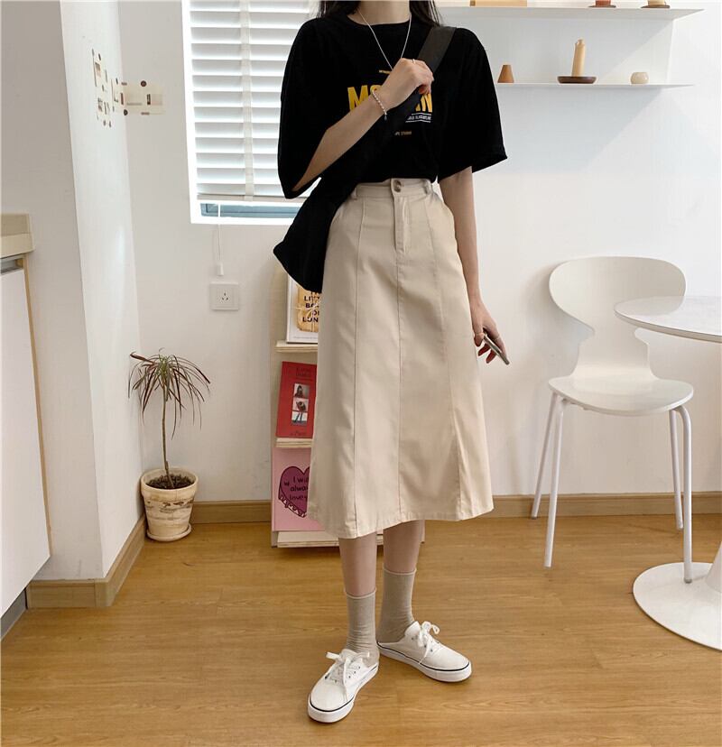 黒のスカート女性の小さな夏香港スタイルのレトロシックなスカートハイウエスト細いミドル丈Aライン傘スカート ハイウェスト ブラック サマー 夏物 7460028208257922 | framboise21