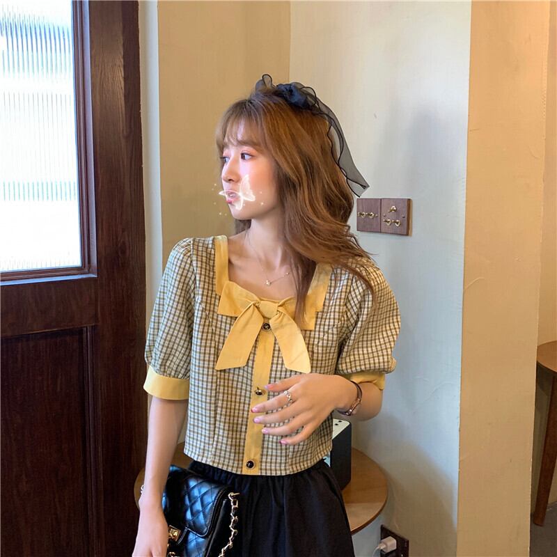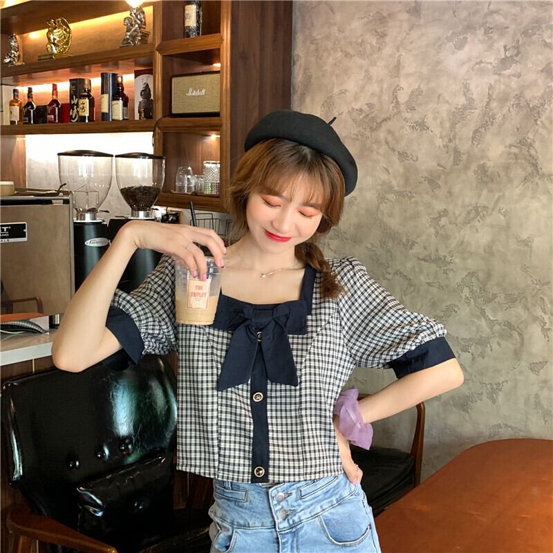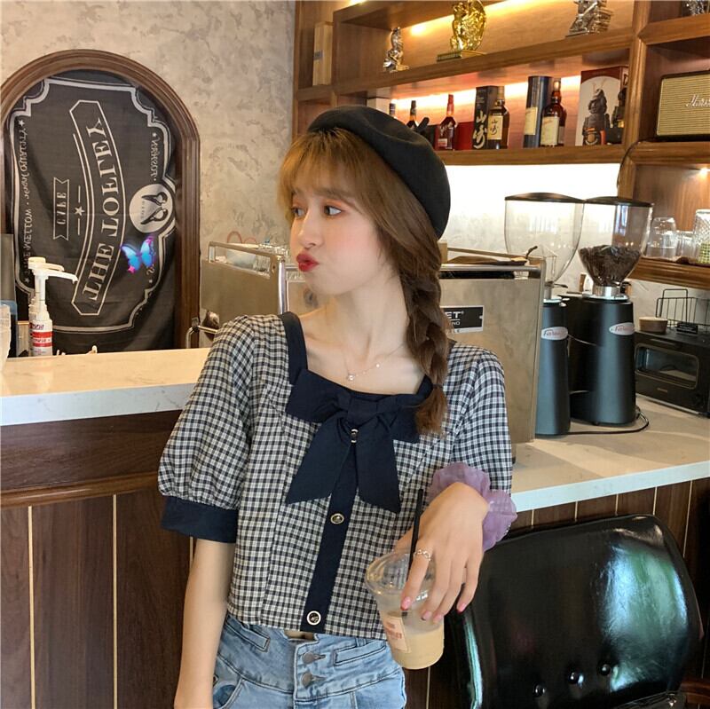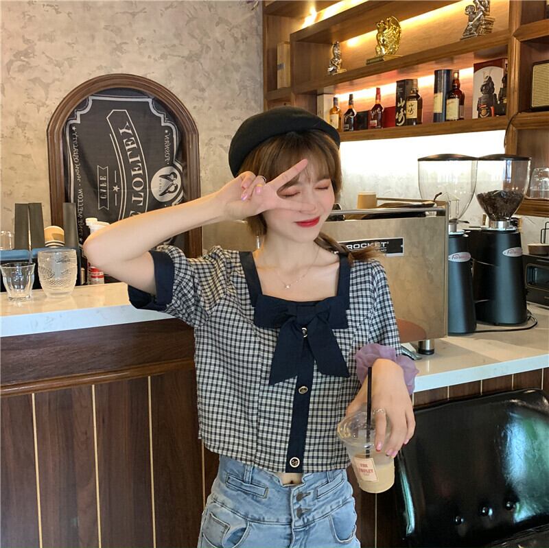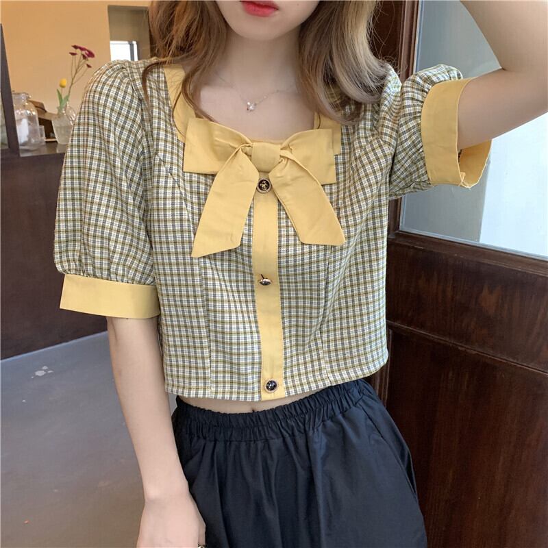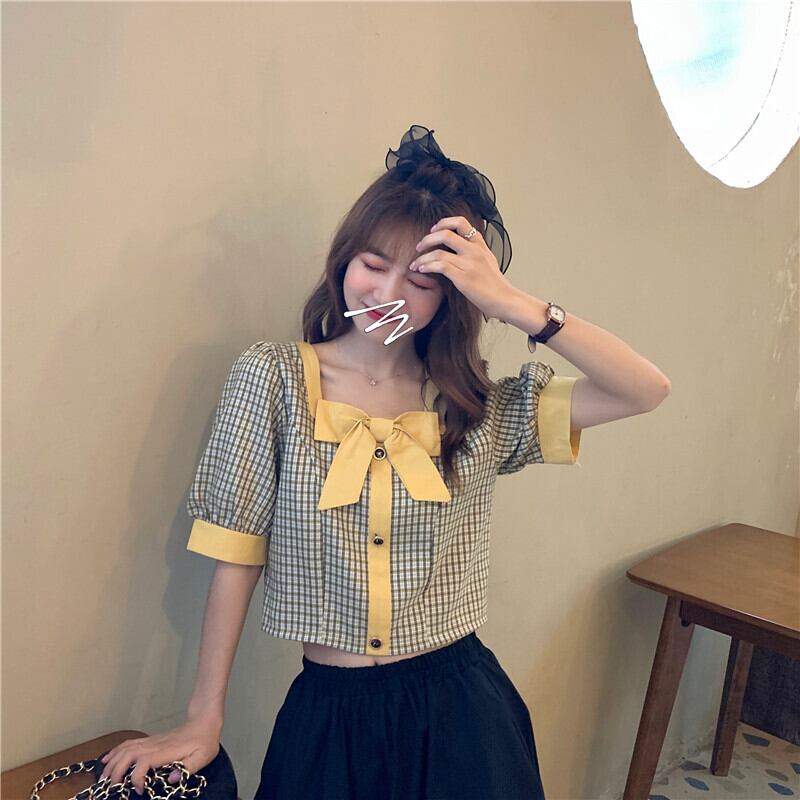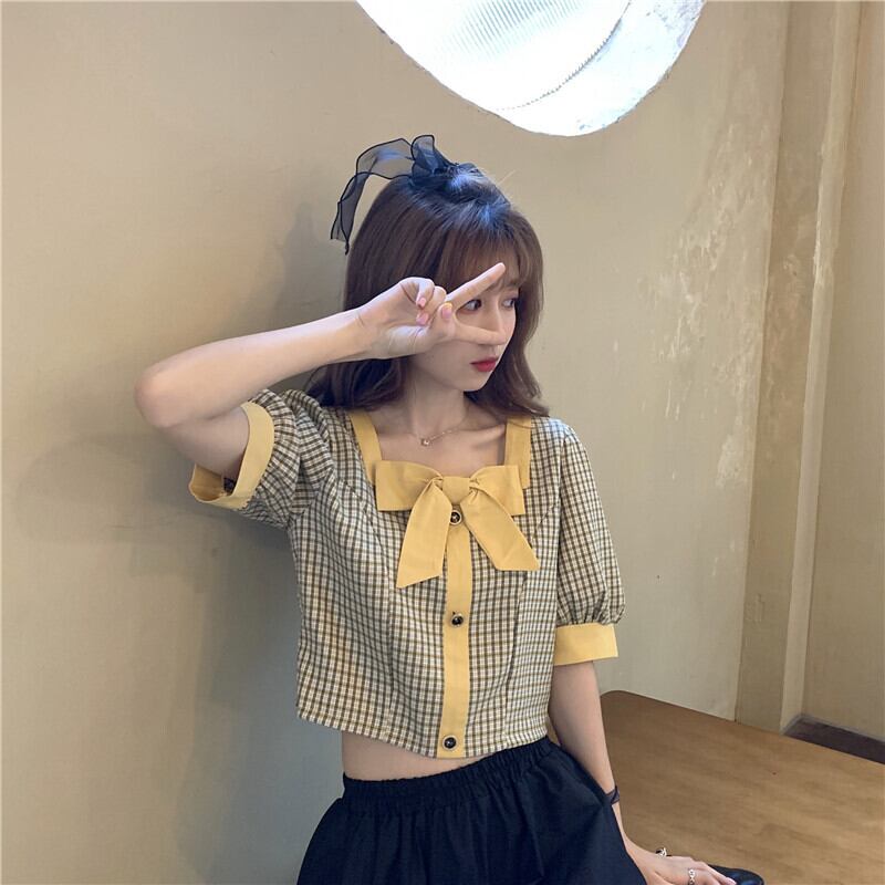 ハイウエストパンツ、チェック柄シャツ、レディースショート、スモール、ウエスト、スモールシャツ、ショートウエスタンスタイル、スクエアカラー、コントラストカラーのショートトップ ハイウェスト スクウェア 7460094271027192 | framboise21