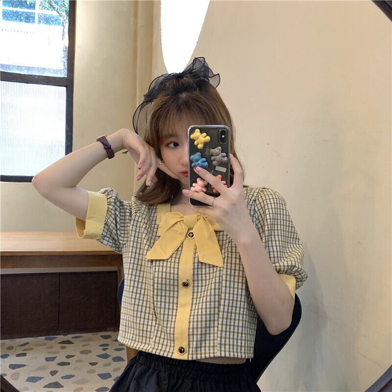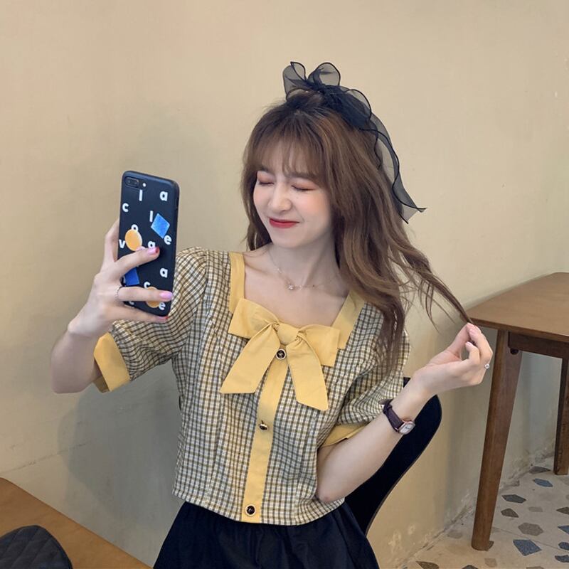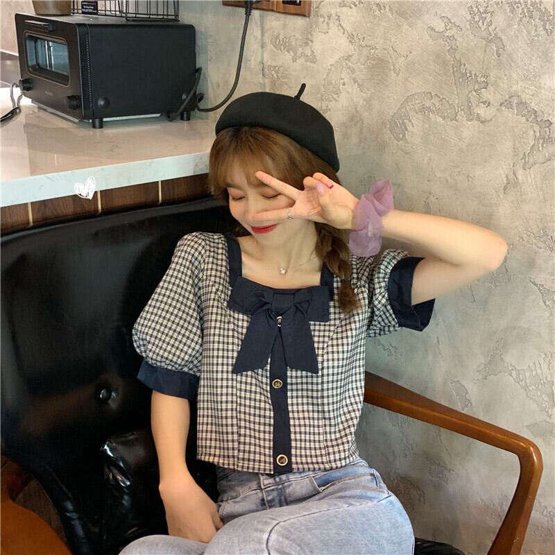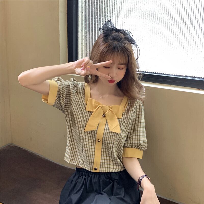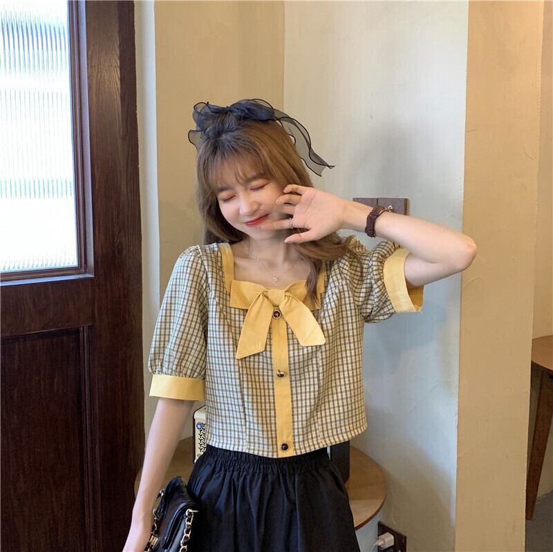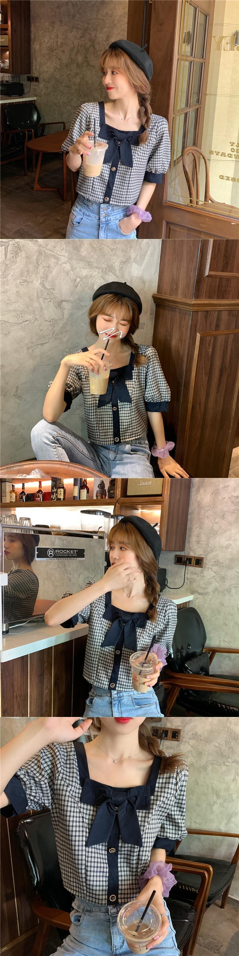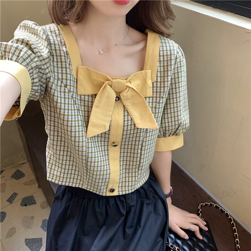 ハイウエストパンツ、チェック柄シャツ、レディースショート、スモール、ウエスト、スモールシャツ、ショートウエスタンスタイル、スクエアカラー、コントラストカラーのショートトップ ハイウェスト スクウェア 7460094271027192 | framboise21