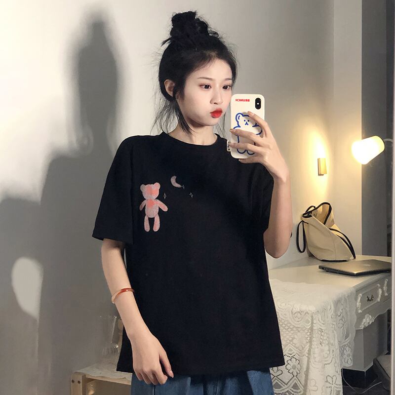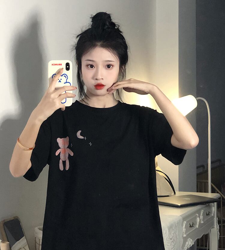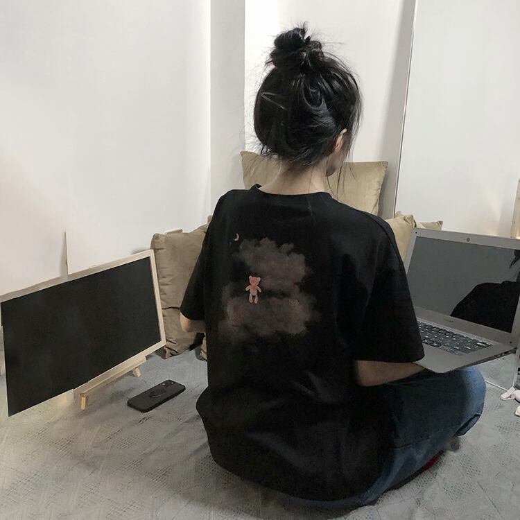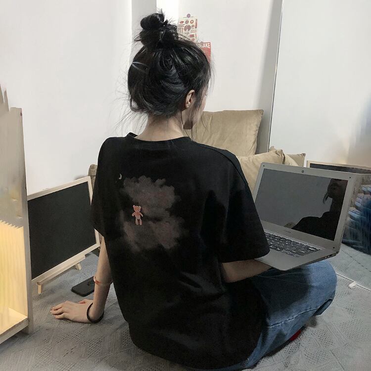ヴィンテージフロントショルダーブラック半袖Tシャツ女性イントレンディなクールな薄くて薄い夏のルーズバージョントップボトミングシャツ サマー 夏物 ビンテージ 7460020066462722 | framboise21