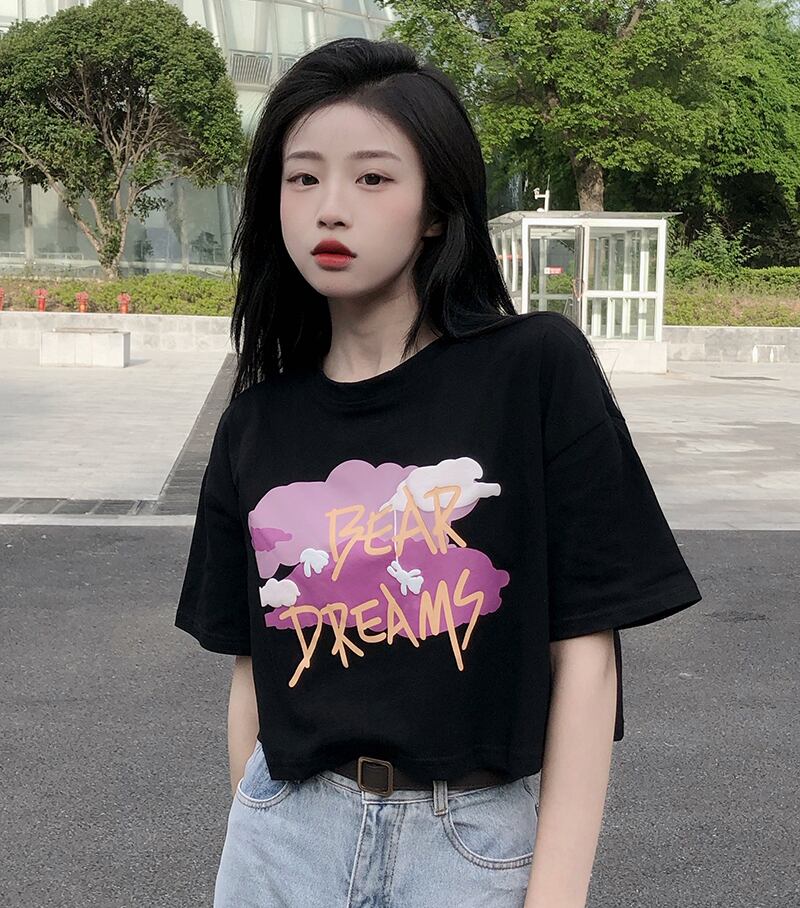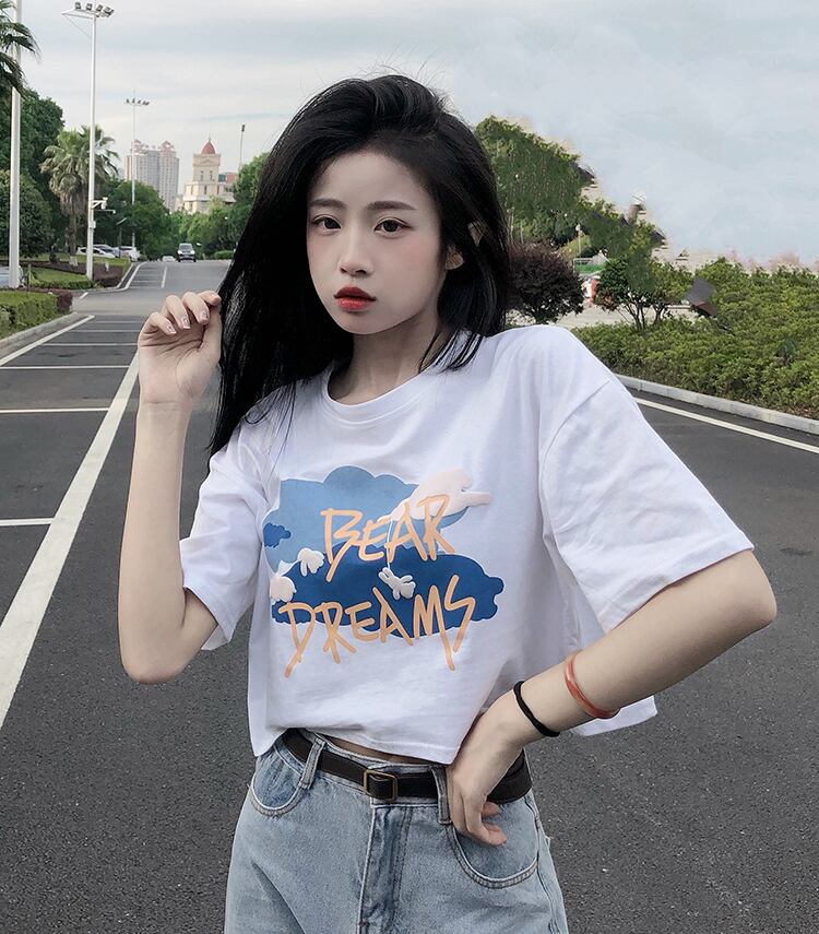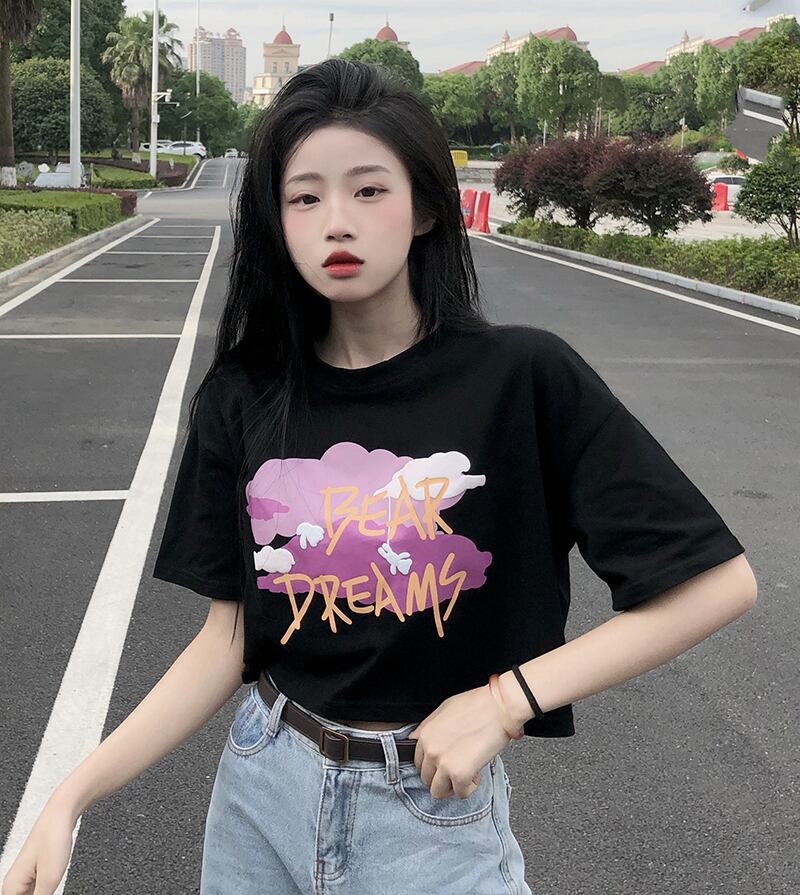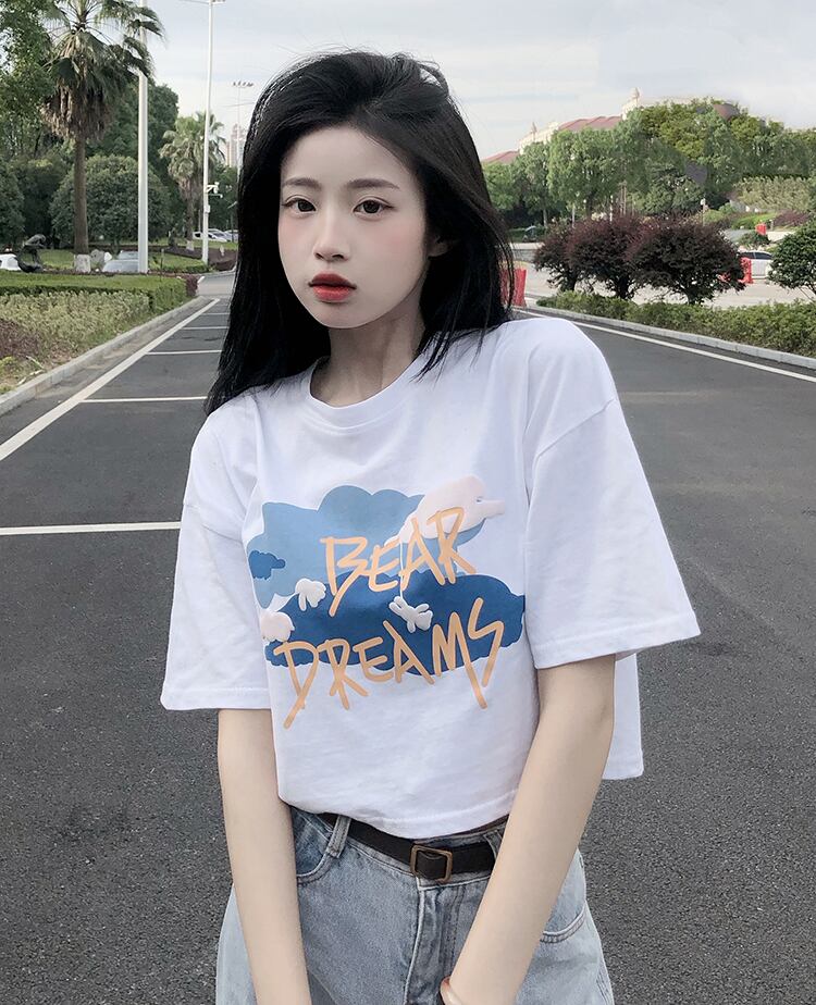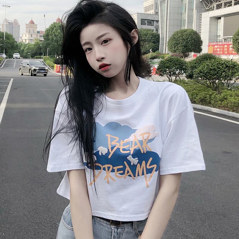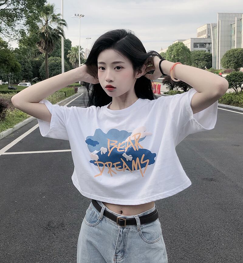 ラウンドネックボトミングシャツレディースデザインセンススモールプリント香港スタイル半袖Tシャツ新しい甘くてスパイシーな夏 大人ガーリー スウィート キュート カジュアル サマー 夏物 Oネック 746001111457353 | framboise21