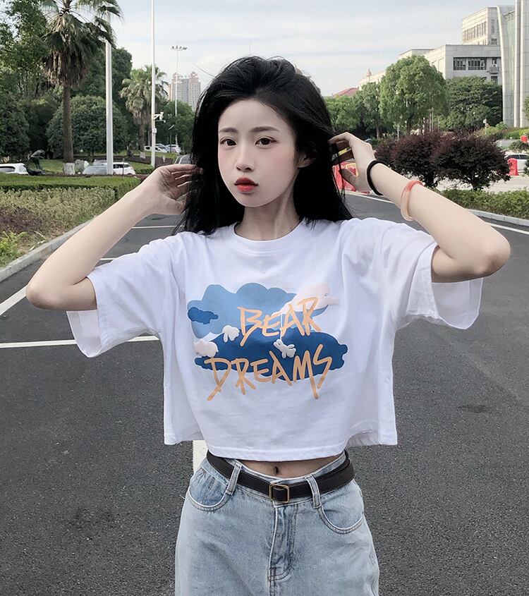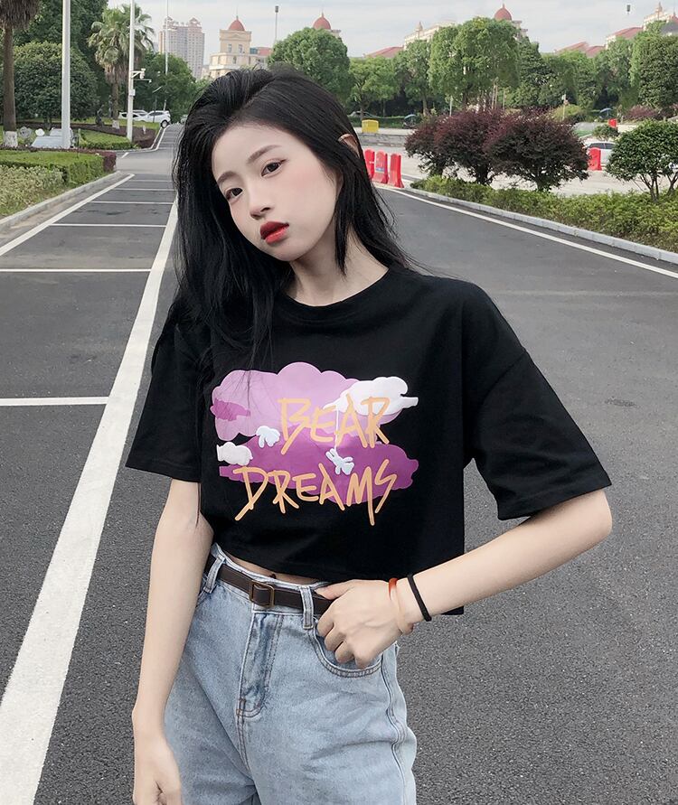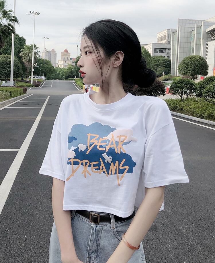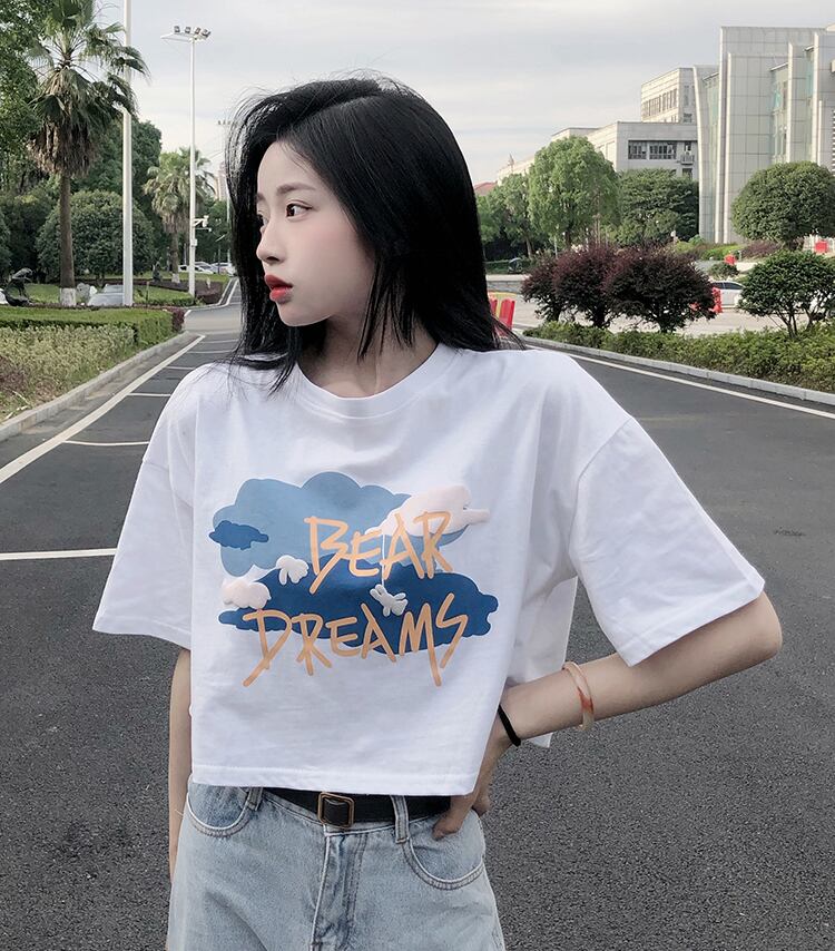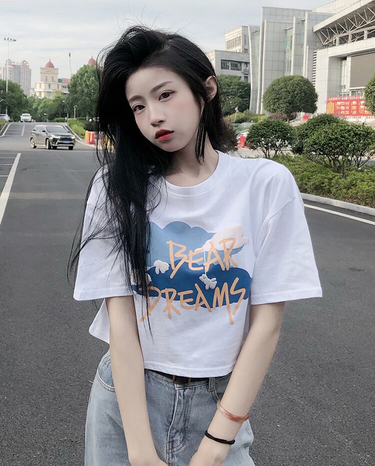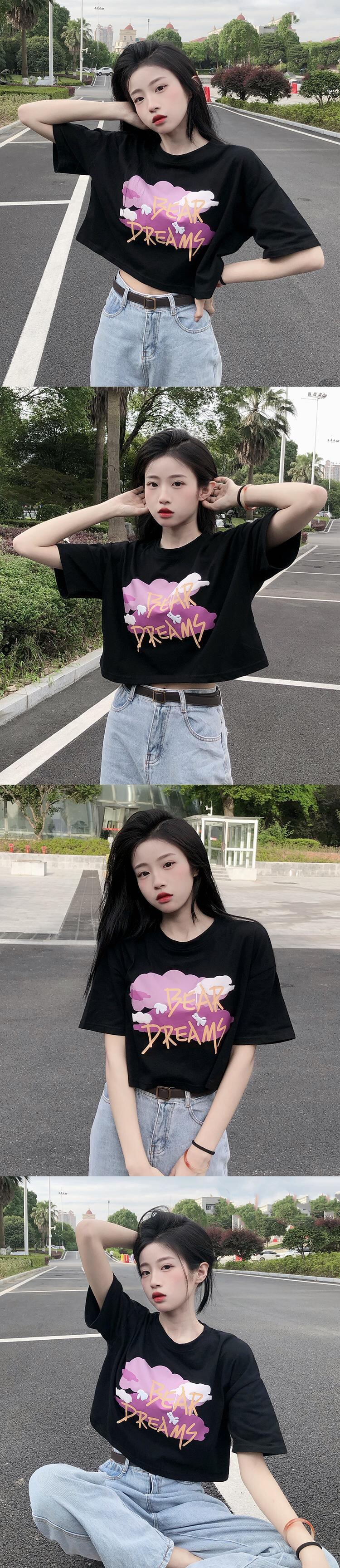 ラウンドネックボトミングシャツレディースデザインセンススモールプリント香港スタイル半袖Tシャツ新しい甘くてスパイシーな夏 大人ガーリー スウィート キュート カジュアル サマー 夏物 Oネック 746001111457353 | framboise21