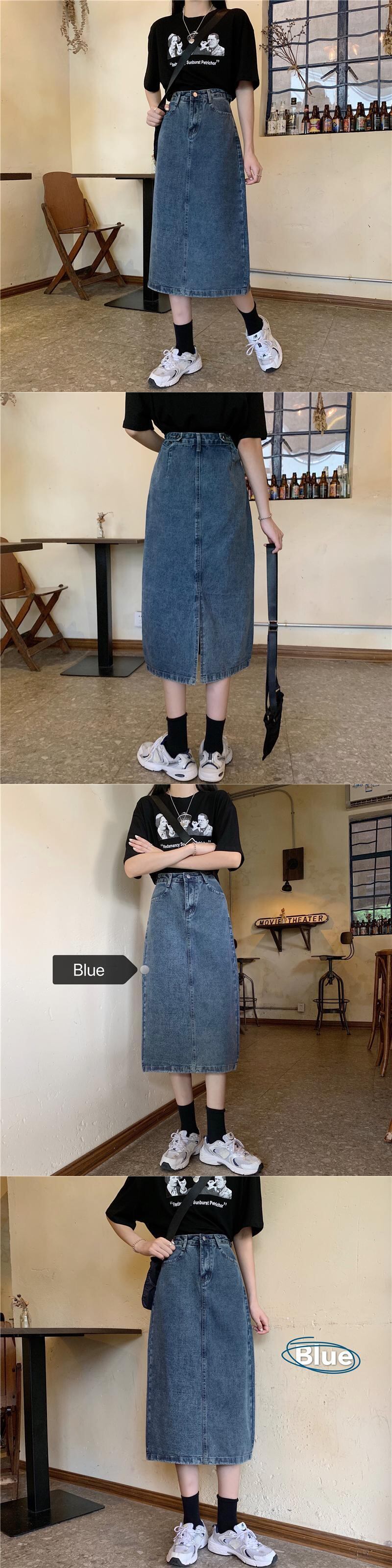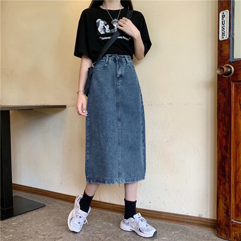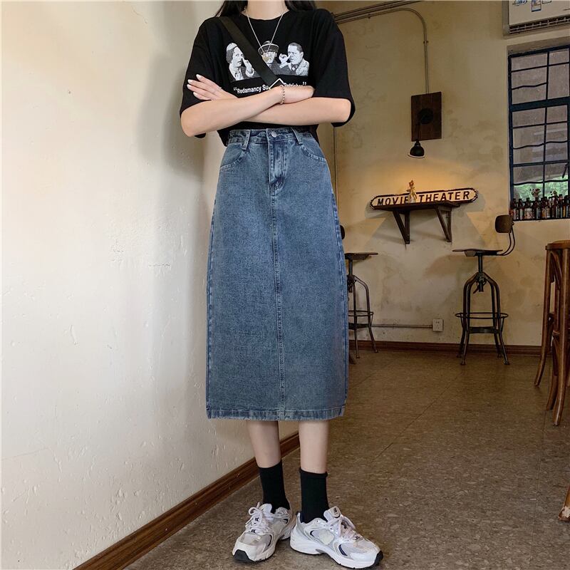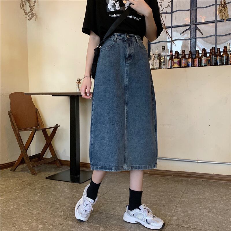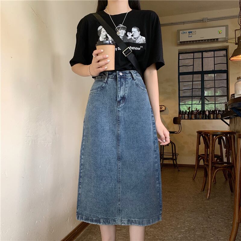 フレンチレトロデニムスカートレディースサマーハイウエストAラインバッグヒップレングススカートが股間をカバーし、ミドル丈の薄手のスカートを見せてくれます ハイウェスト 夏物 7460094809405179 | framboise21