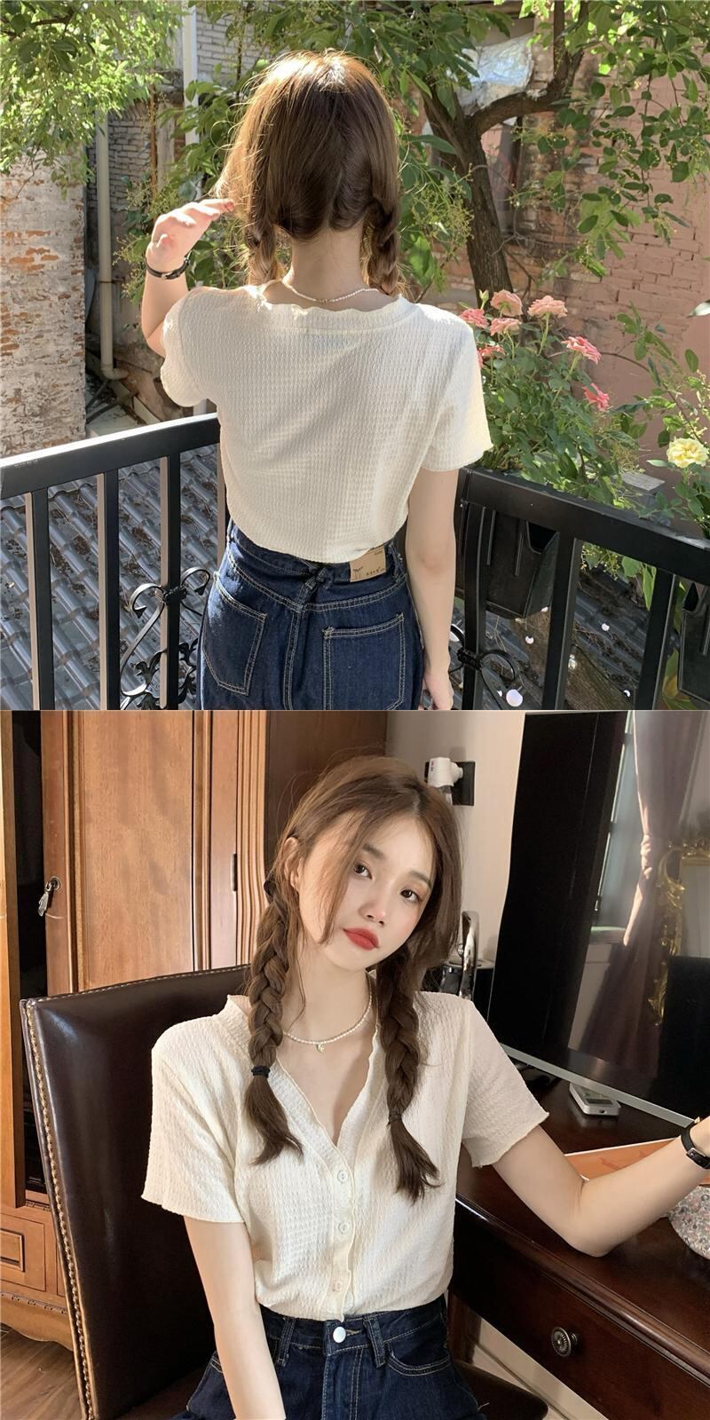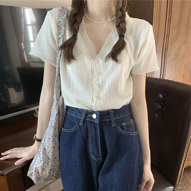 2022年の新しい白い香港スタイルの半袖シャツの女性のデザインセンスニッチな夏フランスの小さな新鮮で甘いトップ ホワイト 大人ガーリー スウィート キュート カジュアル サマー 夏物 7460055924899826 | framboise21