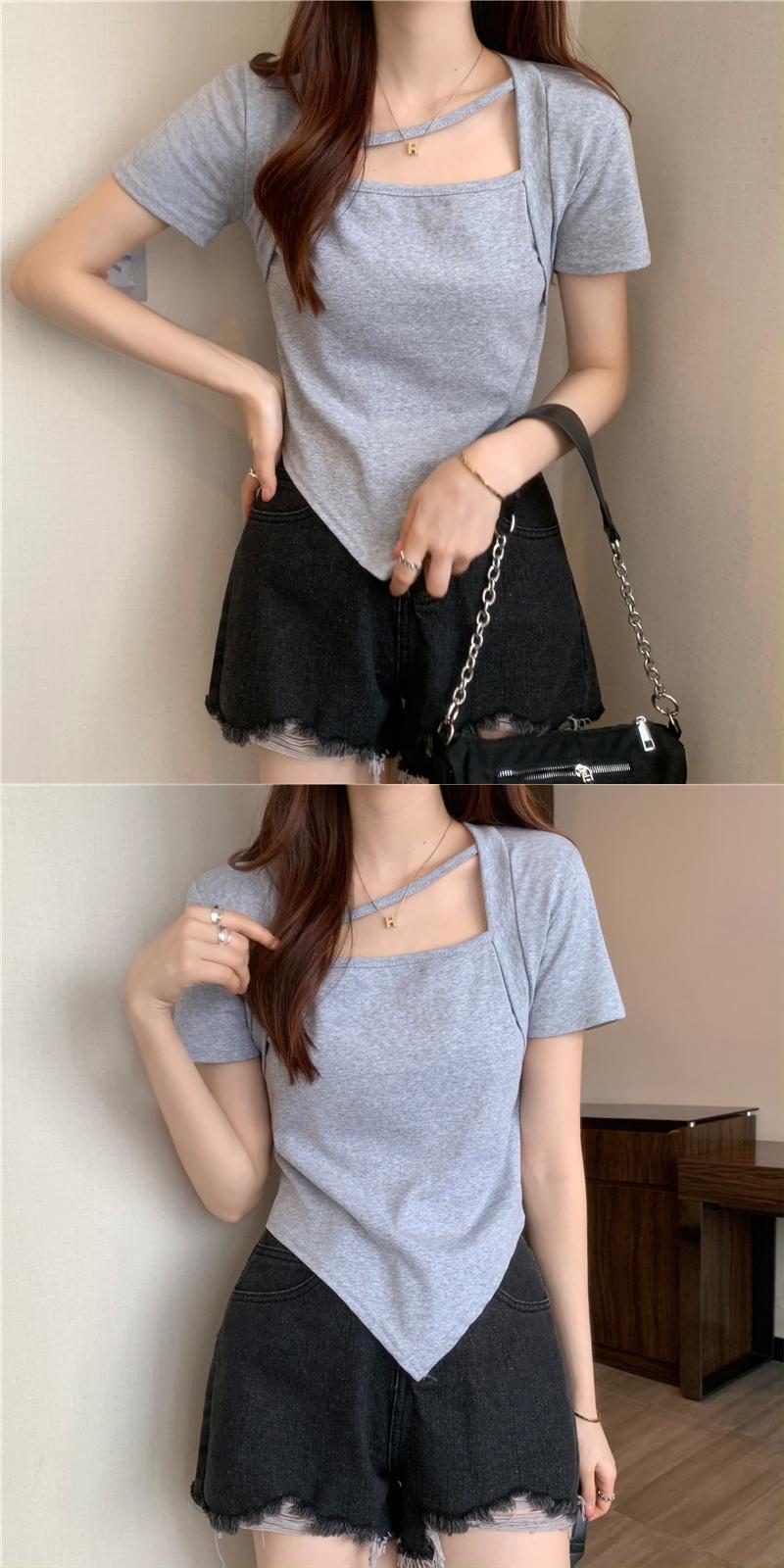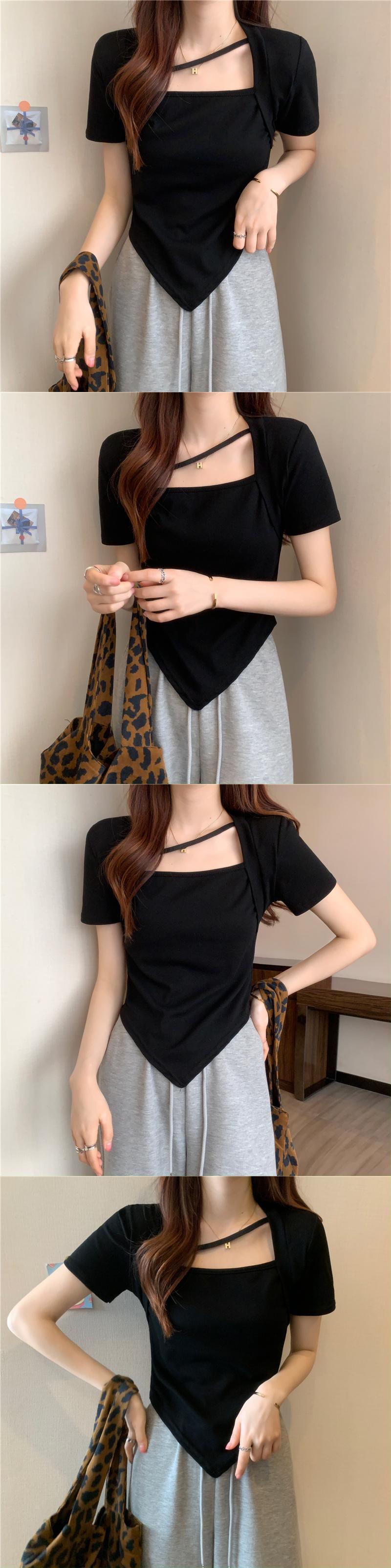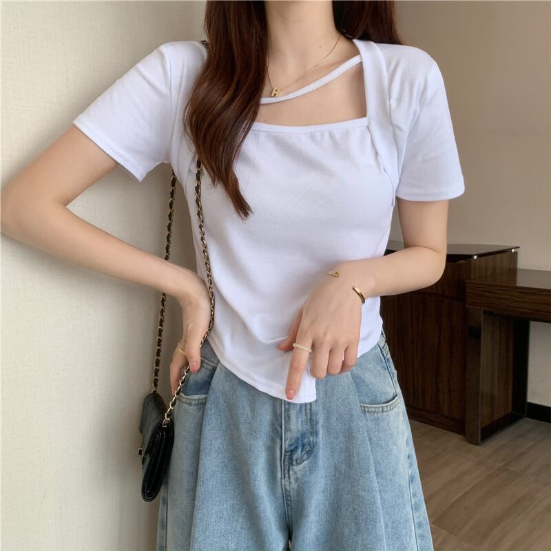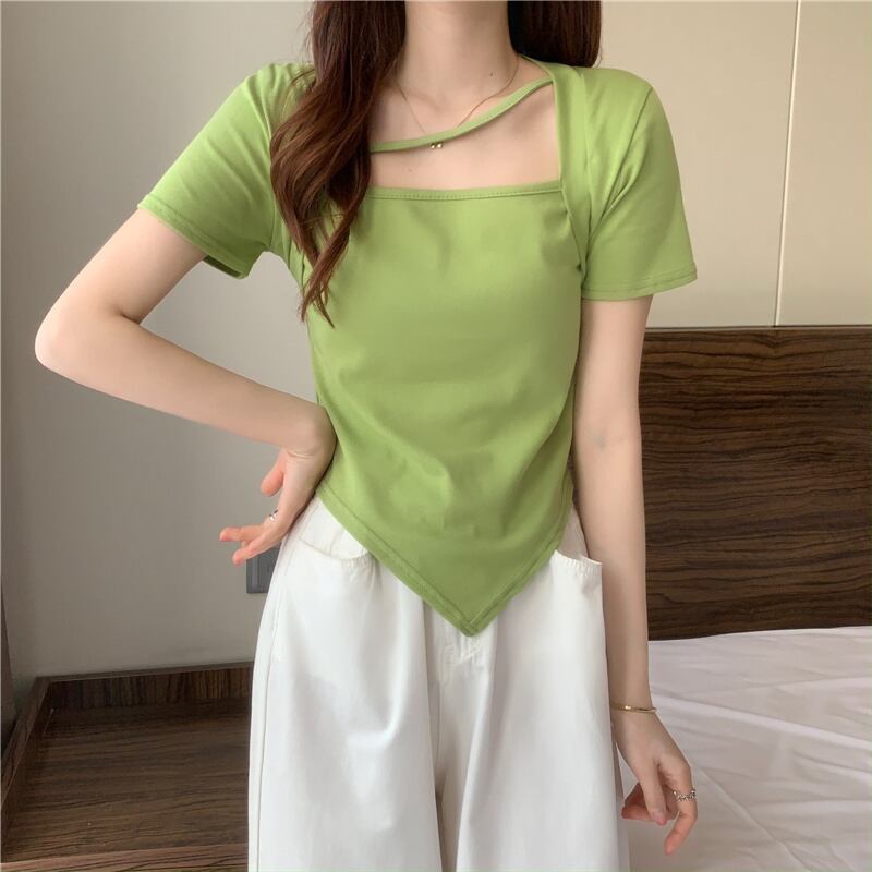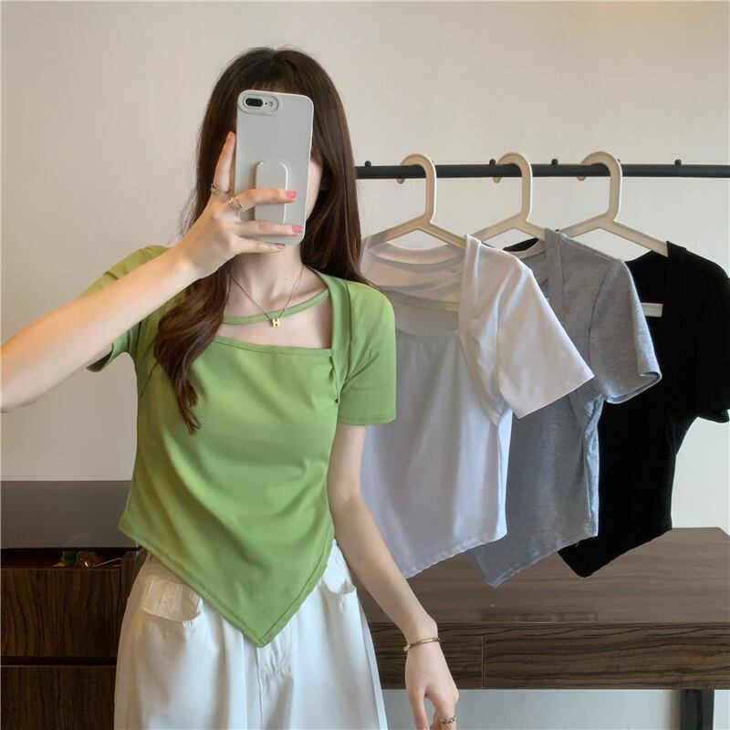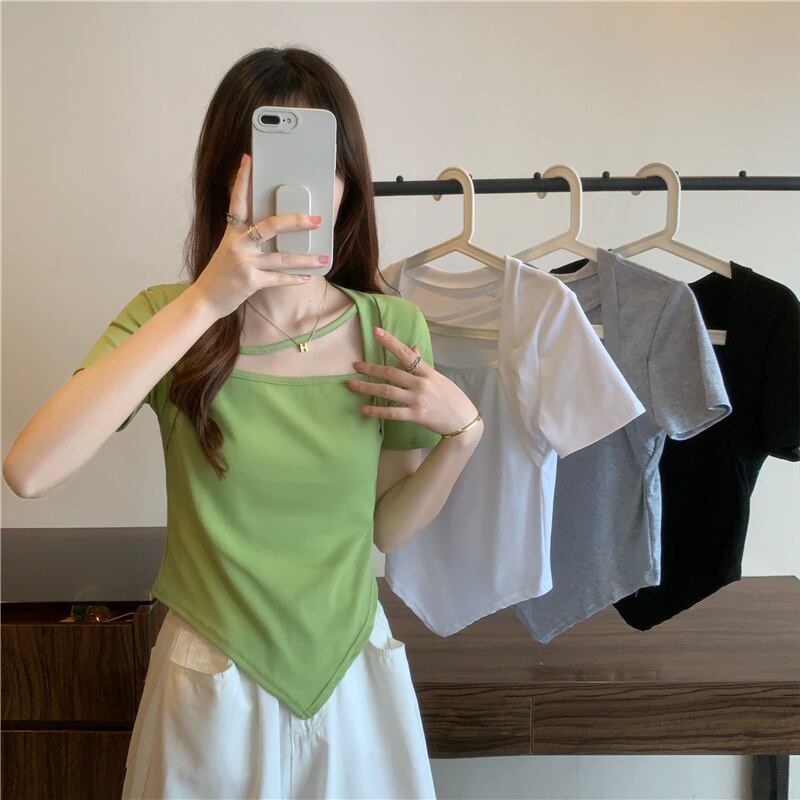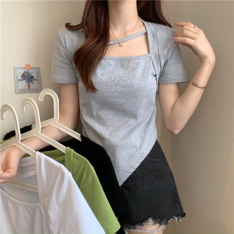スウィートスパイスガールスクエアネック半袖Tシャツ2022年夏ウィメンズイレギュラーセンススモールウエストショートトップ ハーフスリーブ 大人ガーリー キュート カジュアル サマー 夏物 スクウェア 7460037069962858 | framboise21