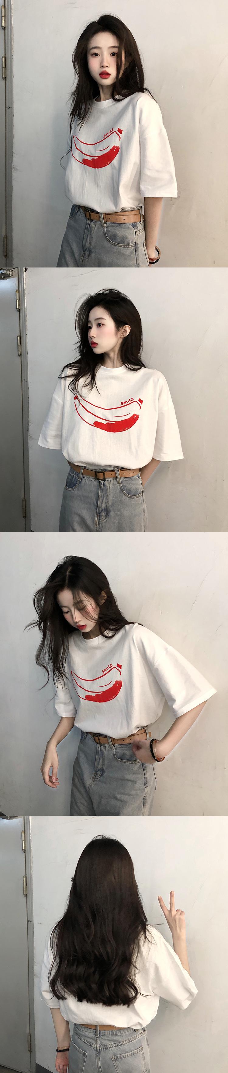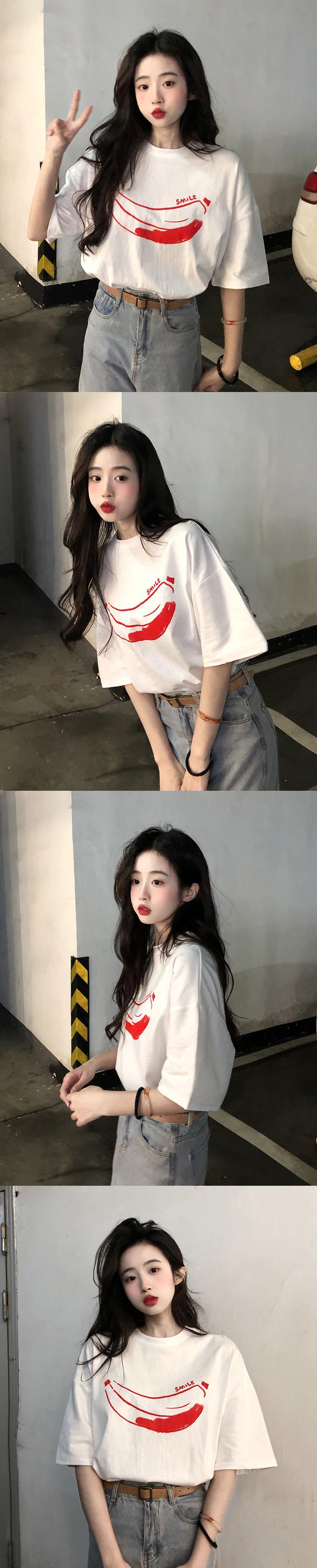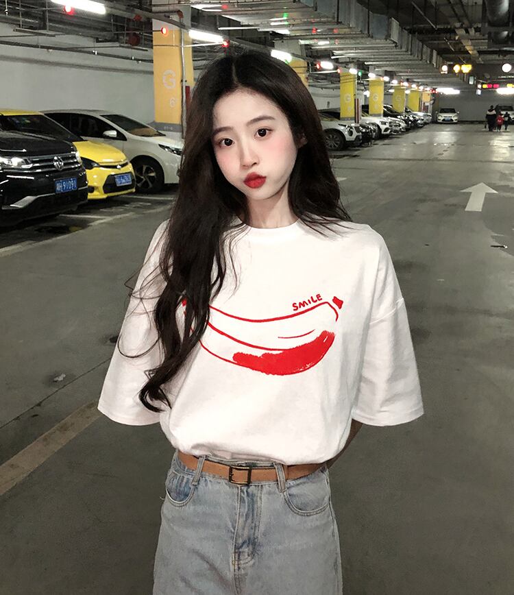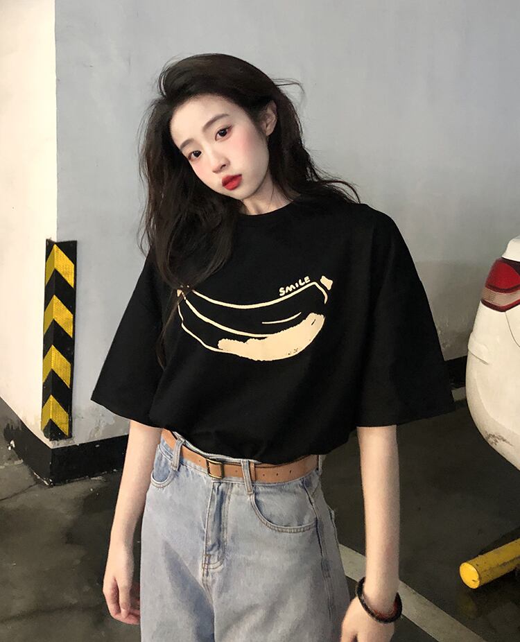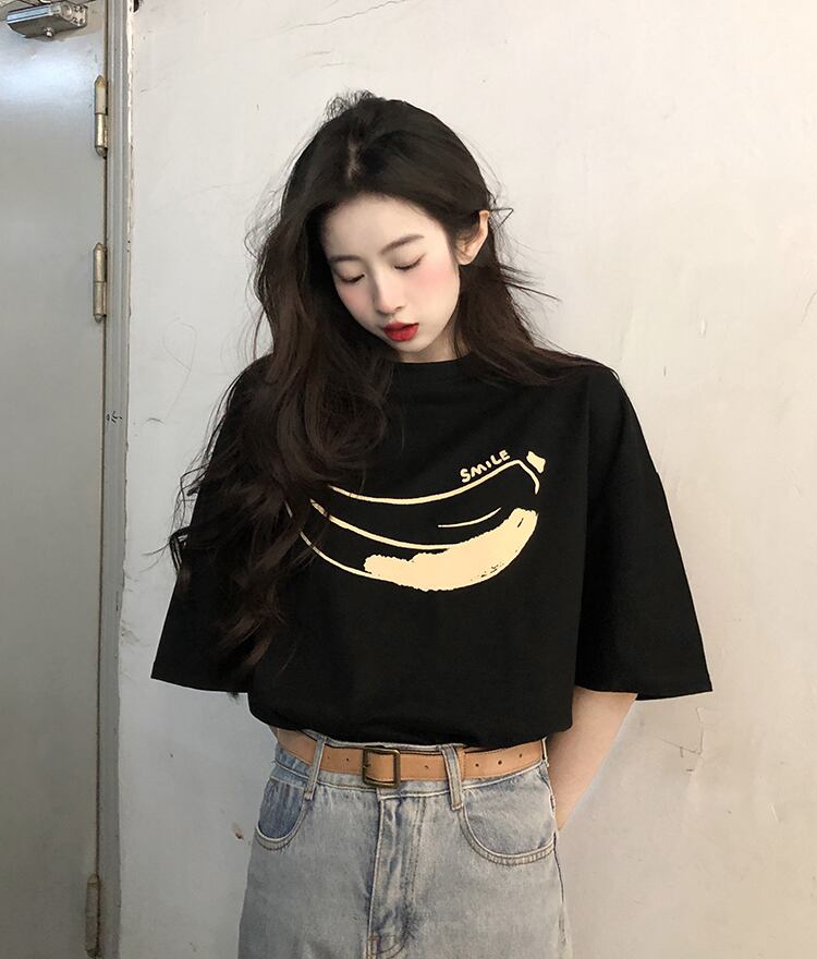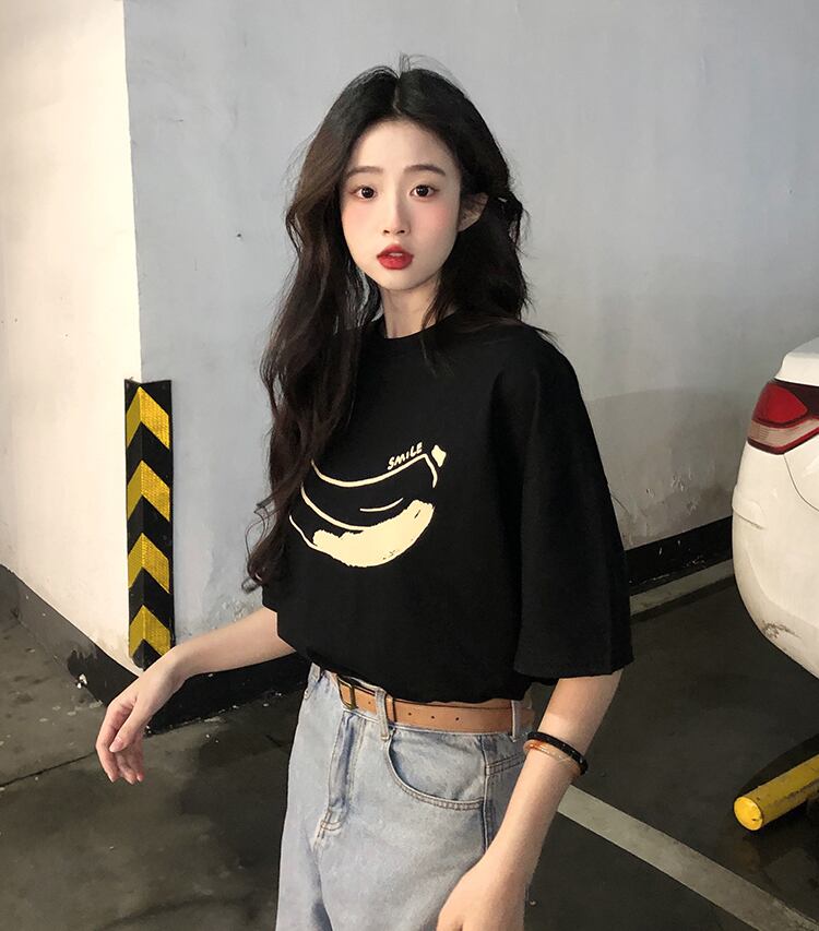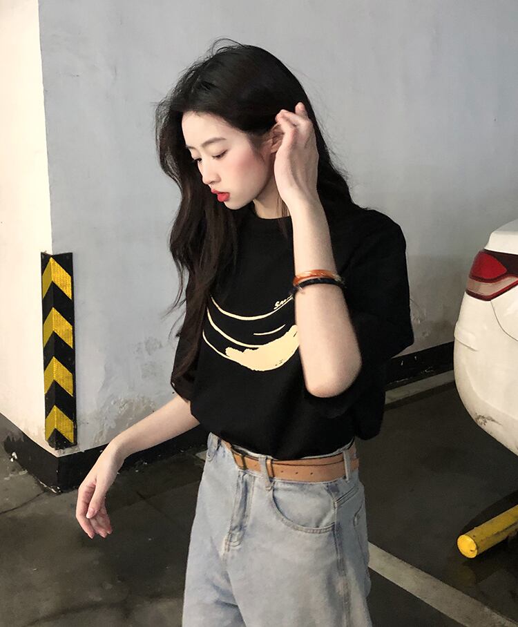 2022年春夏新バージョンプリント半袖ルーズTシャツレディーススモールラウンドネックパーソナライズトップ スプリング 春物 サマー 夏物 Oネック 7460073144125518 | framboise21