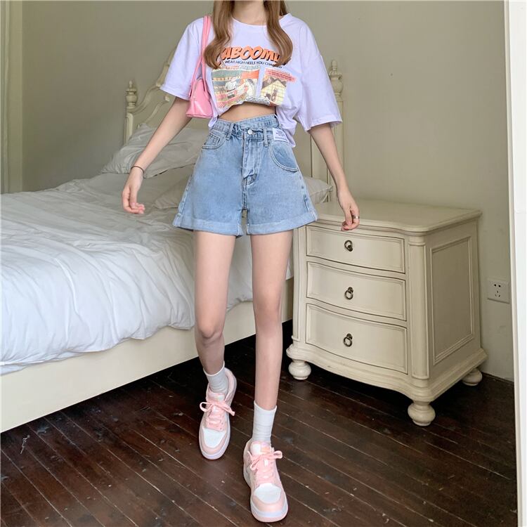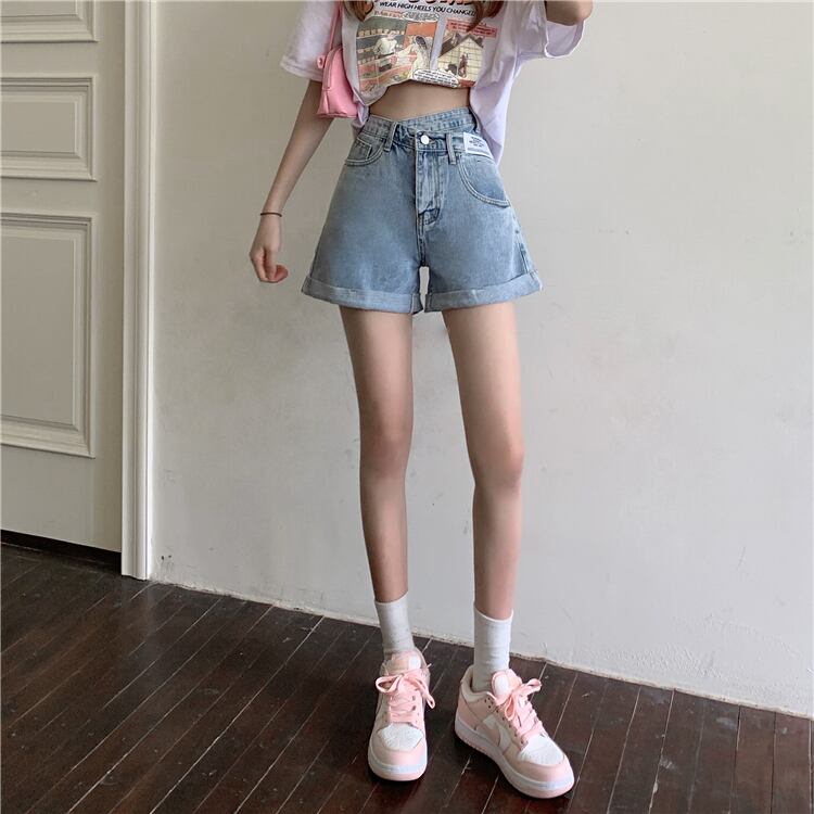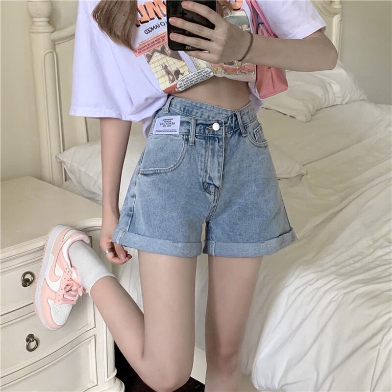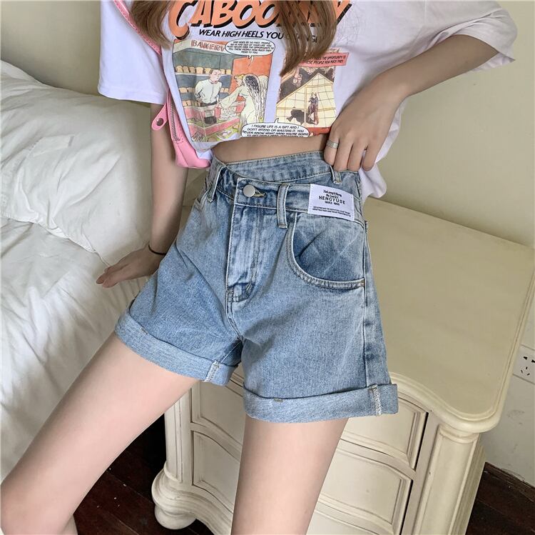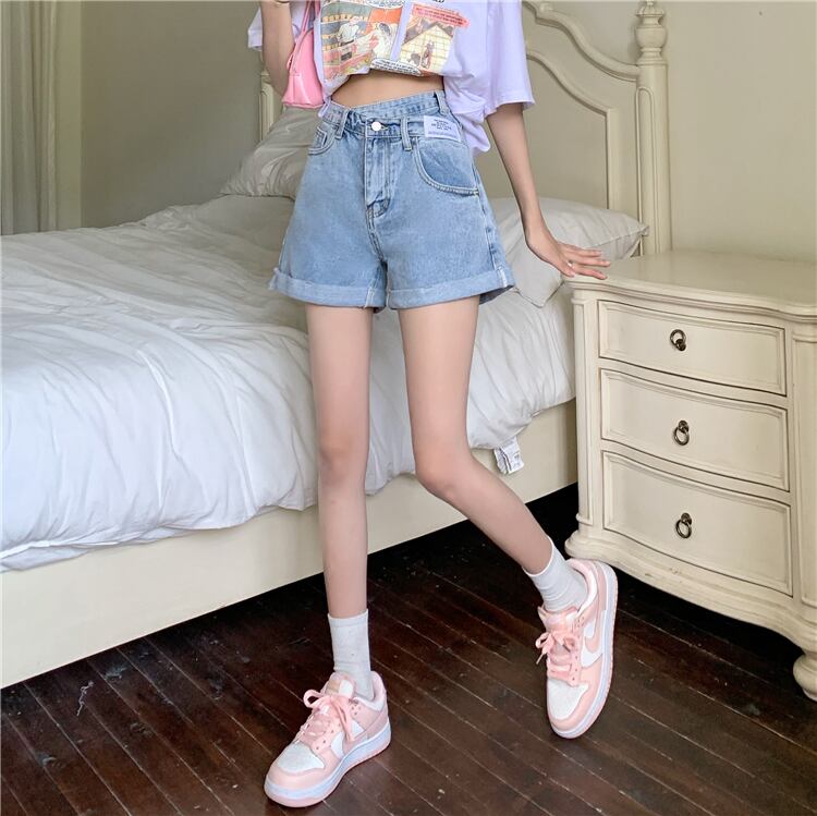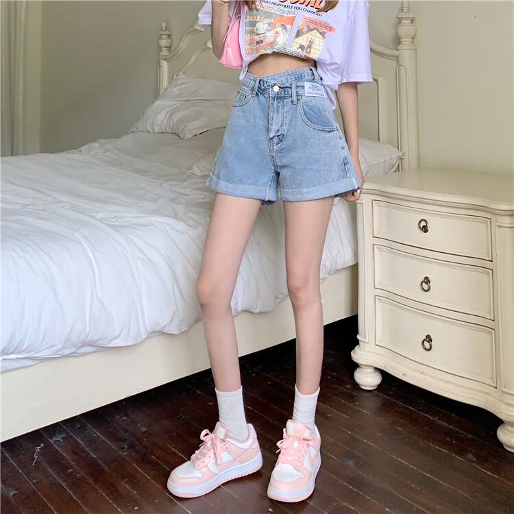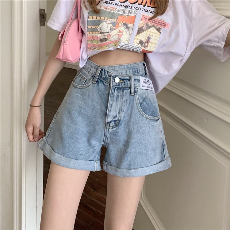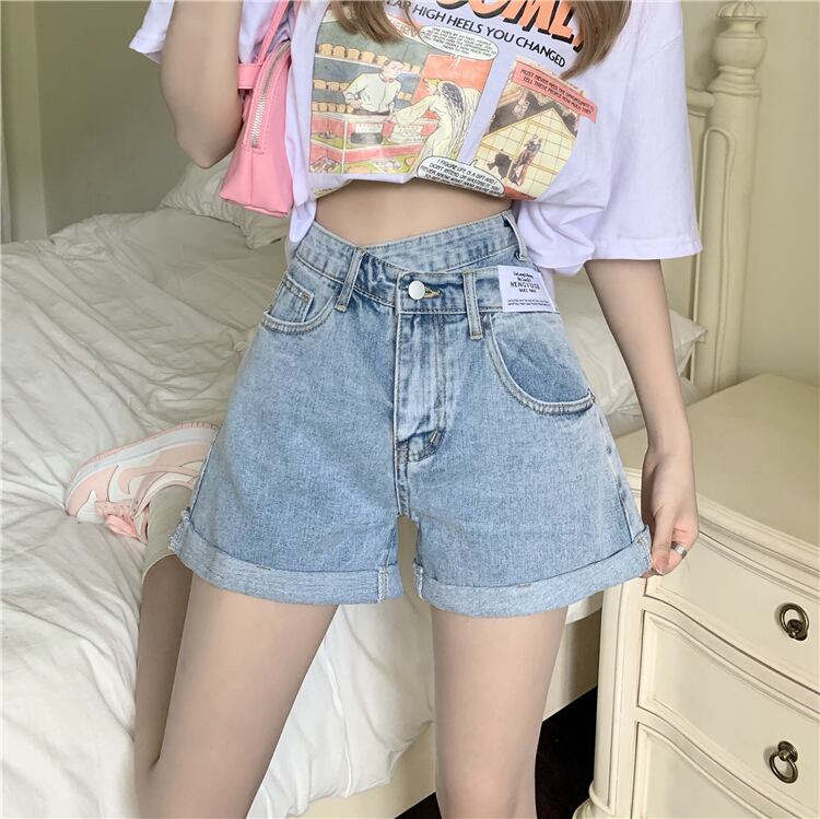 不規則なデニムショーツ女性の夏の明るい色のハイウエストの薄いルーズストレートaラインワイドレッグパンツは薄いセクションを丸めた レッド サマー 夏物 ブルマー 7460063244894238 | framboise21