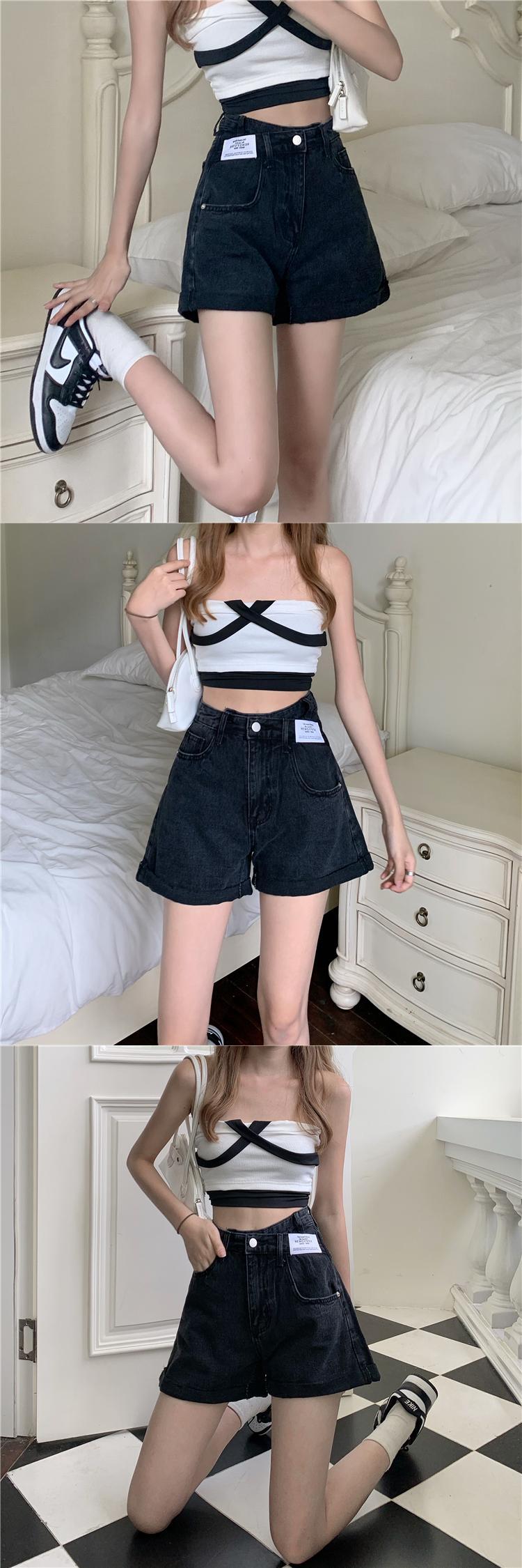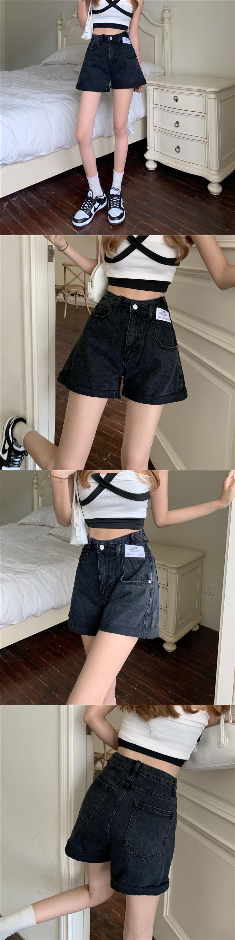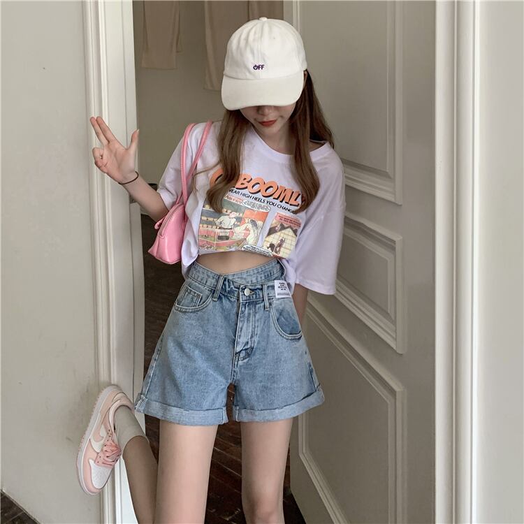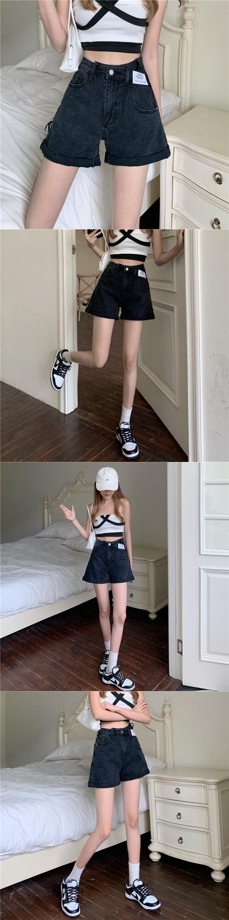 不規則なデニムショーツ女性の夏の明るい色のハイウエストの薄いルーズストレートaラインワイドレッグパンツは薄いセクションを丸めた レッド サマー 夏物 ブルマー 7460063244894238 | framboise21