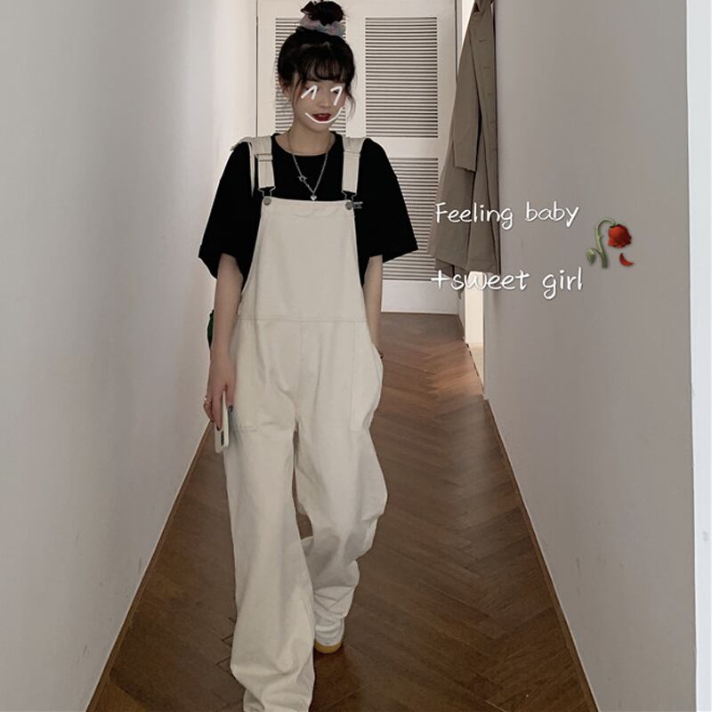 ソルトシリーズオフホワイトジャンプスーツ、デニム、スモール、オーバーオール、レディースサマー、ワイドレッグ、バージョン、ルーズネットレッド、ストレートレッグパンツ 夏物 7460077375850591 | framboise21
