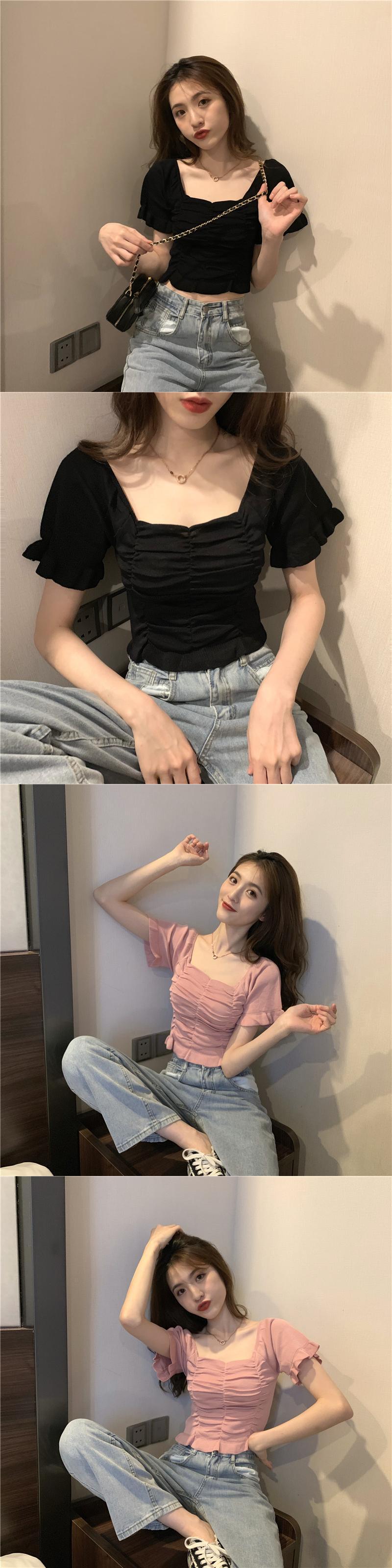 2022年夏のやさしい風フレンチパフスリーブショートスクエアカラートップスと陰謀のセンスデザインニッチライト成熟したシャツ女性 サマー 夏物 スクウェア 7460016931636137 | framboise21