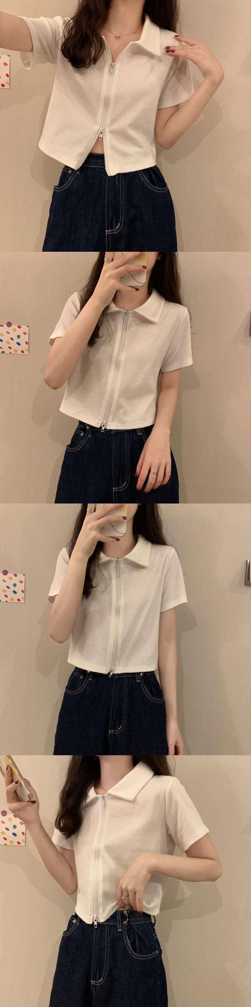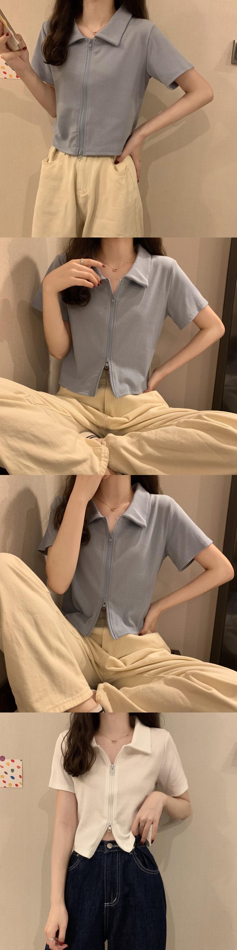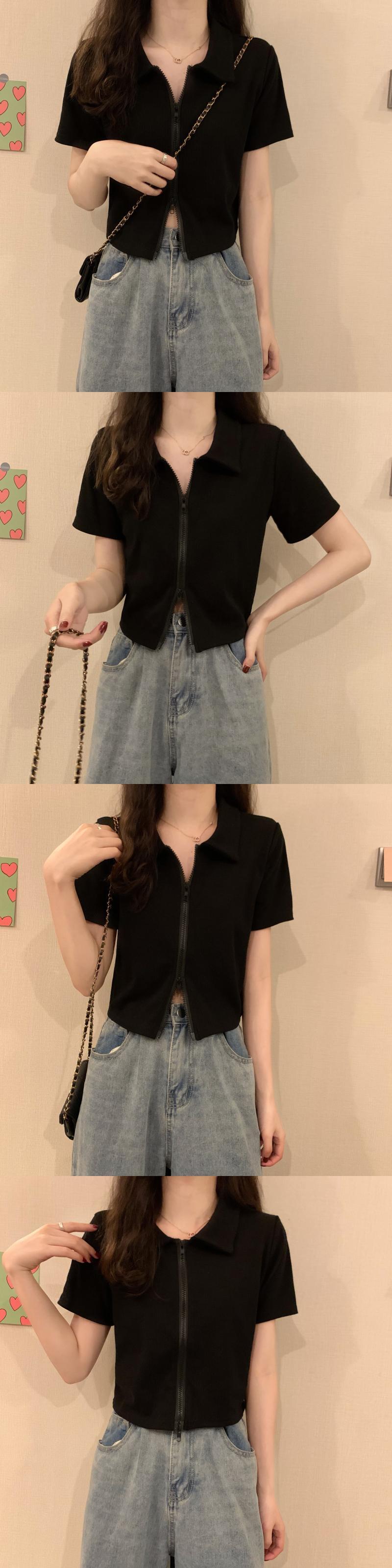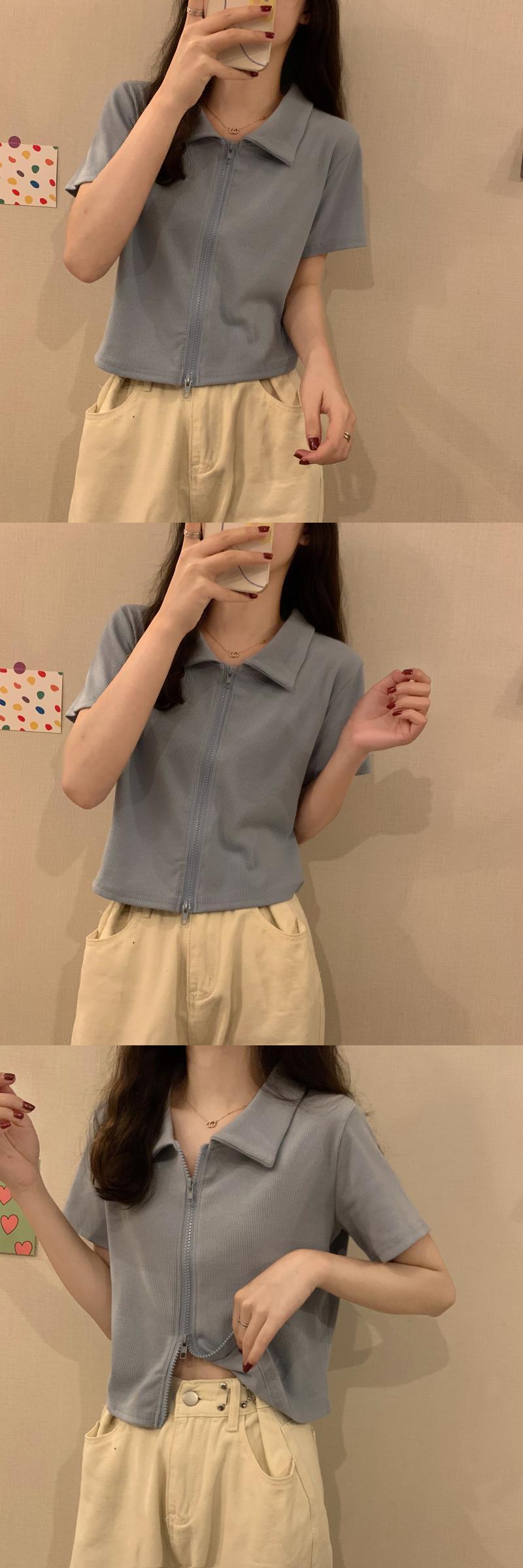 ショートトップダブルジッパーアイスシルクニットカーディガンハイウエストシンバージョンルーズポロカラー半袖Tシャツレディースサマー ハイウェスト ハーフスリーブ 夏物 746001287846963 | framboise21