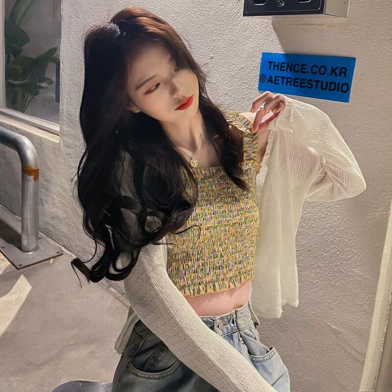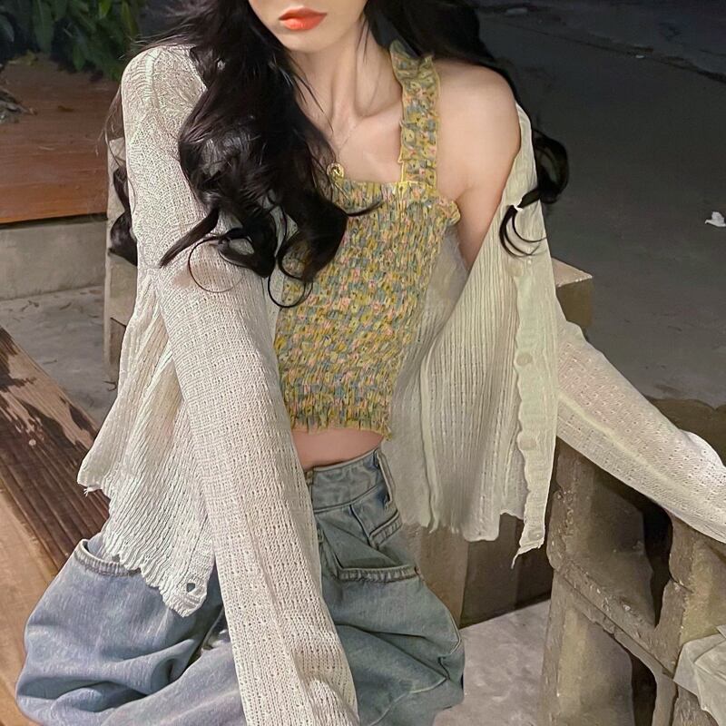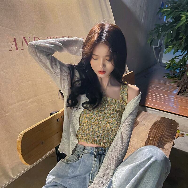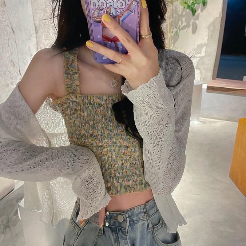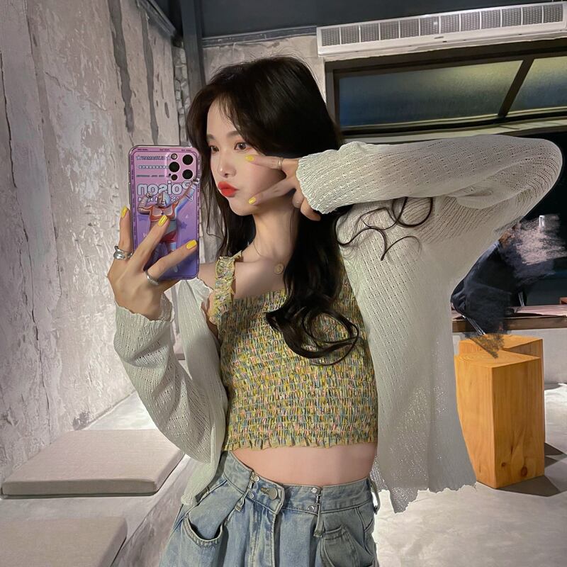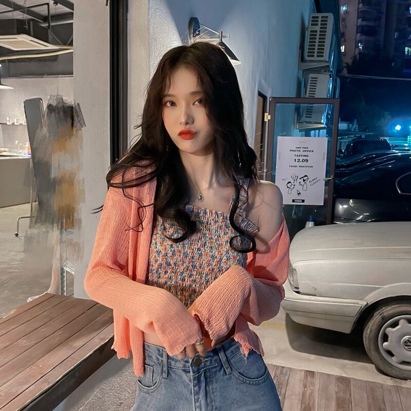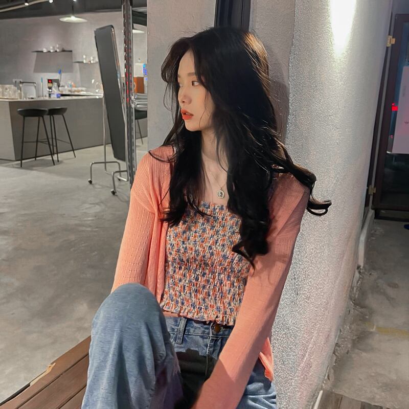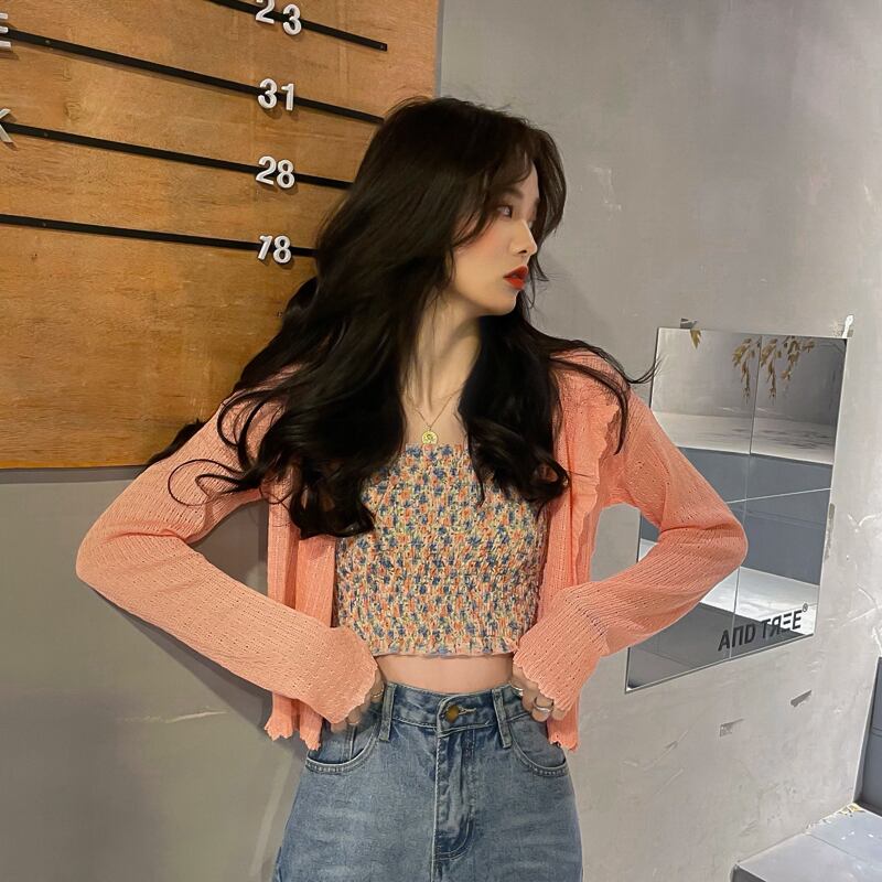 色:オレンジピンクカーディガン,白いカーディガン,ピンクの花柄のベスト,黄色の花柄のベスト