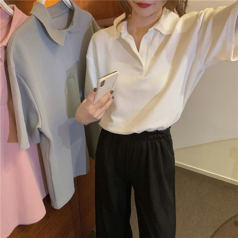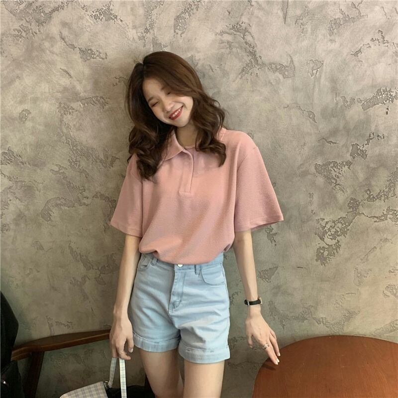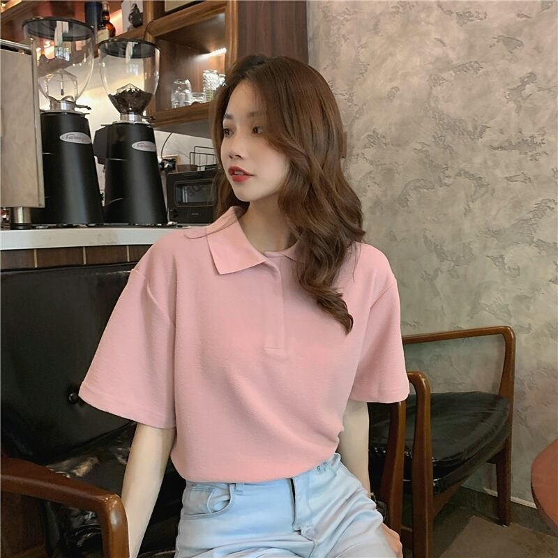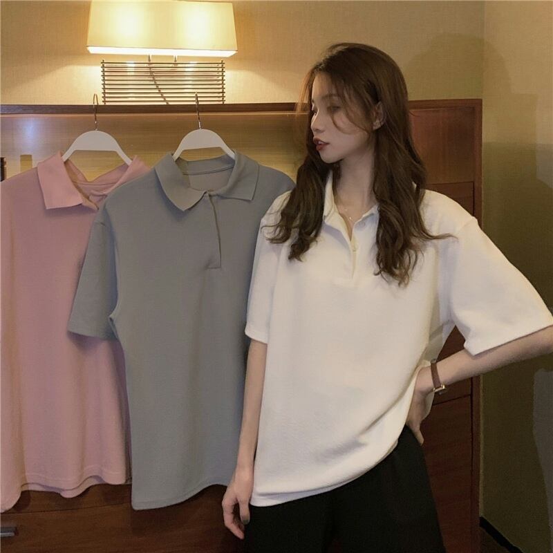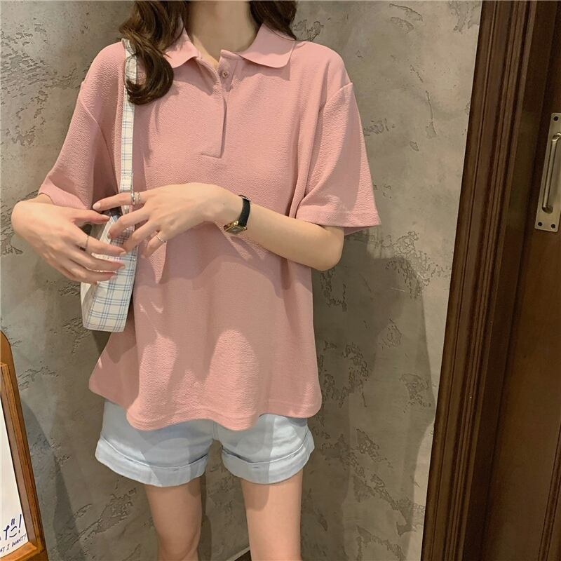 POLOシャツ半袖Tシャツレディース春バージョンインファッショナブルなルーズオールマッチラペル年齢を減らすコットンハーフスリーブトップ スプリング 春物 7460014543710793 | framboise21