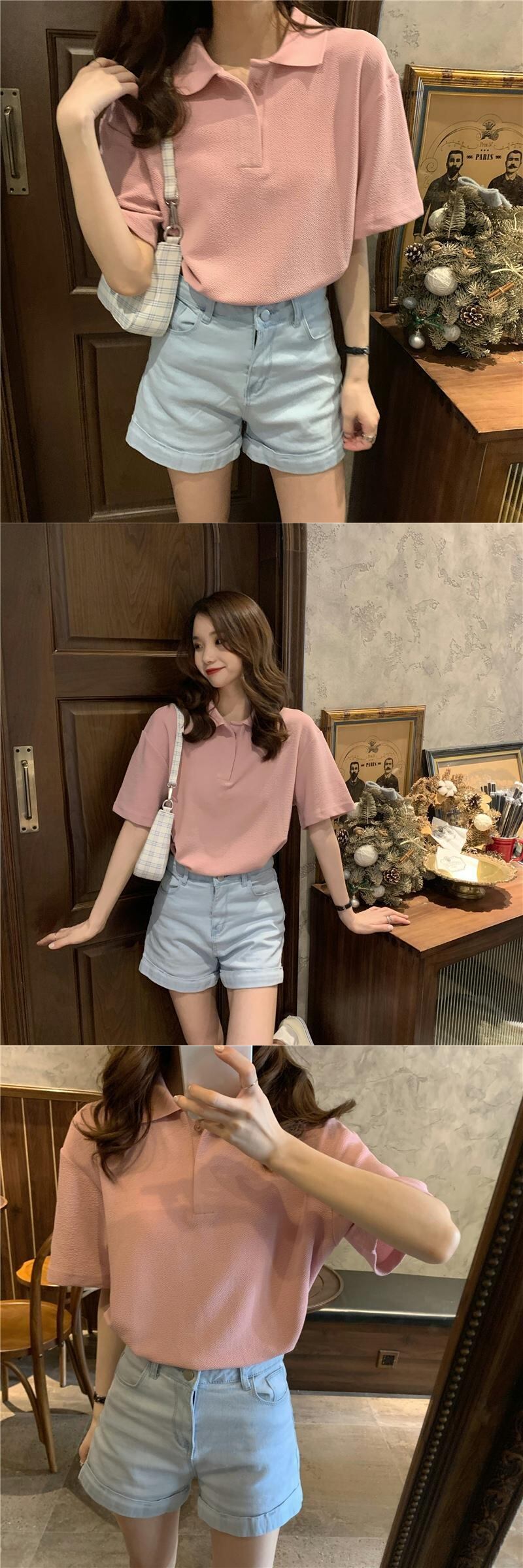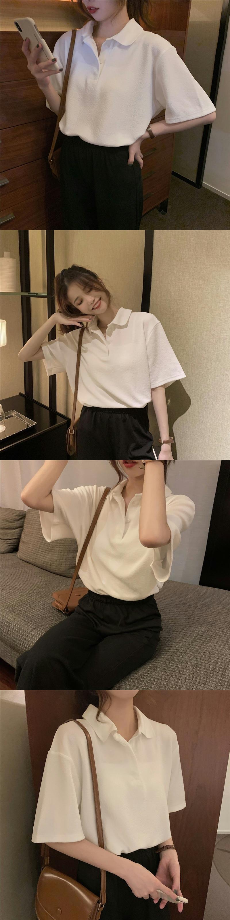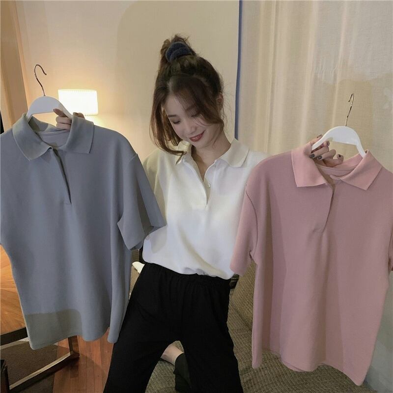POLOシャツ半袖Tシャツレディース春バージョンインファッショナブルなルーズオールマッチラペル年齢を減らすコットンハーフスリーブトップ スプリング 春物 7460014543710793 | framboise21