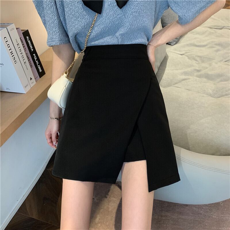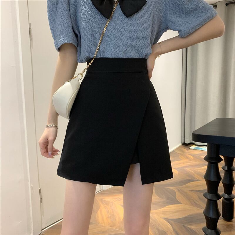 不規則なスプリットスーツスカート女性の夏のハイウエストaラインショートスカートパンツ小さなスリムな黒のヒップスカート ハイウェスト ブラック サマー 夏物 7460081698412526 | framboise21