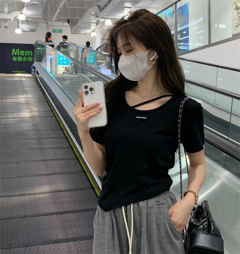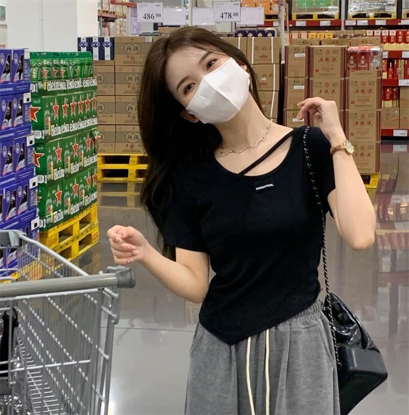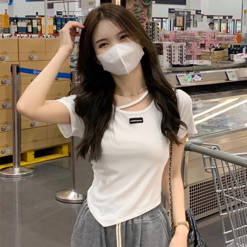 不規則な白い半袖Tシャツ女性の夏のデザインセンスニッチハイウエストショートトップインタイドを栽培したい純粋な欲求 ハイウェスト ホワイト サマー 夏物 ピュア 7460017790868824 | framboise21