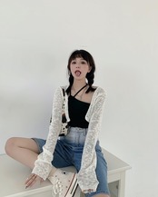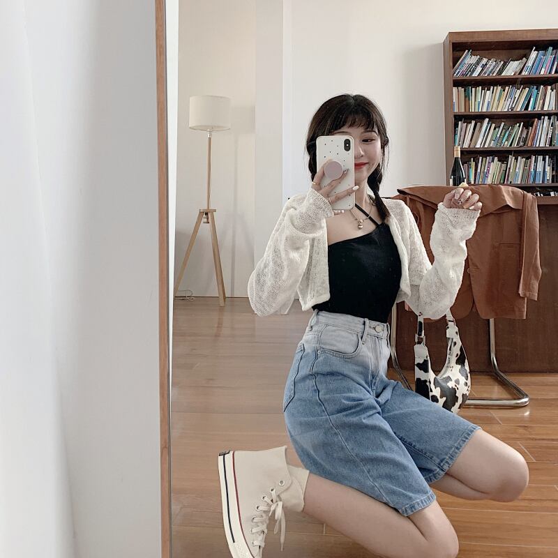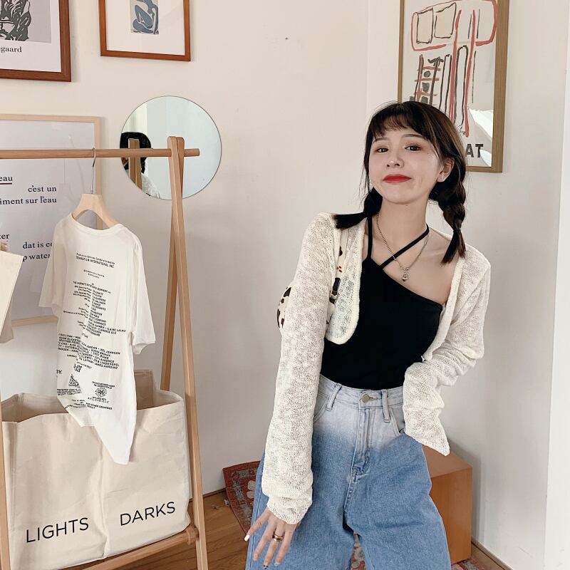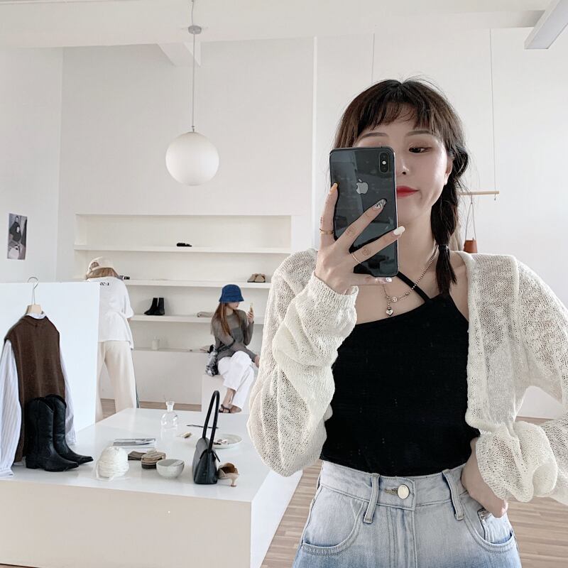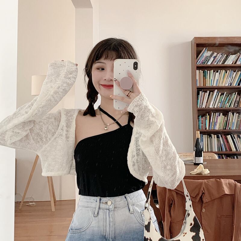 白い中空日焼け止めセーターニットカーディガンスモールコート女性の夏の薄いショートトップサスペンダースカートオーバーコート ホワイト サマー 夏物 746007673946798 | framboise21