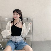 色:黒のホルターベスト,ニットショートコート