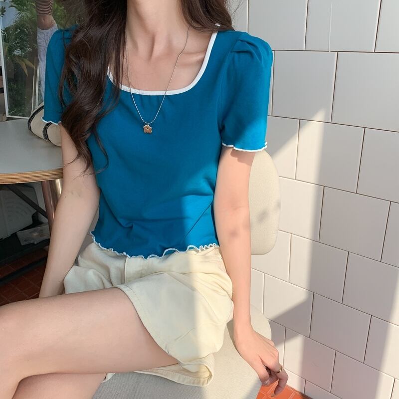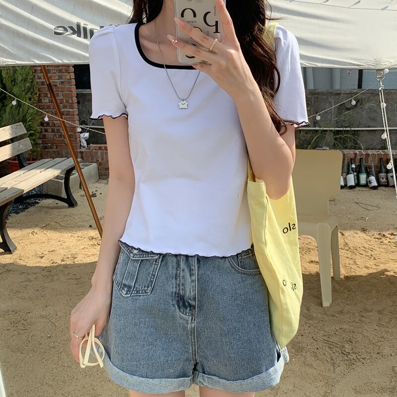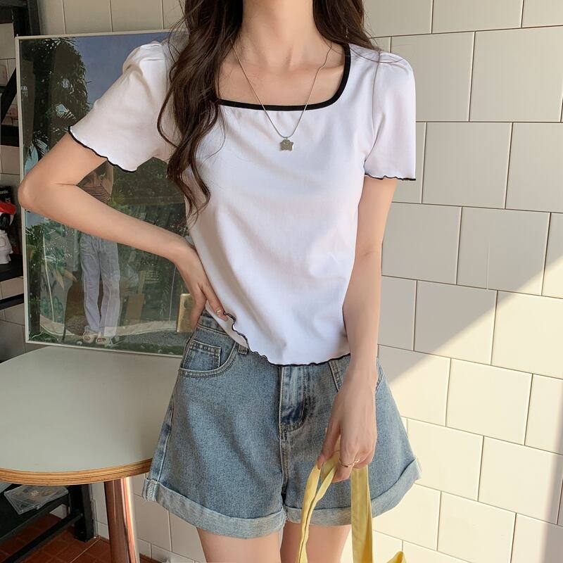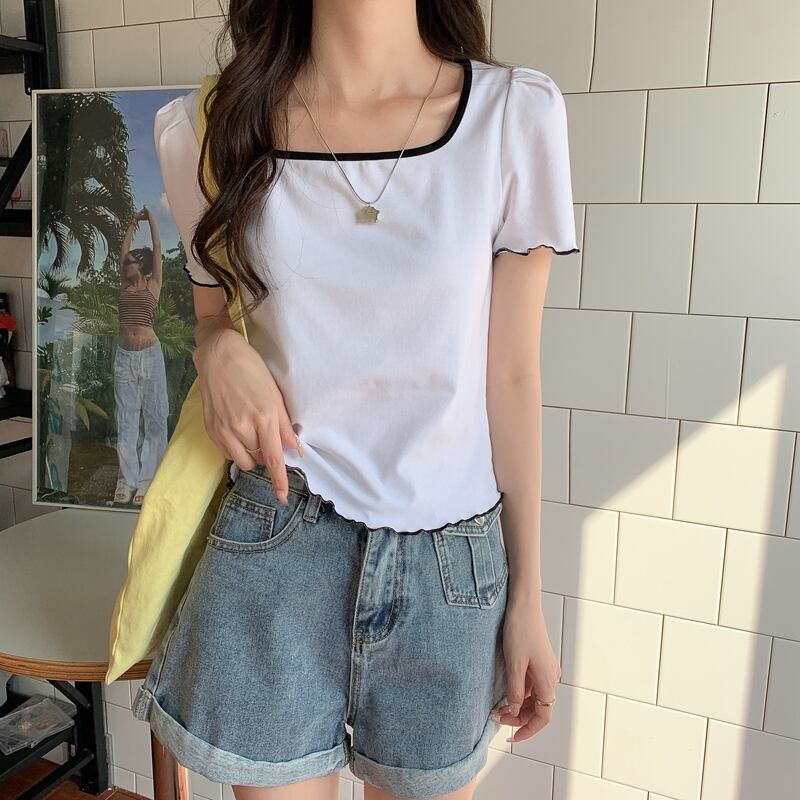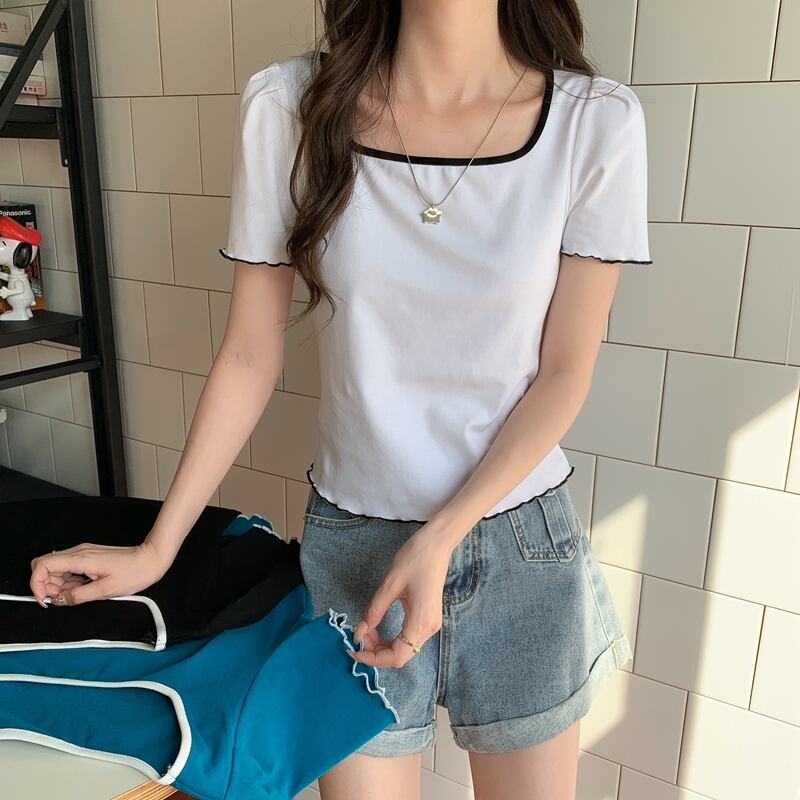 夏の新作流行りのデザインセンスニッチスクエアネック半袖Tシャツレディースファッションシックシックシックスウィートスパイシーショートトップ 大人ガーリー キュート カジュアル サマー 夏物 スクウェア 7460069322390372 | framboise21