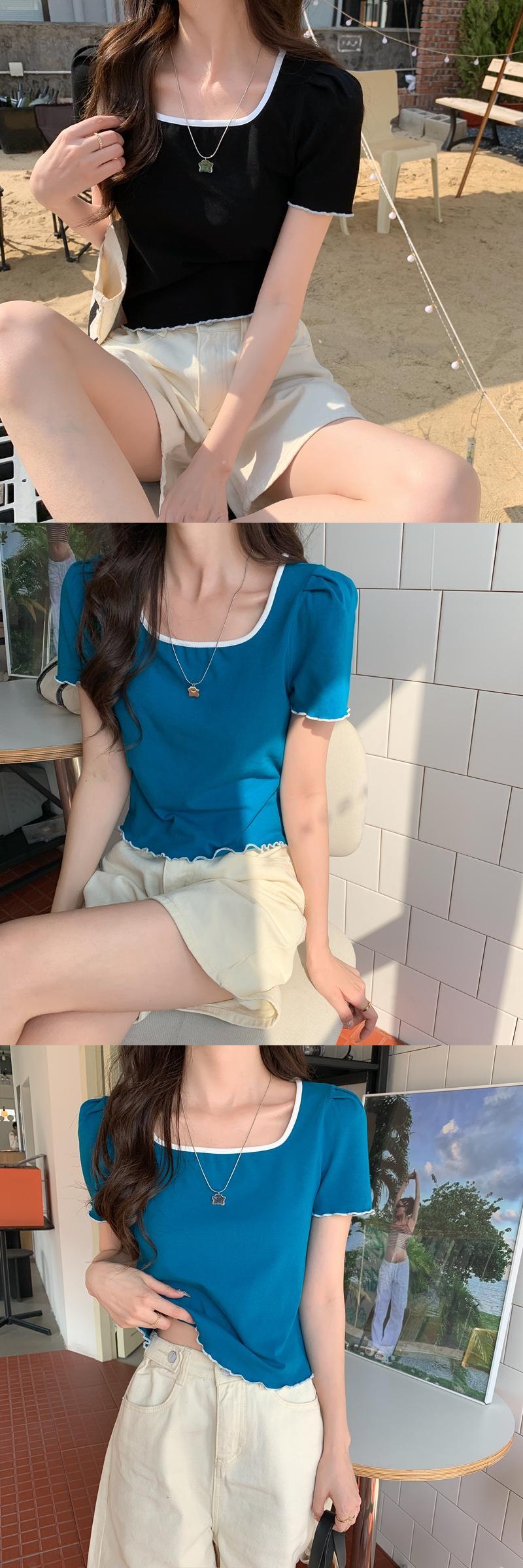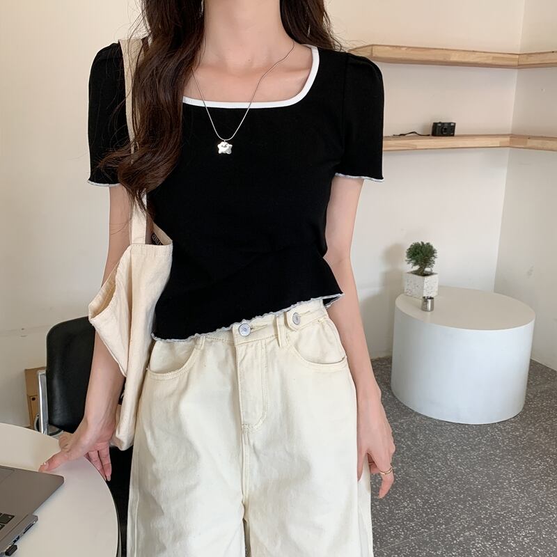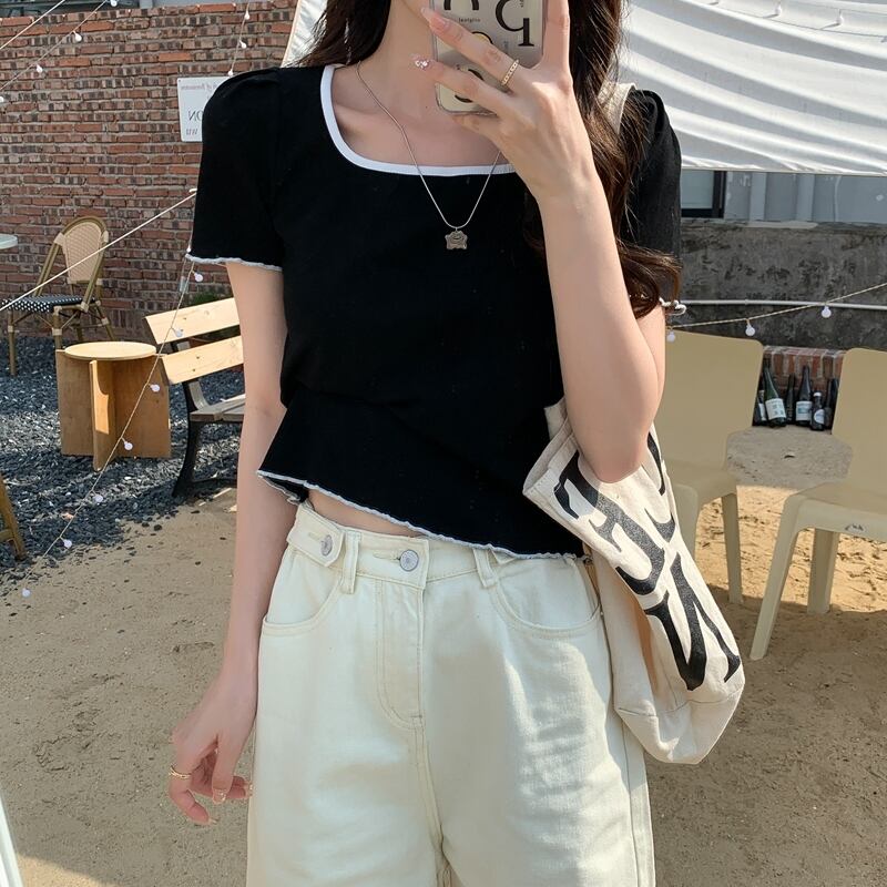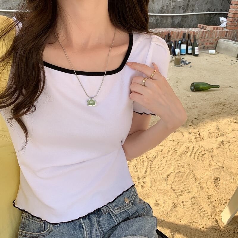 夏の新作流行りのデザインセンスニッチスクエアネック半袖Tシャツレディースファッションシックシックシックスウィートスパイシーショートトップ 大人ガーリー キュート カジュアル サマー 夏物 スクウェア 7460069322390372 | framboise21