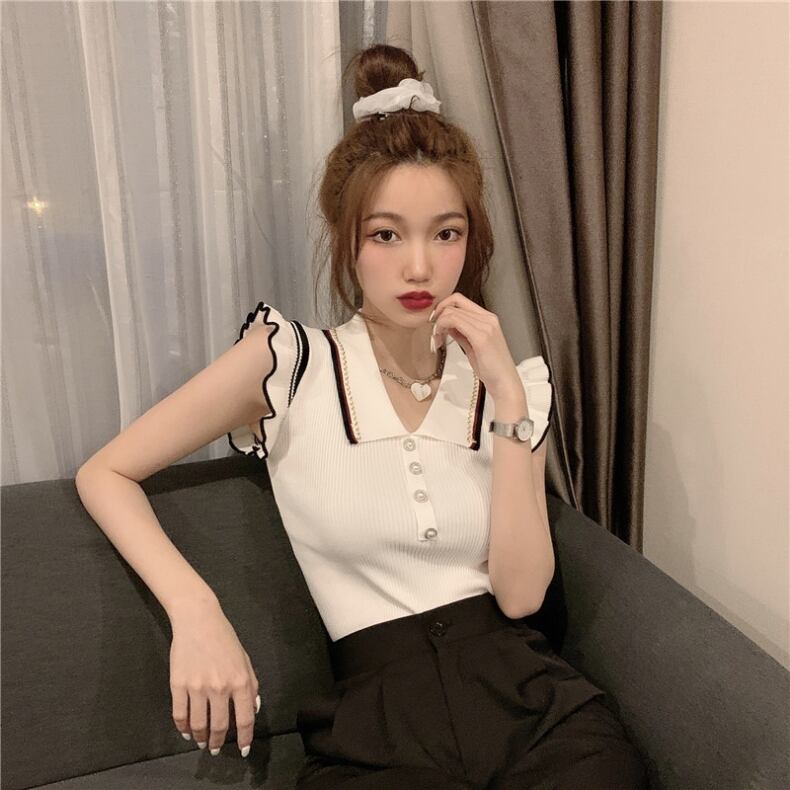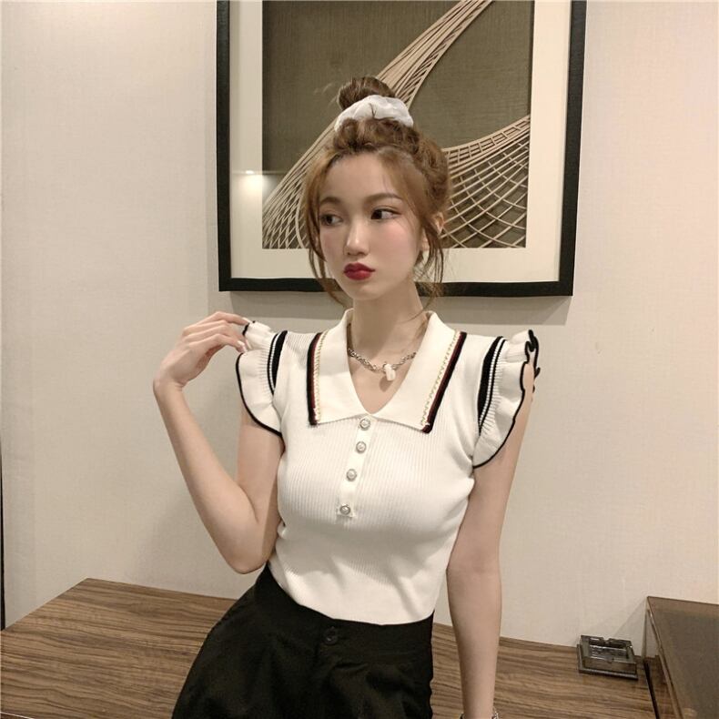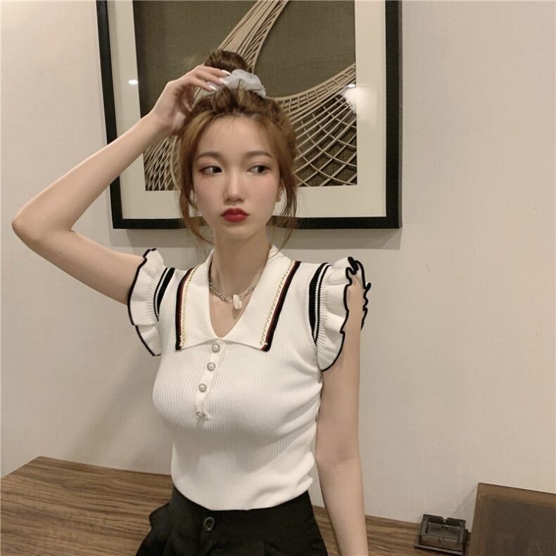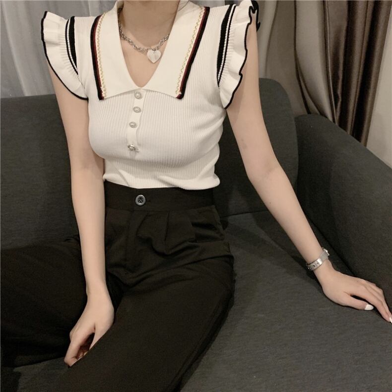 2022年の新しい女性の夏のノースリーブの薄いアイスシルクのセータートップスショートボトミングシャツVネックデザインのニッチ サマー 夏物 7460079028092098 | framboise21
