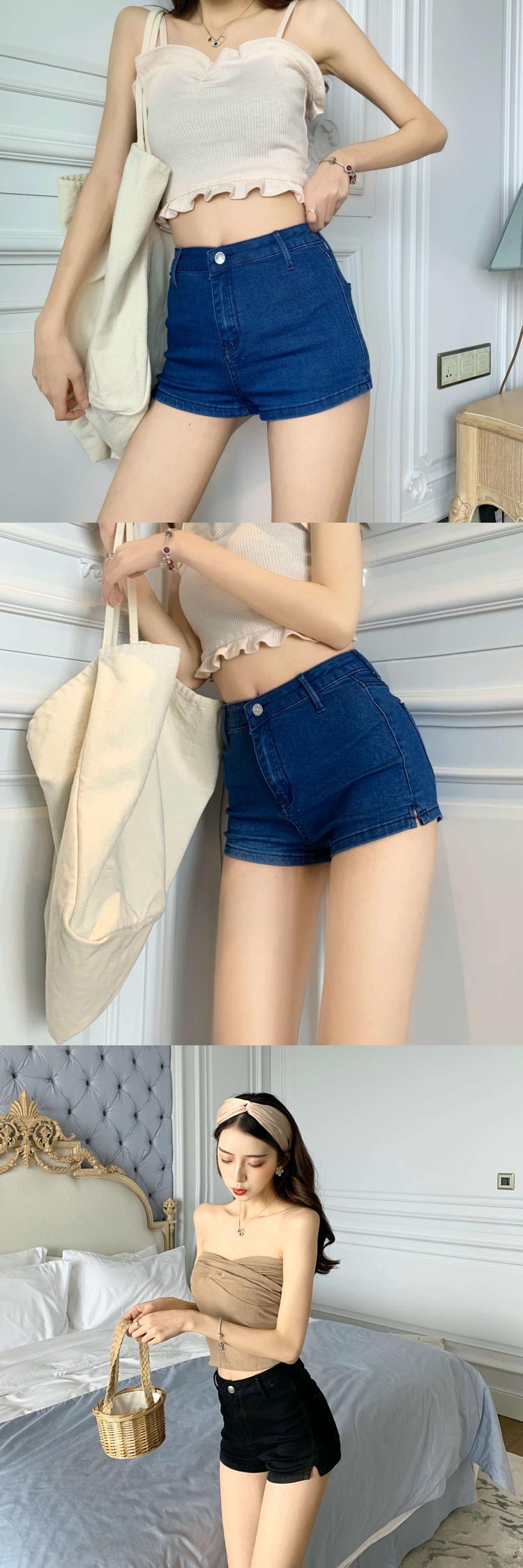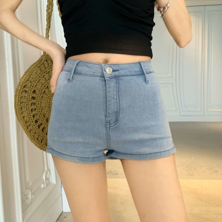 デニムショーツレディース2022新しいタイトでセクシーな伸縮性のあるハイウエストの薄いパンツボトミングブラックスーパーショーツ ハイウェスト エラスティック ブルマー 7460047503411548 | framboise21