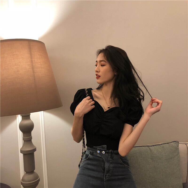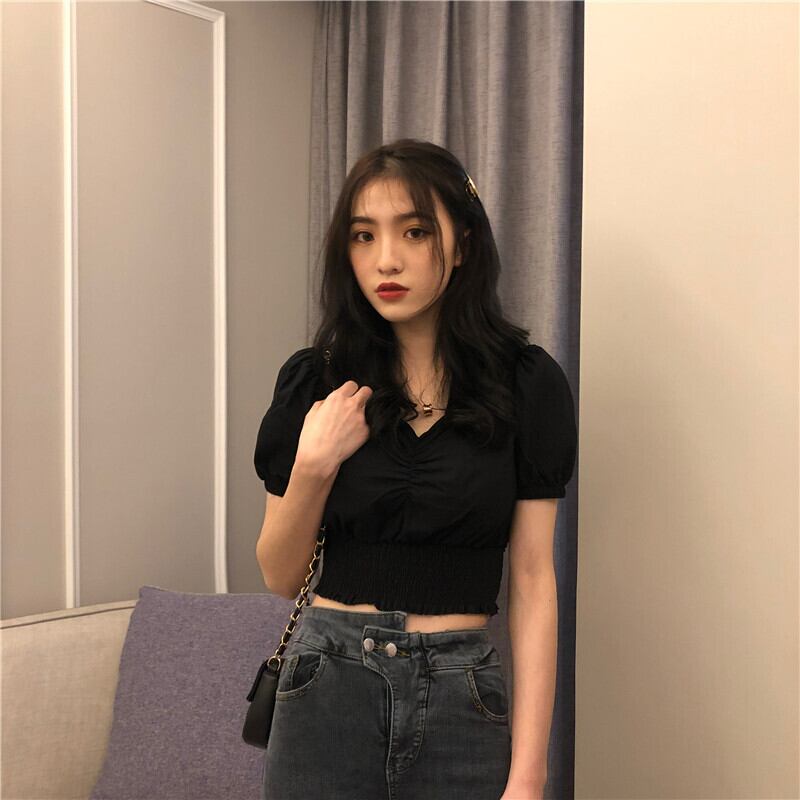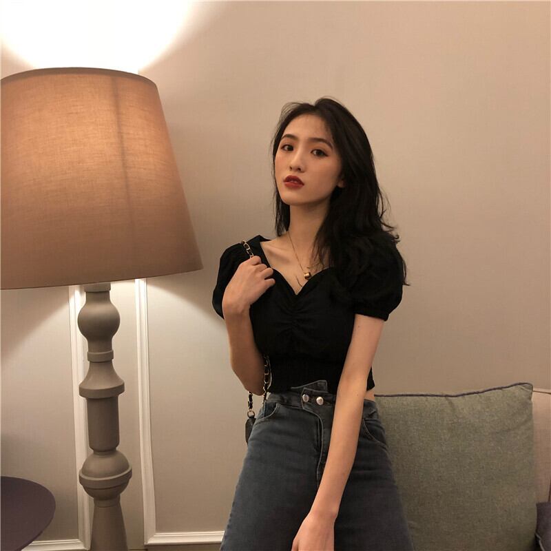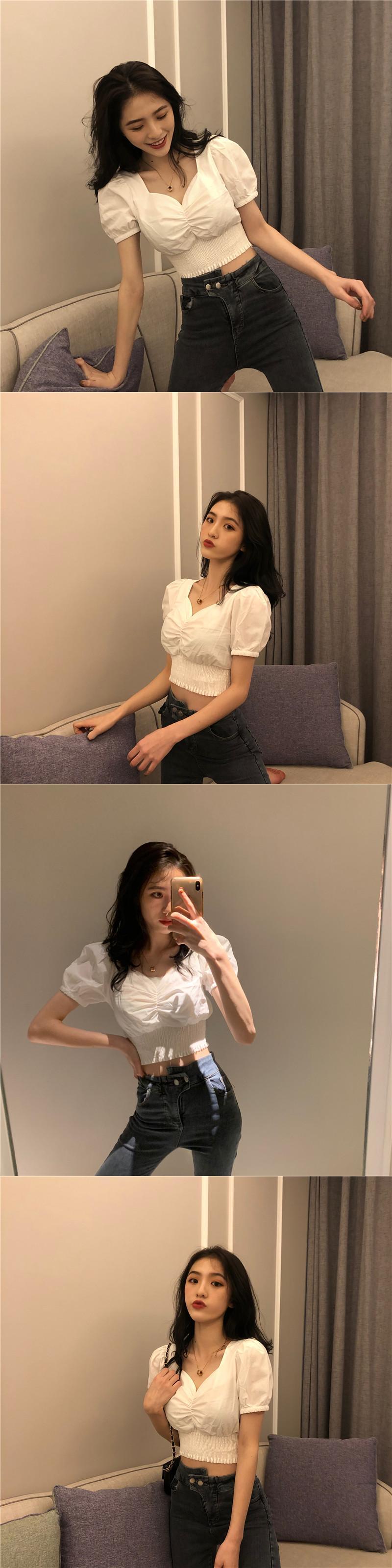 ホットヒョンヤスタイルのセクシーな鎖骨ショートトップとハイウエストパンツの陰謀半袖Tシャツ女性のデザインは薄くてトレンディです ハイウェスト 7460087018279947 | framboise21