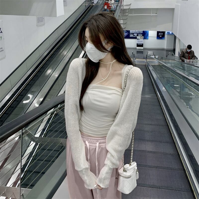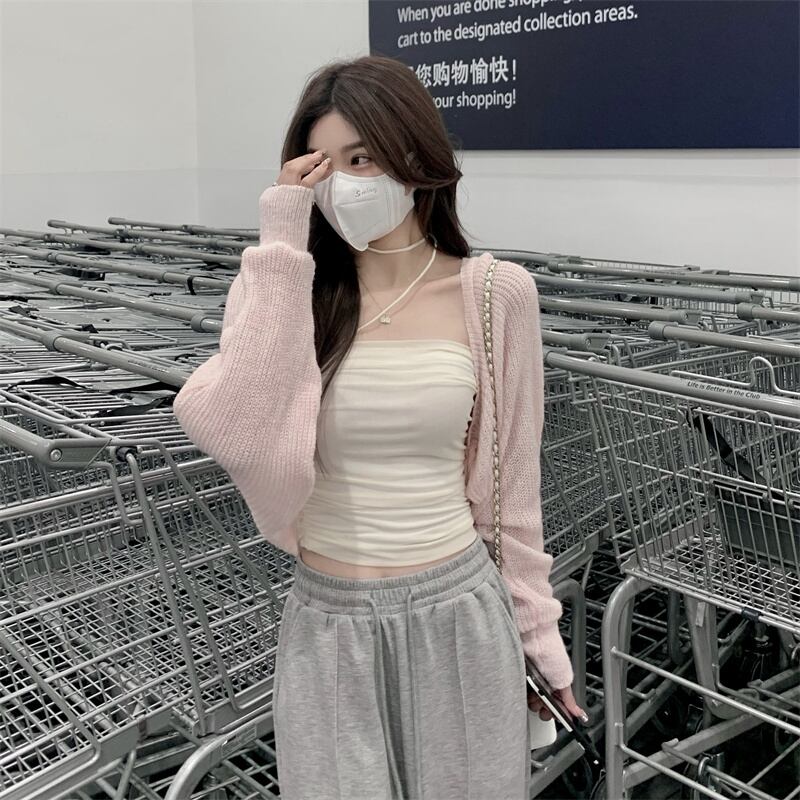 ニットサンスクリーンカーディガン女性の夏のテクスチャアイスシルクブラウス小さなショール純粋な欲望のサスペンダーショートベストコート サマー 夏物 ピュア 7460022169066580 | framboise21