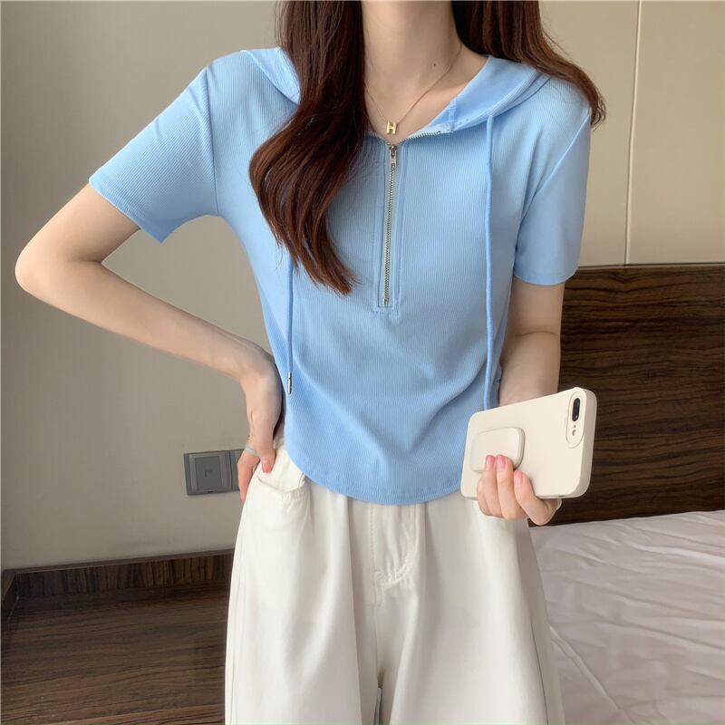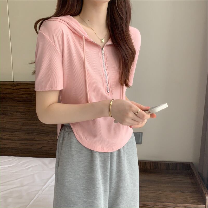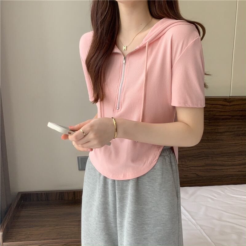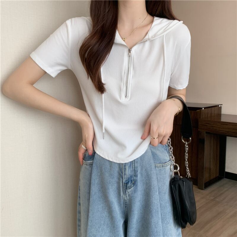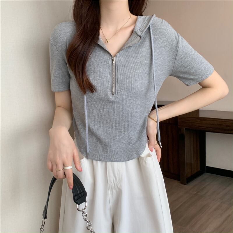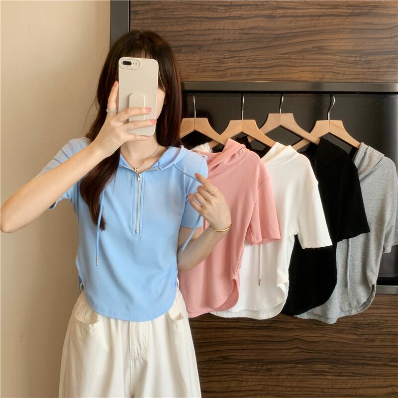 2022年初春新作レディースバージョンのスリムイレギュラーショートセクションスリミングフード付き半袖Tシャツトップトレンド スプリング 春物 7460093069979904 | framboise21