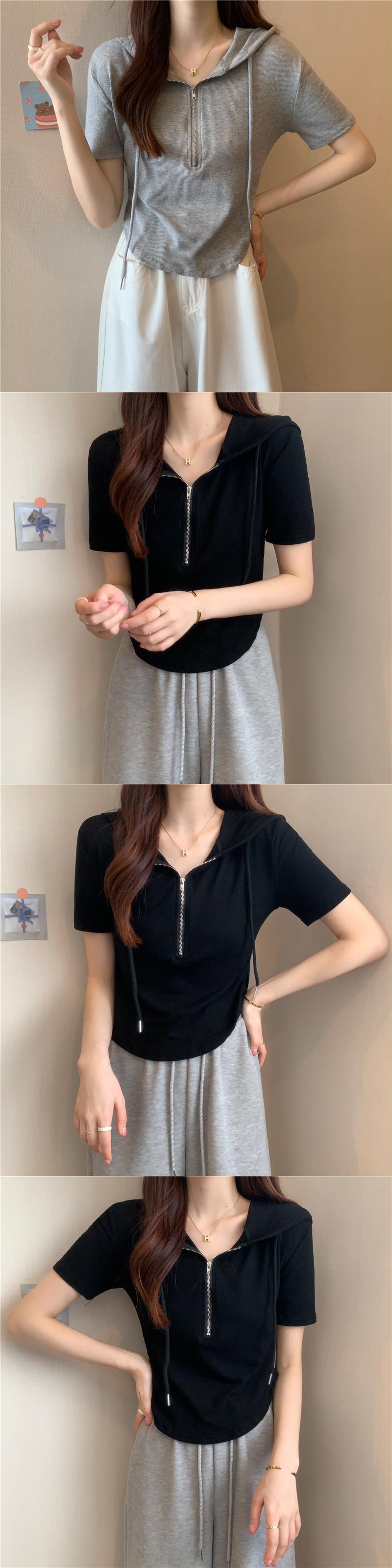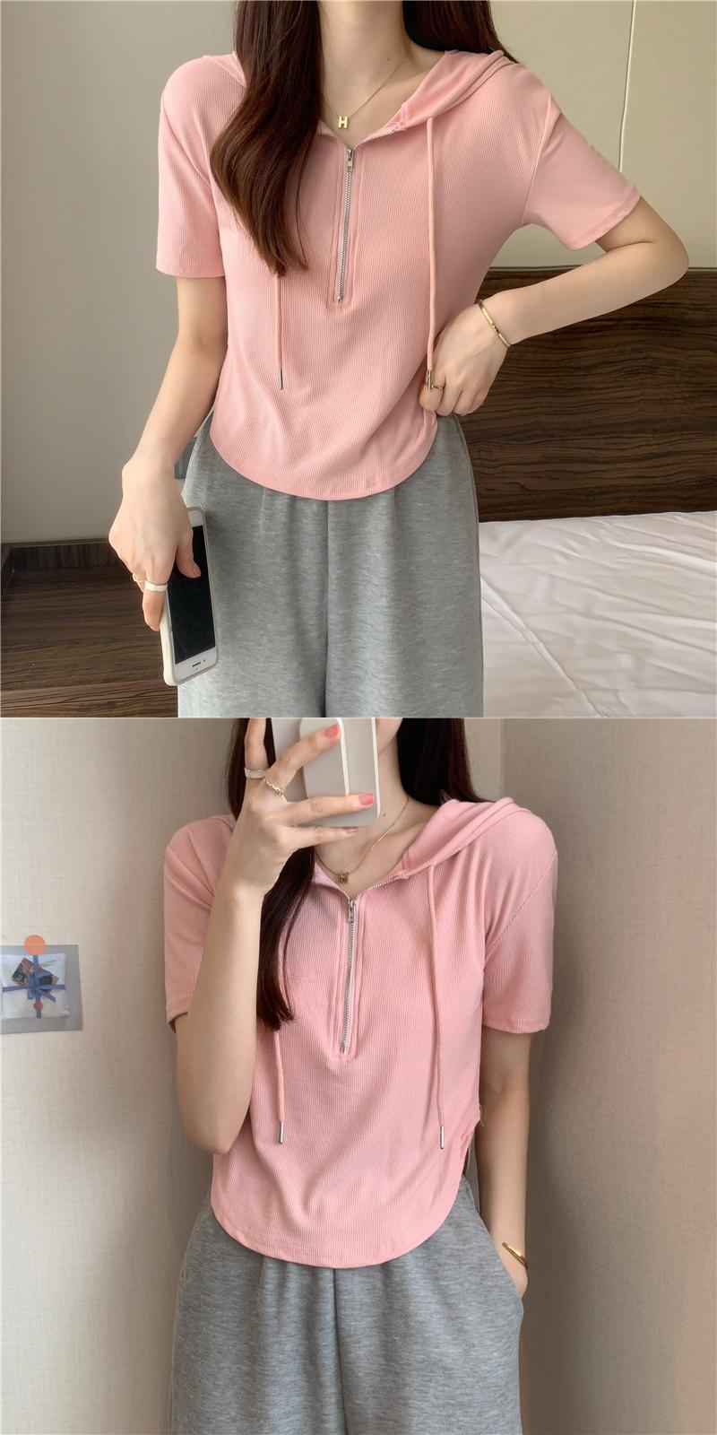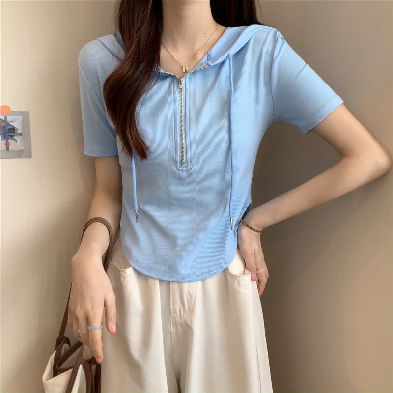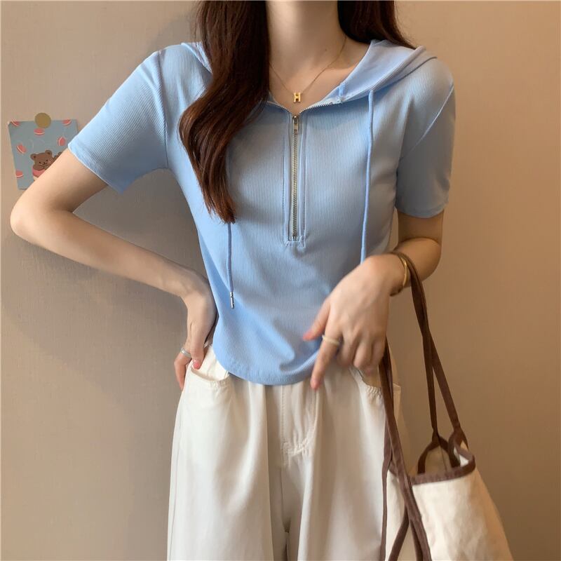 2022年初春新作レディースバージョンのスリムイレギュラーショートセクションスリミングフード付き半袖Tシャツトップトレンド スプリング 春物 7460093069979904 | framboise21