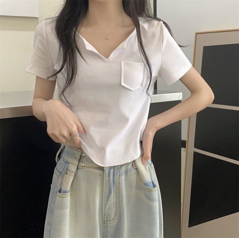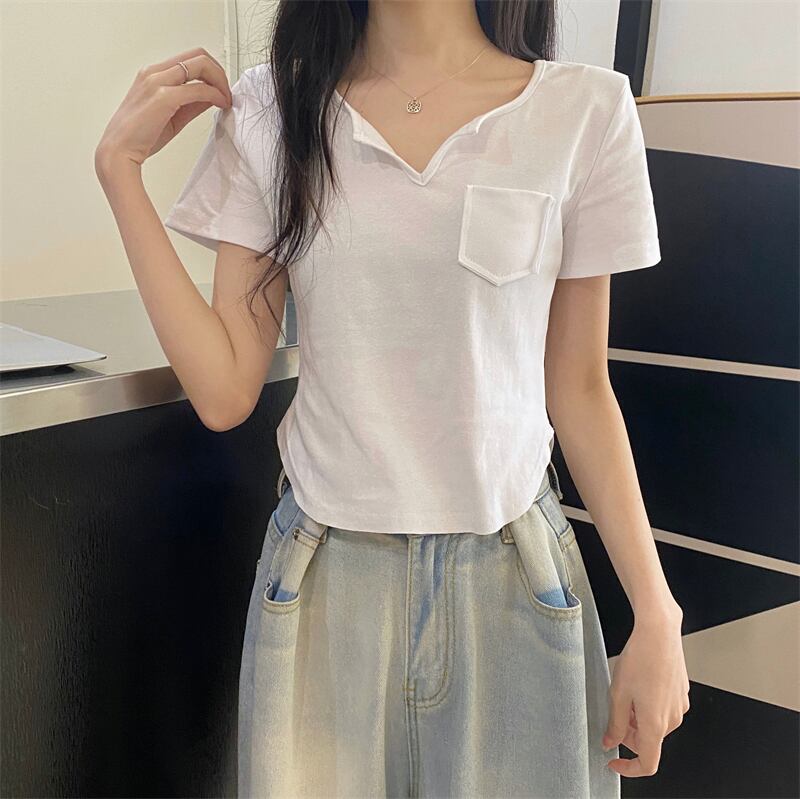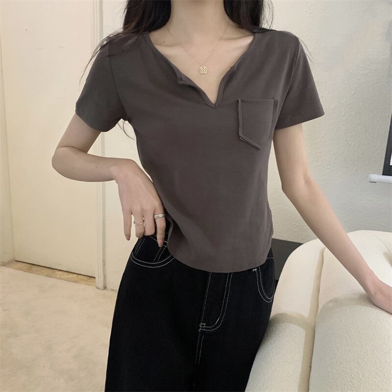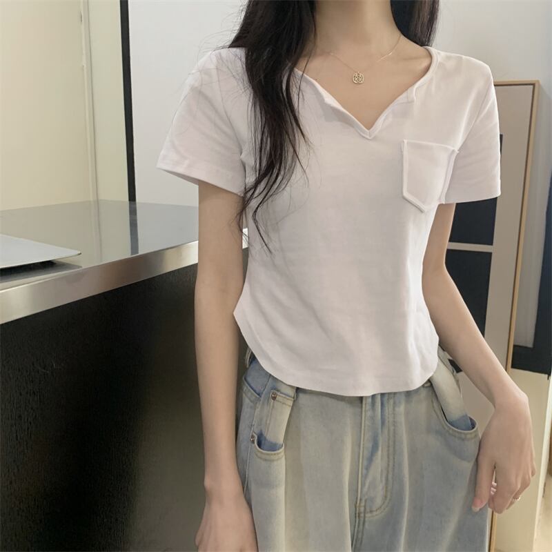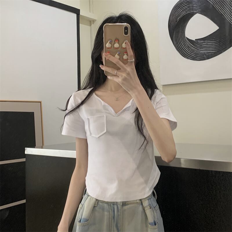 2022年夏のイレギュラーデザインセンスニッチVネック半袖Tシャツレディースイントレンディシックスウィートスパイシーショートトップ 大人ガーリー キュート カジュアル サマー 夏物 7460093817335277 | framboise21