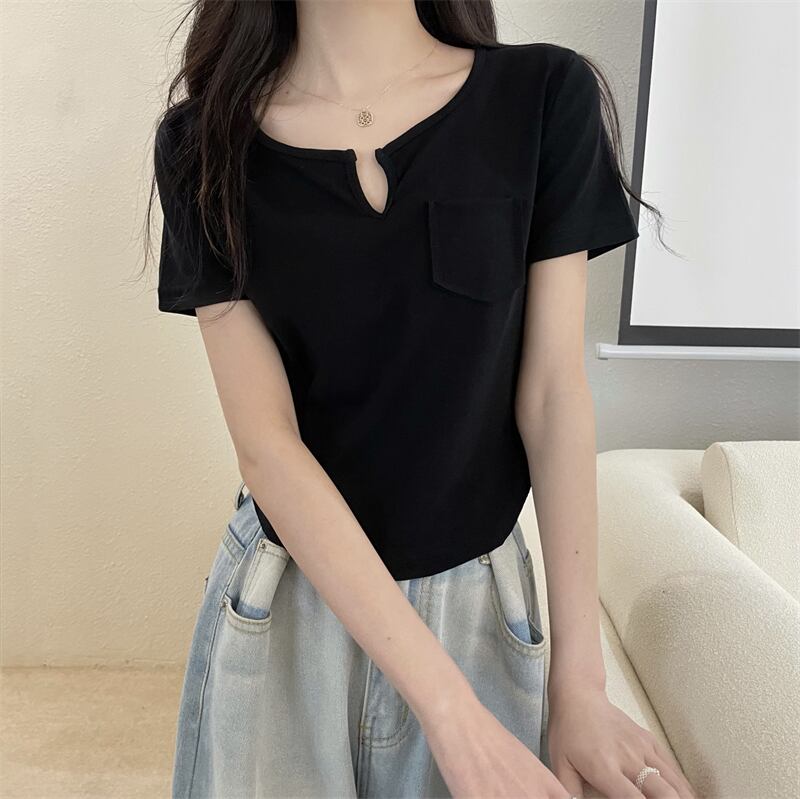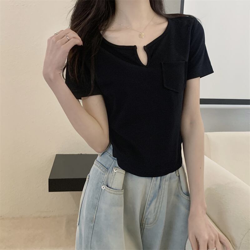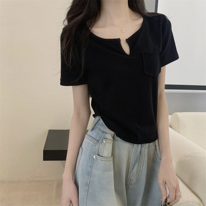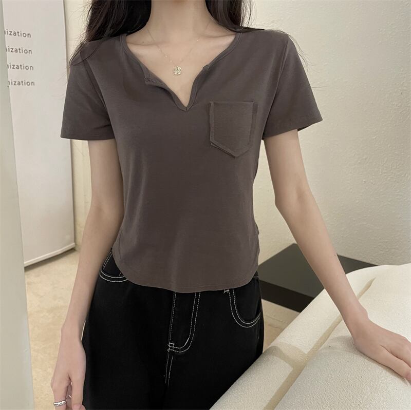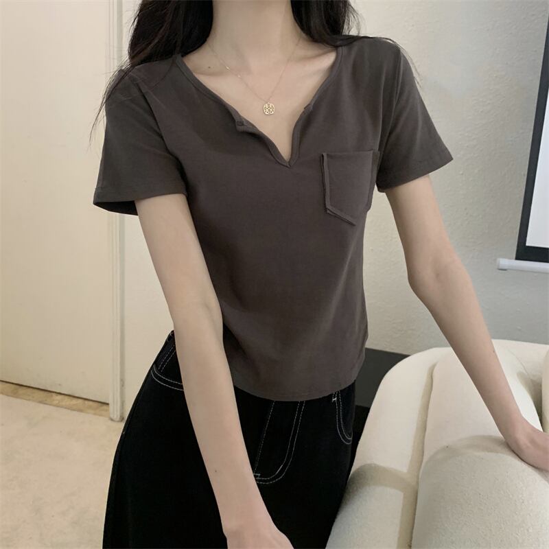 2022年夏のイレギュラーデザインセンスニッチVネック半袖Tシャツレディースイントレンディシックスウィートスパイシーショートトップ 大人ガーリー キュート カジュアル サマー 夏物 7460093817335277 | framboise21