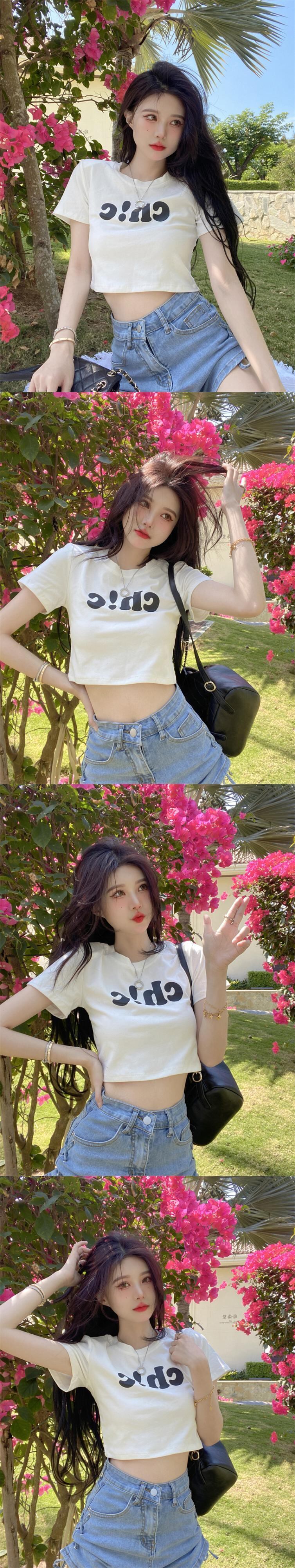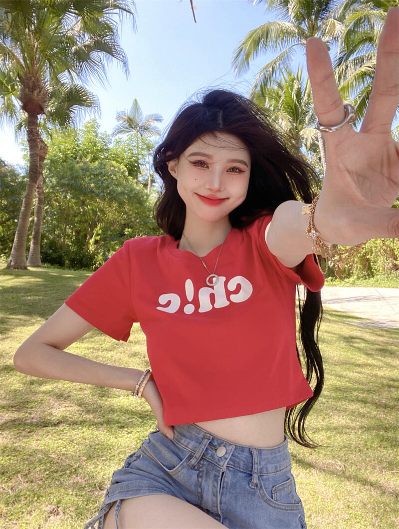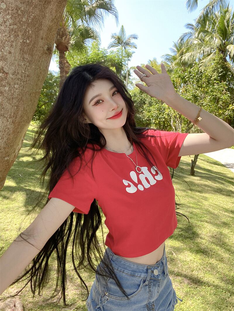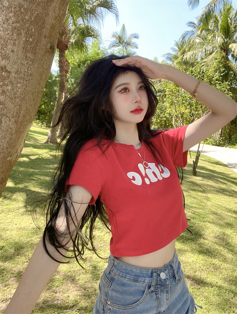 夏の白いショートTシャツの女性の半袖タイトフィットデザインは、小さくて薄い、ハイウエスト、へそ、アメリカンスタイルのフロントショルダートップです ホワイト サマー 夏物 7460052649821692 | framboise21