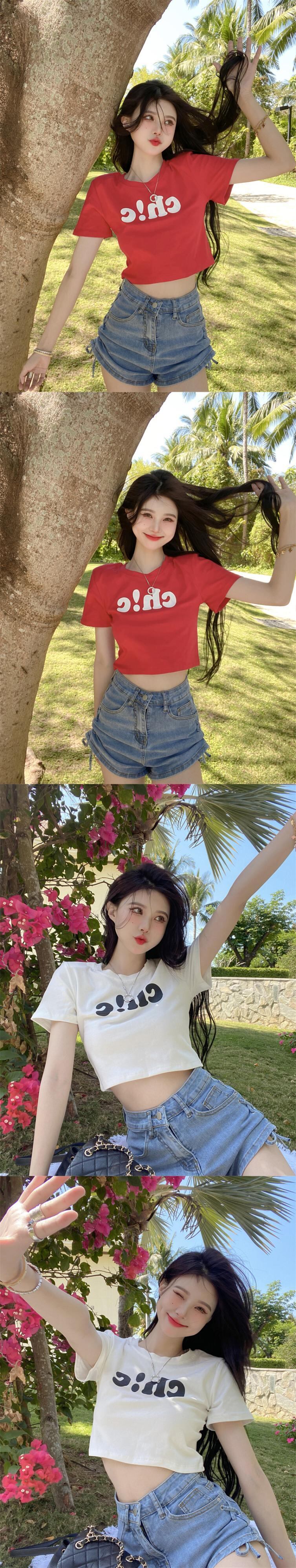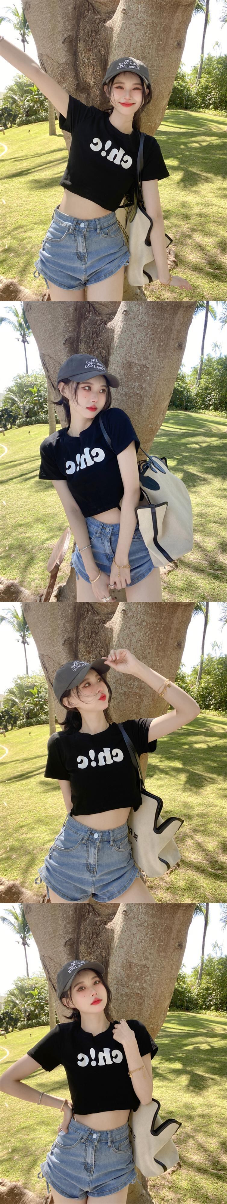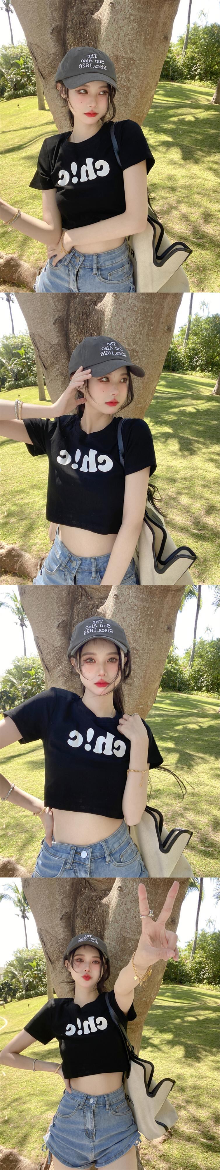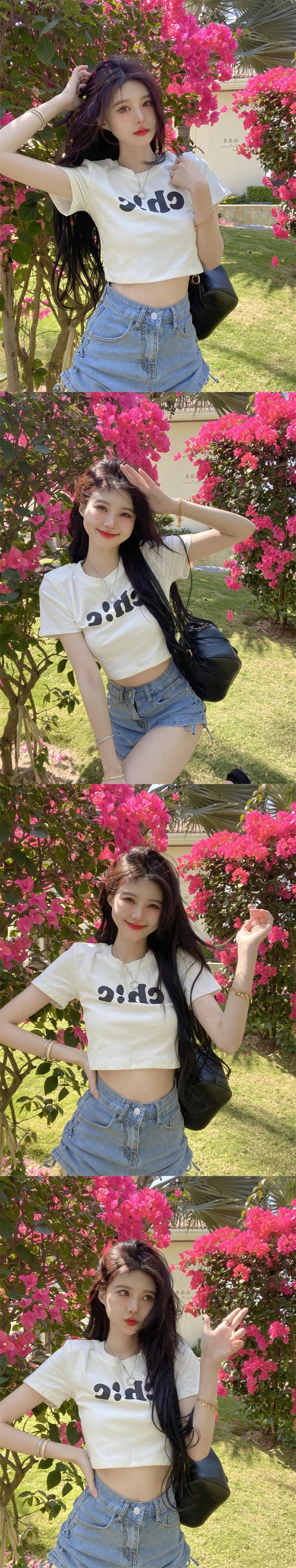 夏の白いショートTシャツの女性の半袖タイトフィットデザインは、小さくて薄い、ハイウエスト、へそ、アメリカンスタイルのフロントショルダートップです ホワイト サマー 夏物 7460052649821692 | framboise21