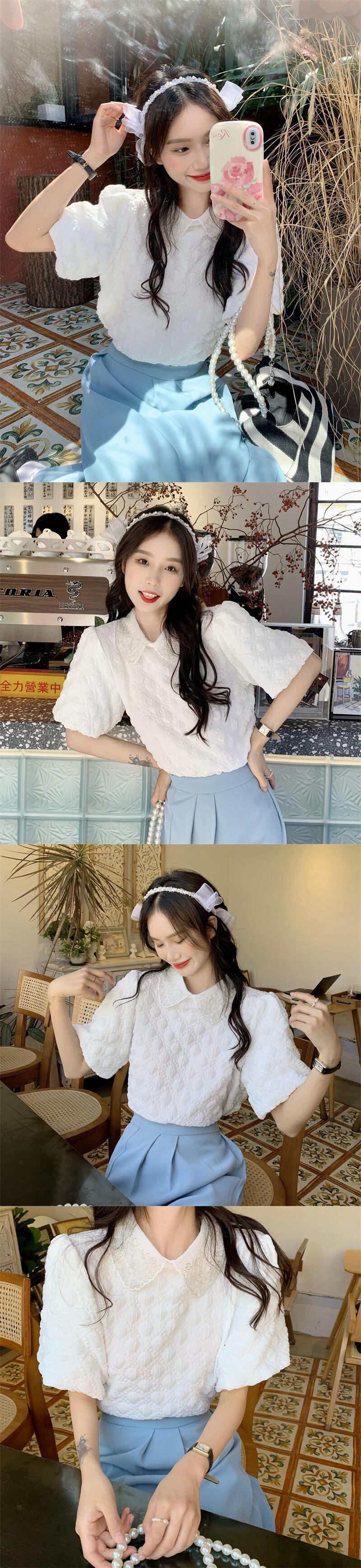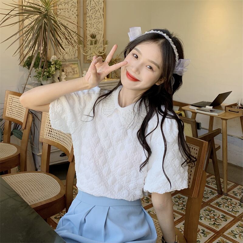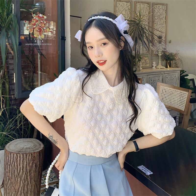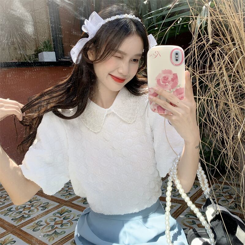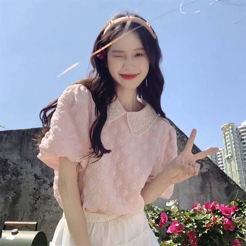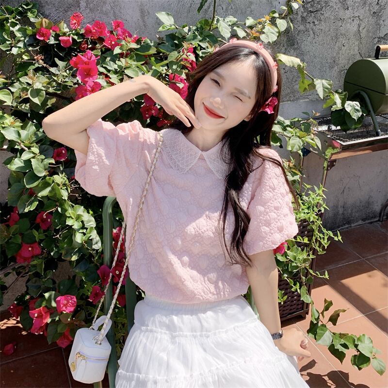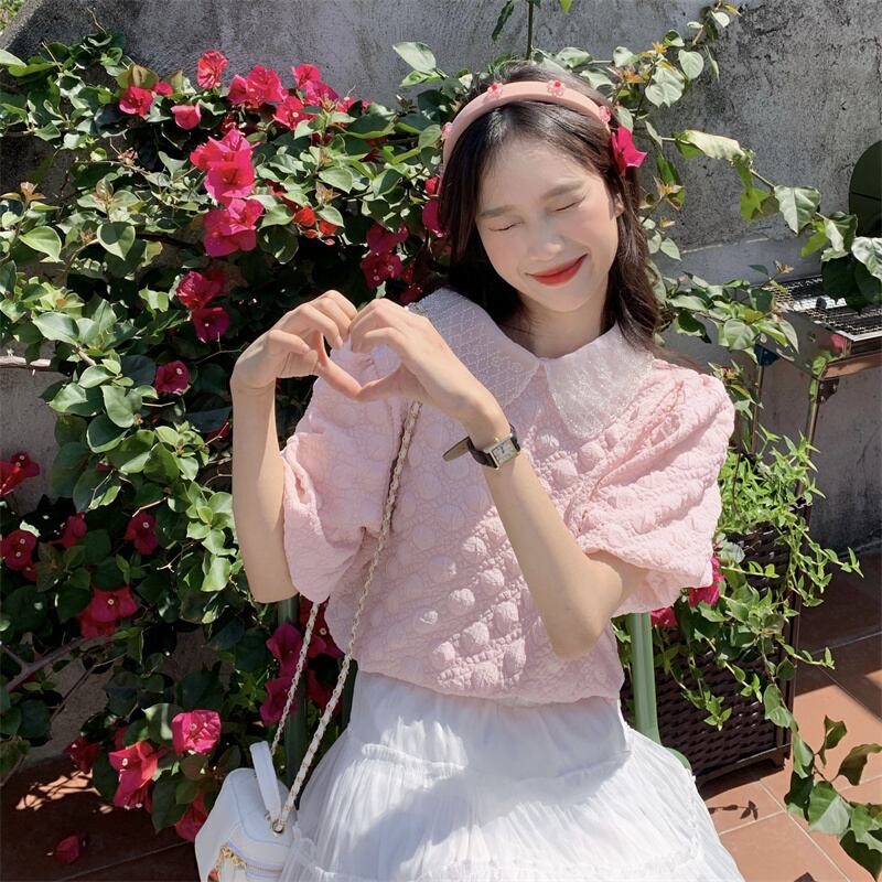ピンクスウィートドールカラーバブル半袖シャツレディースサマースモールフレンチシックトップスモール ショート ハーフスリーブ 大人ガーリー キュート カジュアル 夏物 7460065466992165 | framboise21