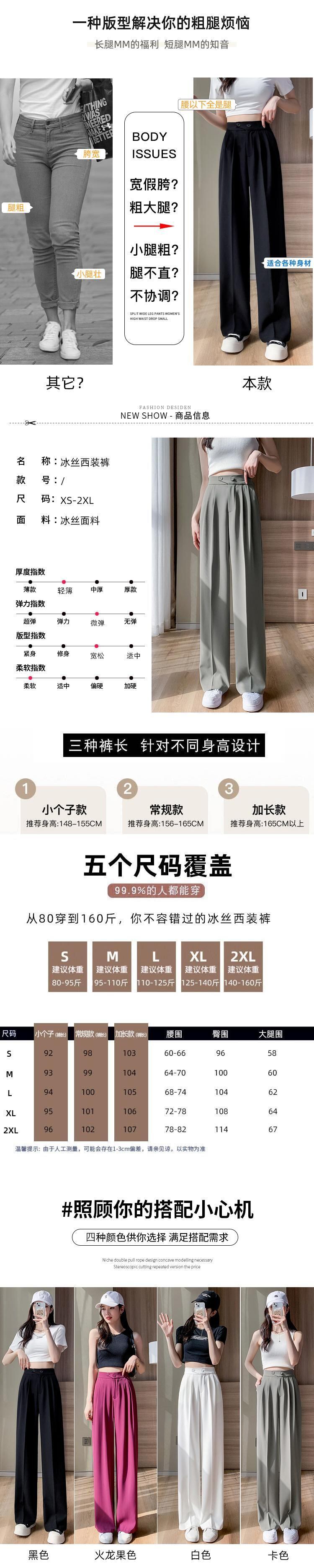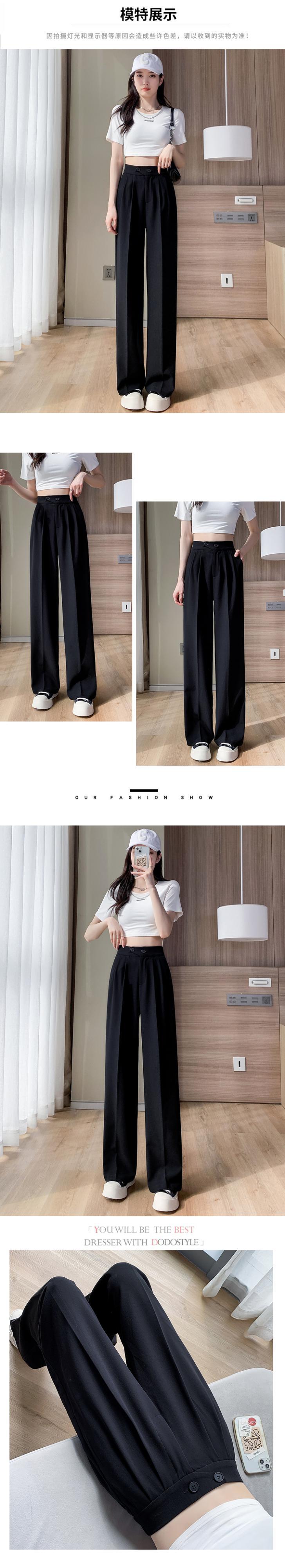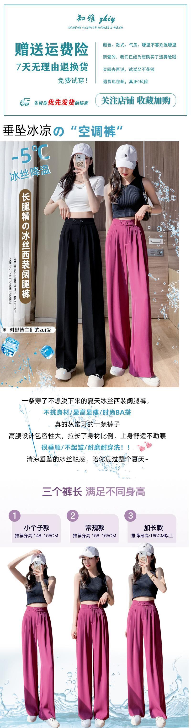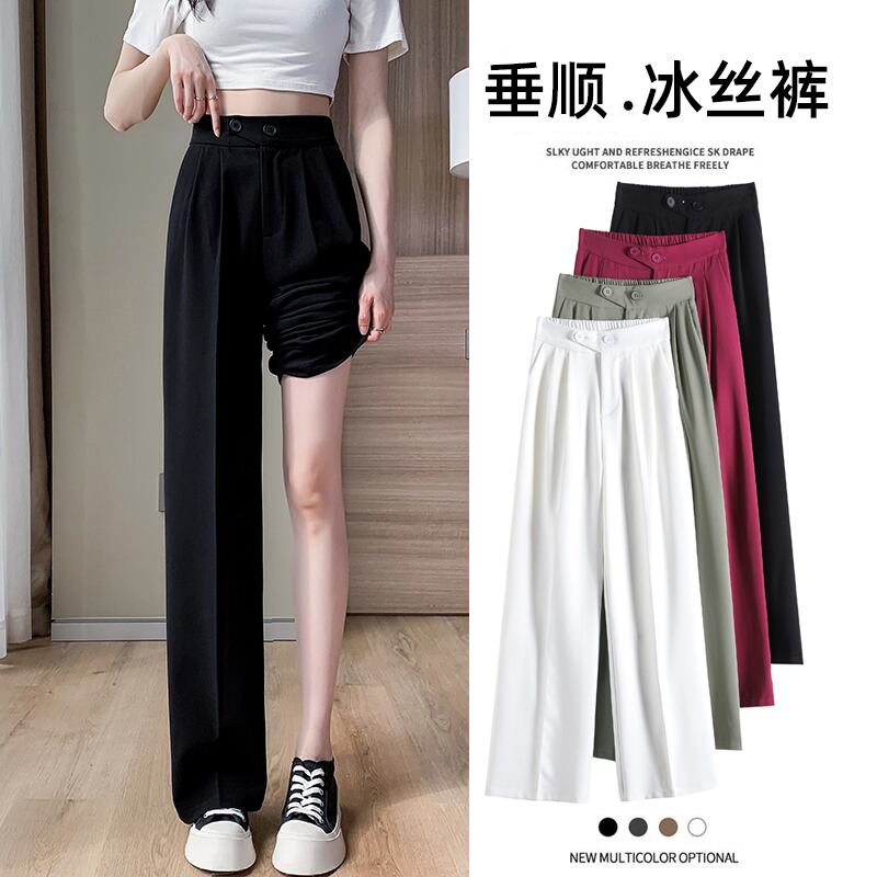 ブラックスーツパンツレディースサマーシンアイスシルクワイドレッグパンツデザインストレートハイウエストドレープカジュアルモッピングパンツ ハイウェスト 夏物 7460011763612118 | framboise21