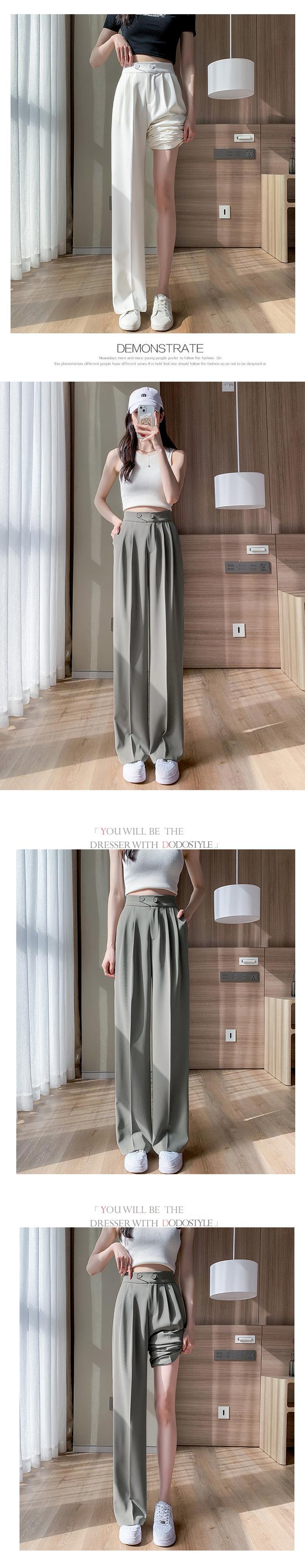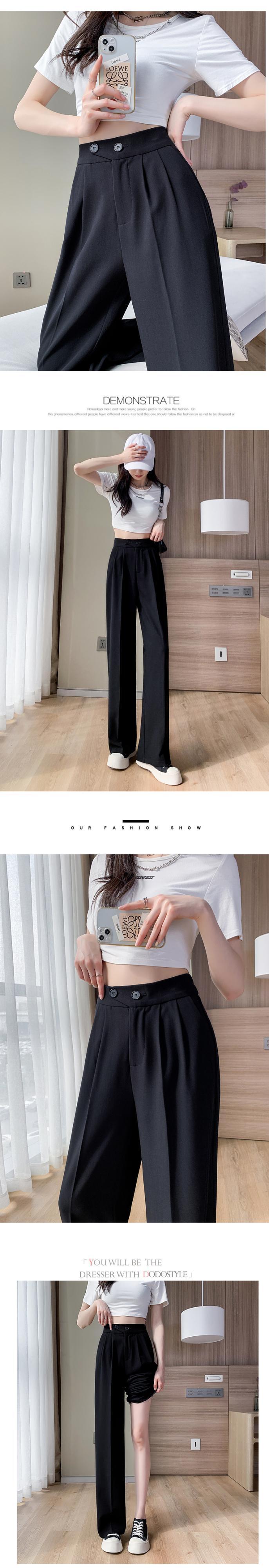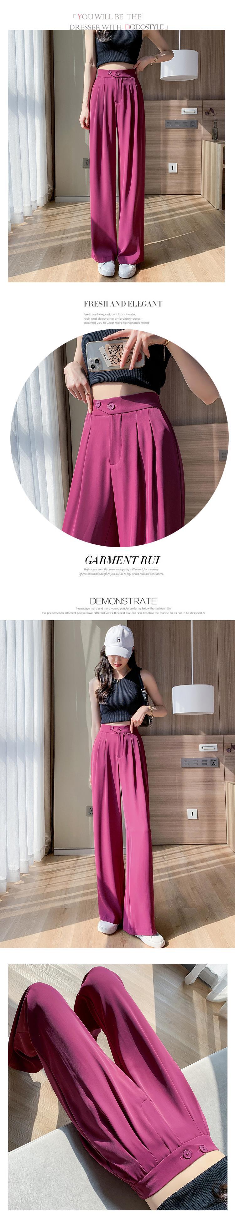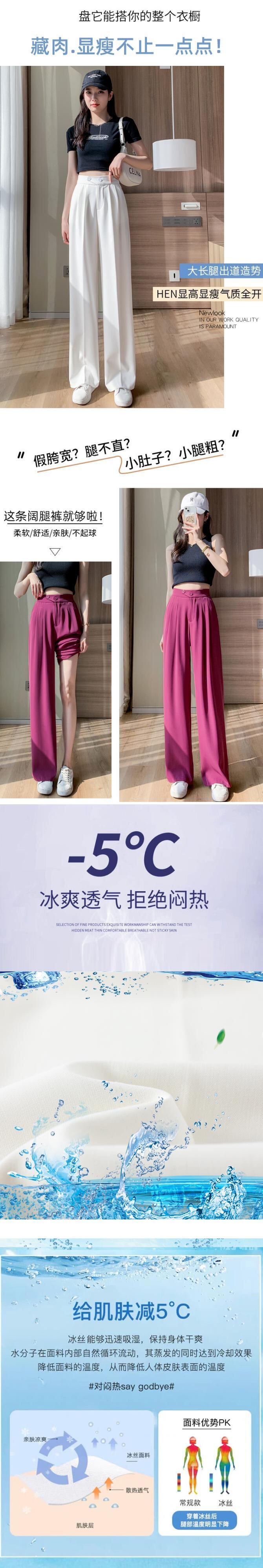 ブラックスーツパンツレディースサマーシンアイスシルクワイドレッグパンツデザインストレートハイウエストドレープカジュアルモッピングパンツ ハイウェスト 夏物 7460011763612118 | framboise21