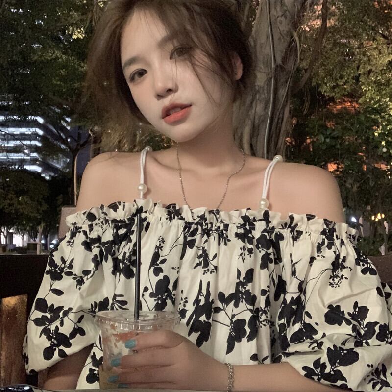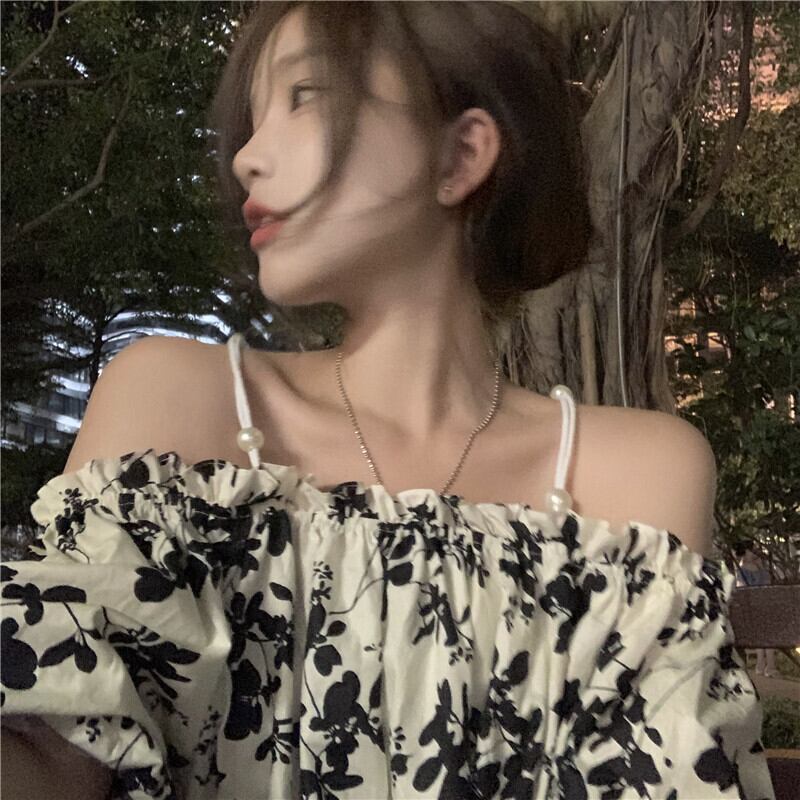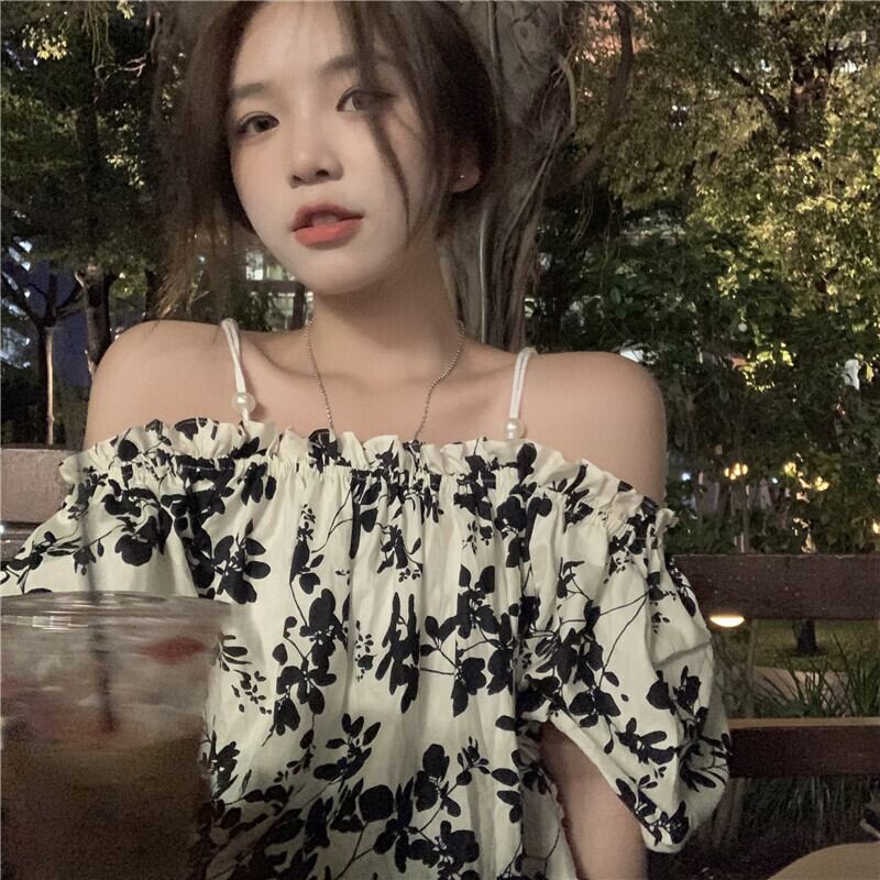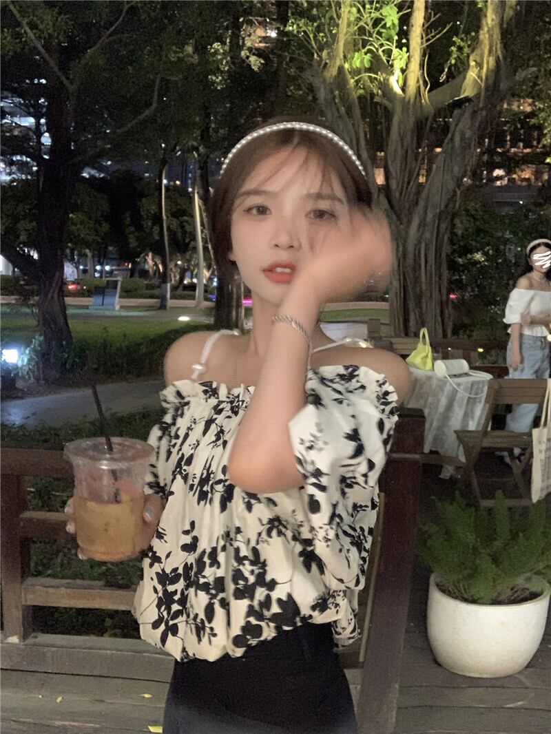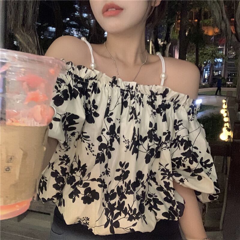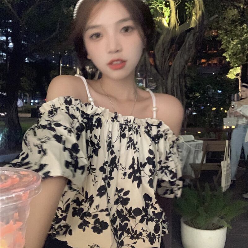 小さなフレッシュなワンショルダートップの女性のデザインセンスの小さなフランスの気質の短い花柄のシャツのドレープは夏に薄く感じます ショート サマー 夏物 7460092342968720 | framboise21