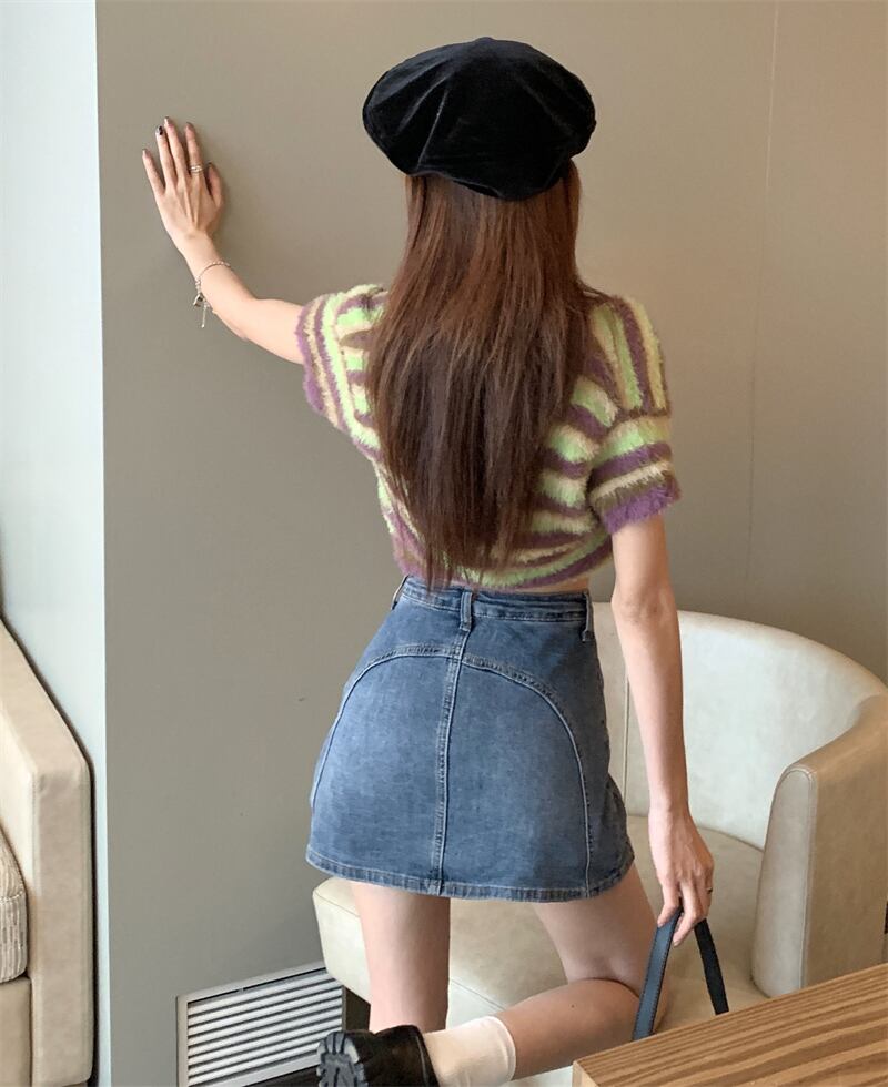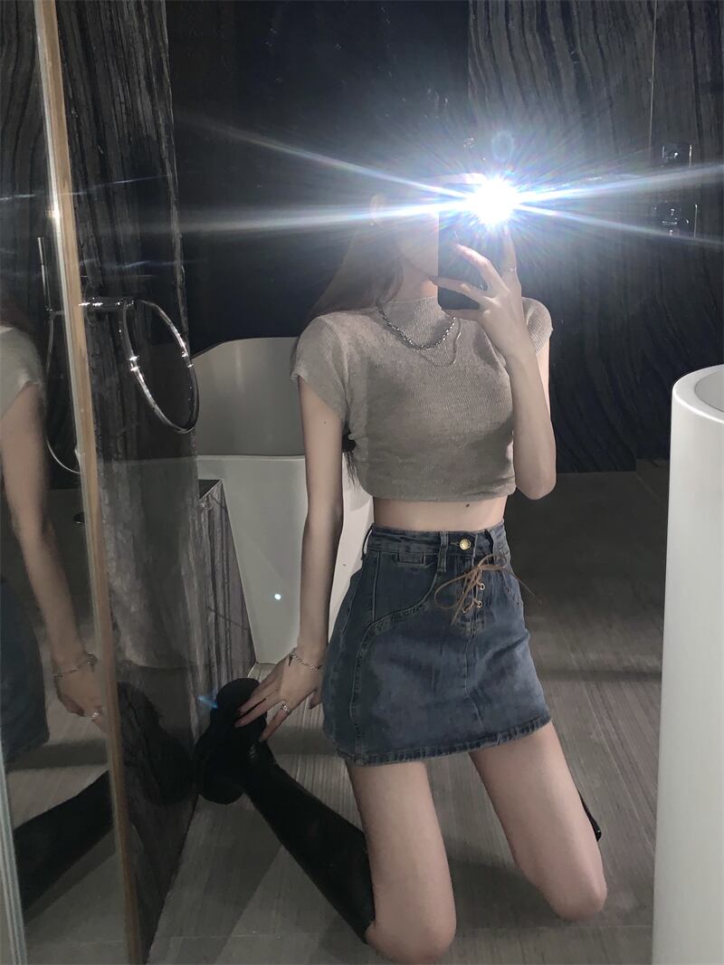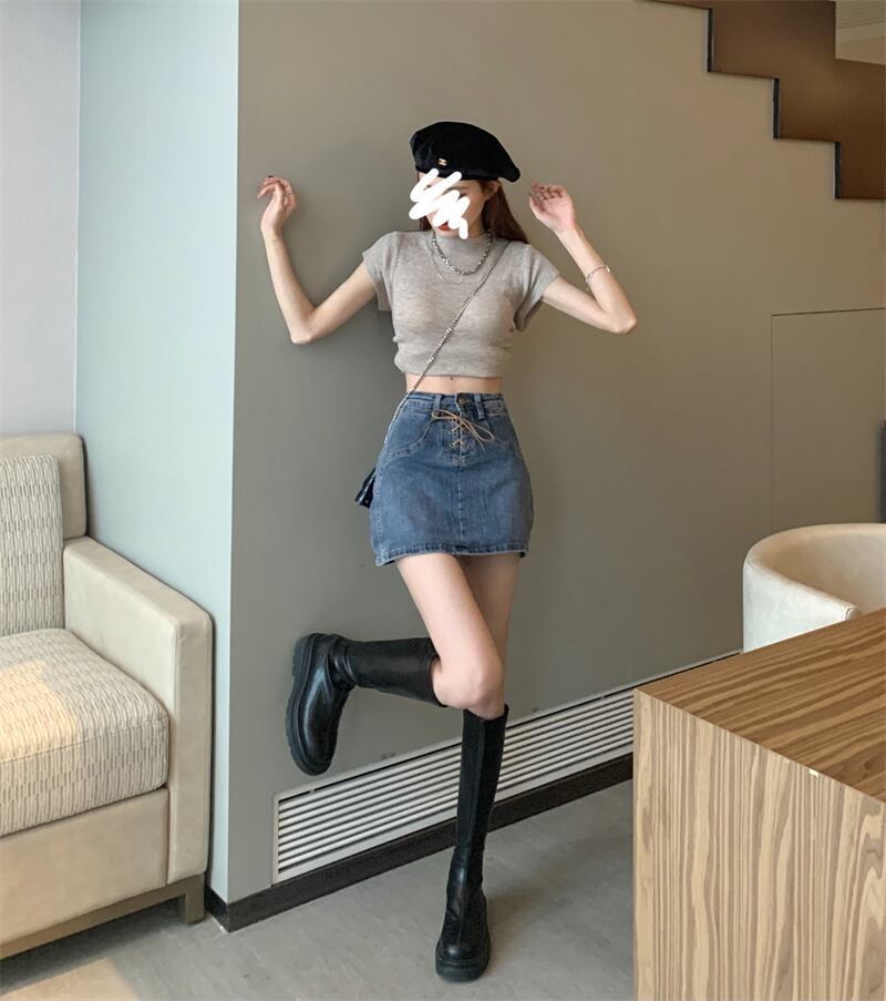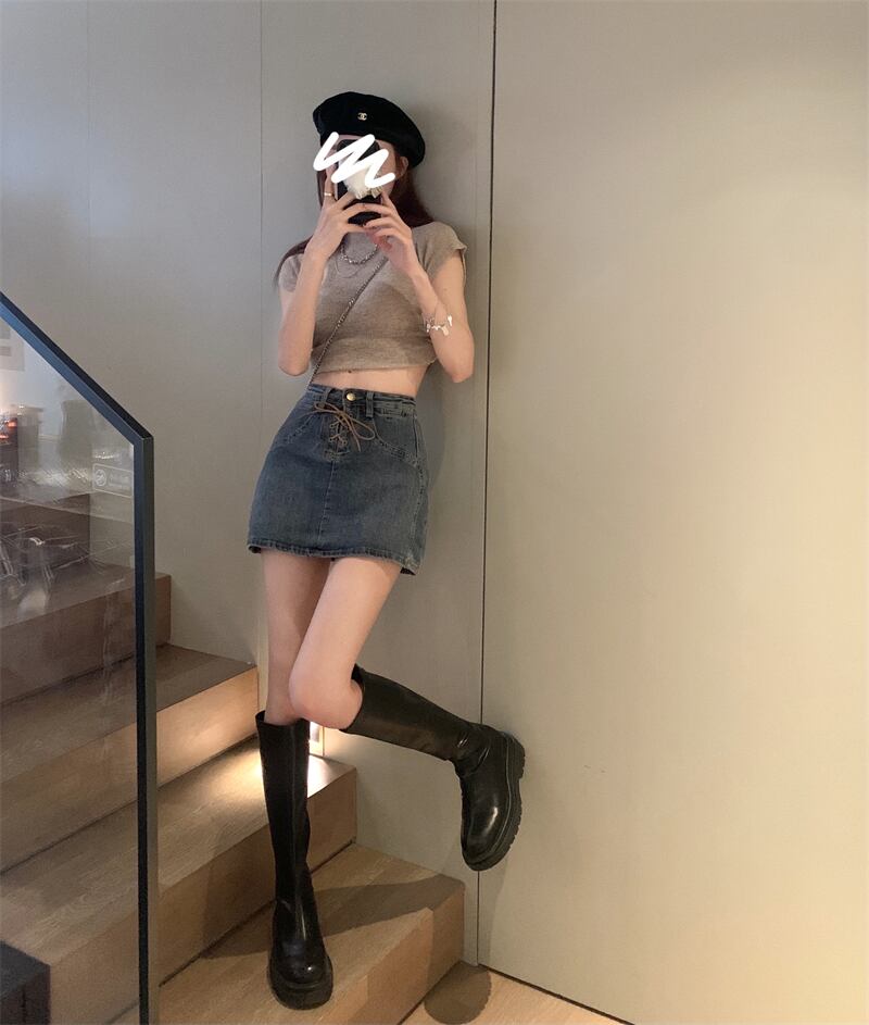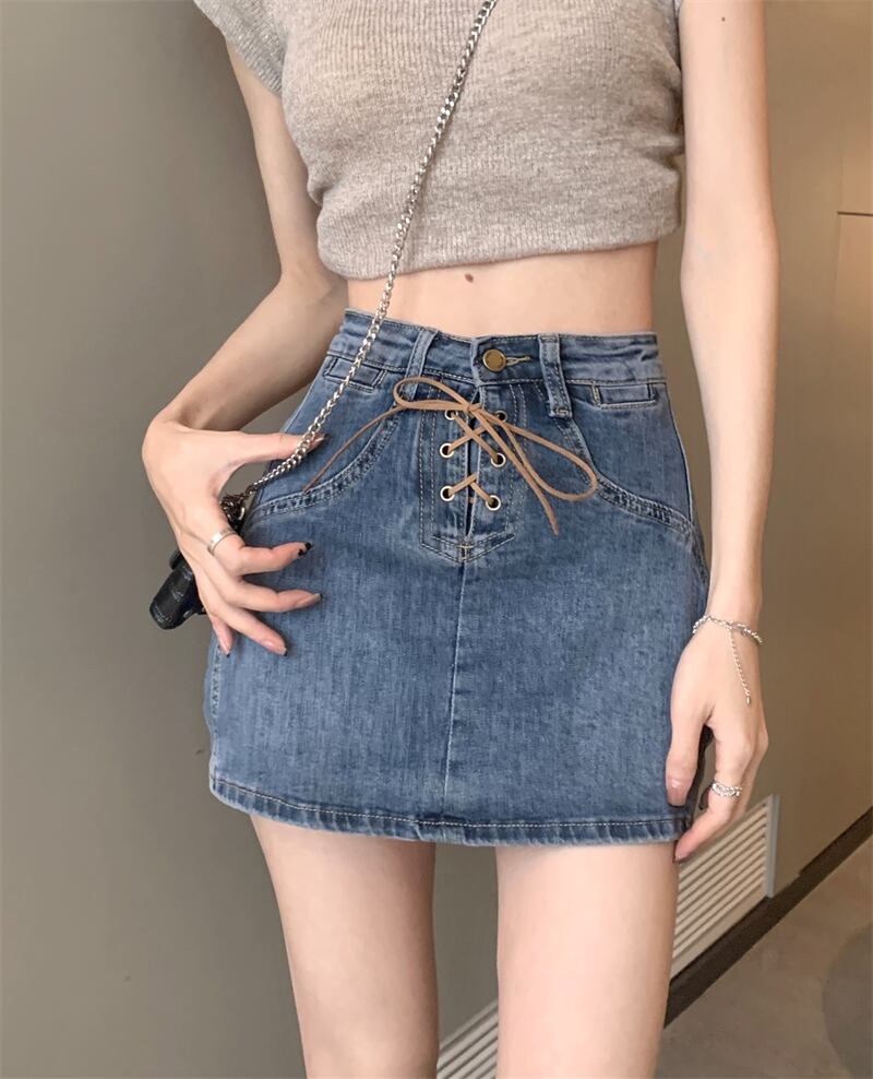 ショートスカートレディースサマー薄手デニムスカートデザインセンスニッチストラップハイウエストワードバッグヒップスカート ハイウェスト 夏物 7460052909542265 | framboise21