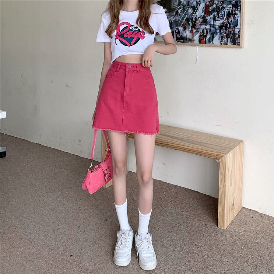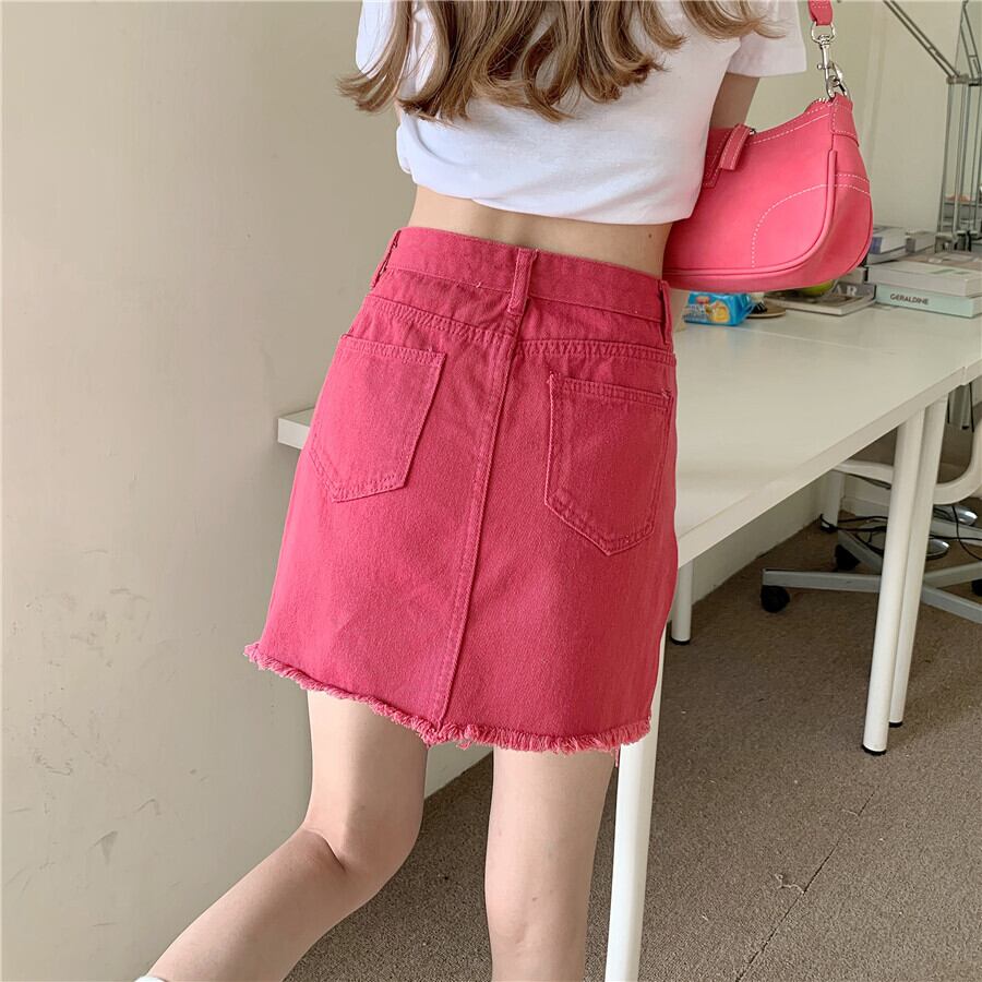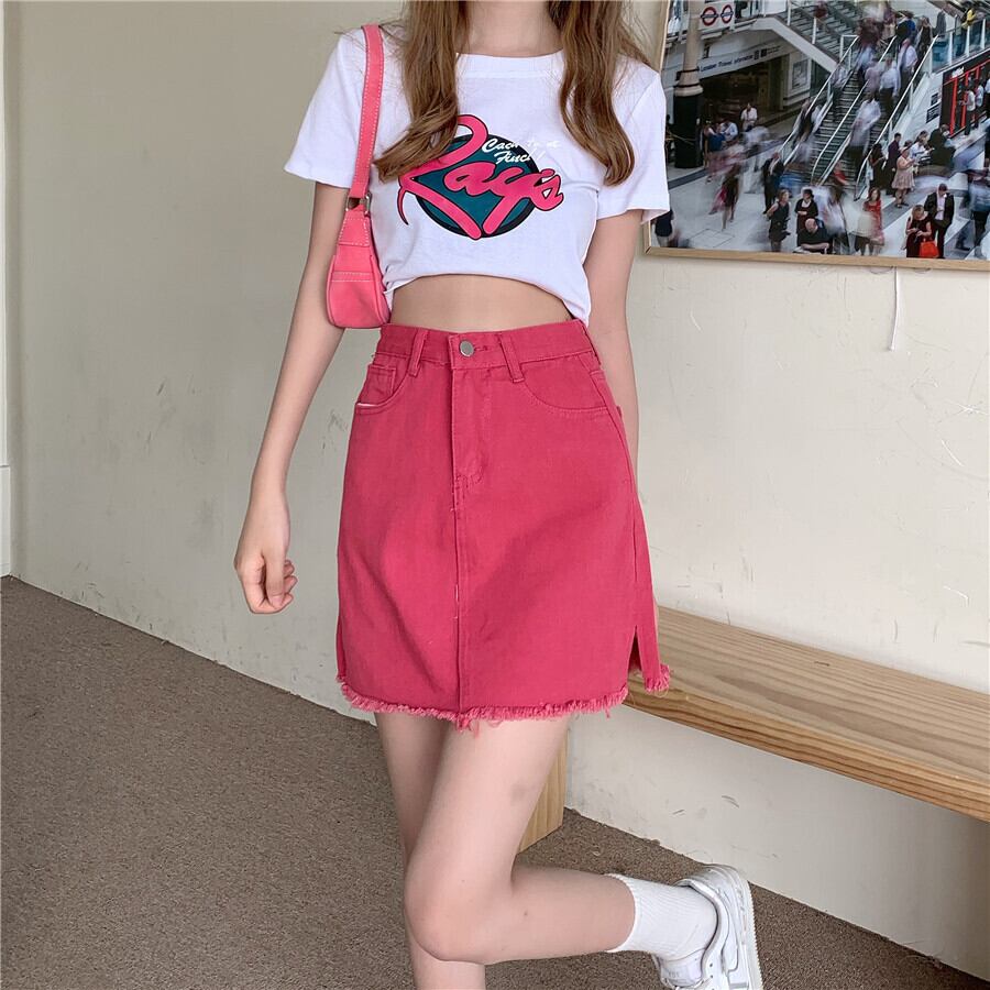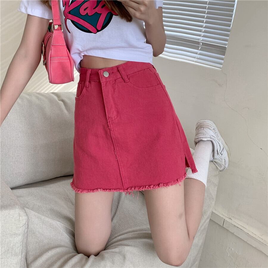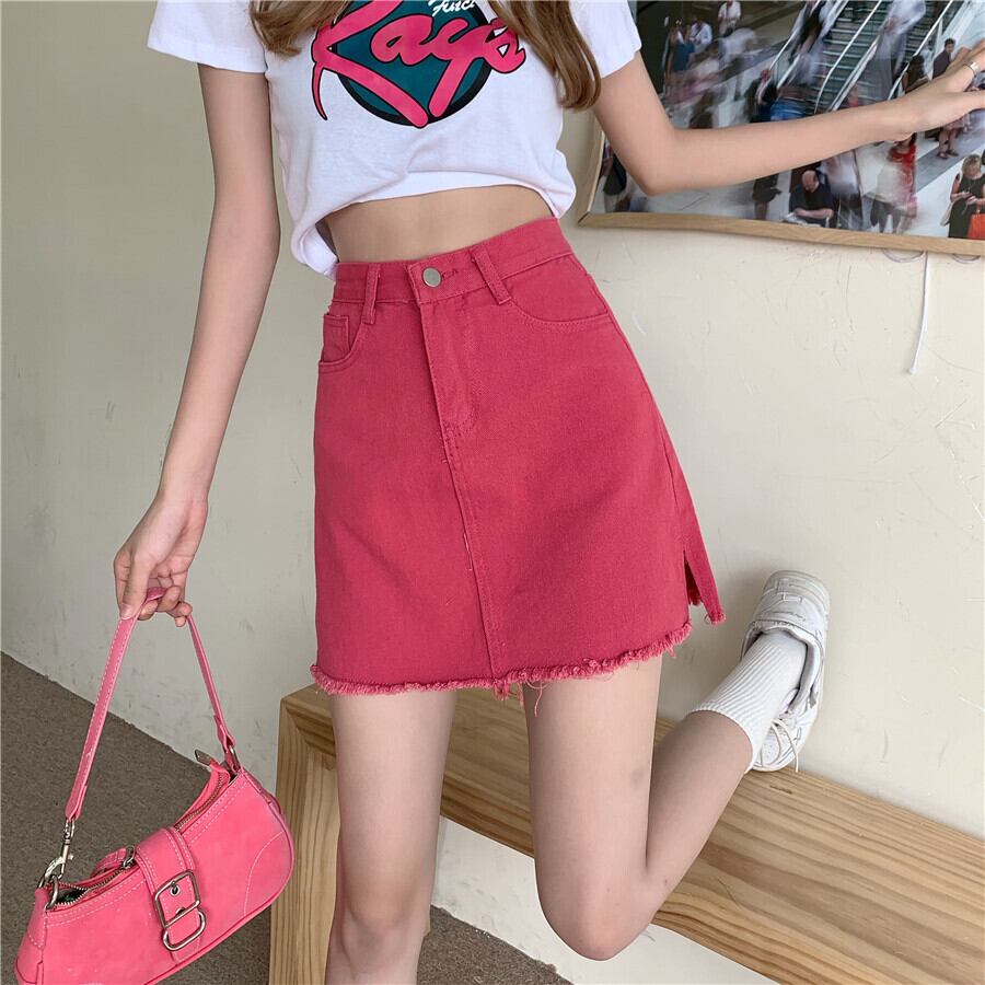 ローズレッドスカート2022新デザインセンスニッチパッケージヒップスカートサマーメスAラインハイウエストデニムスカート ハイウェスト 夏物 7460044203479739 | framboise21