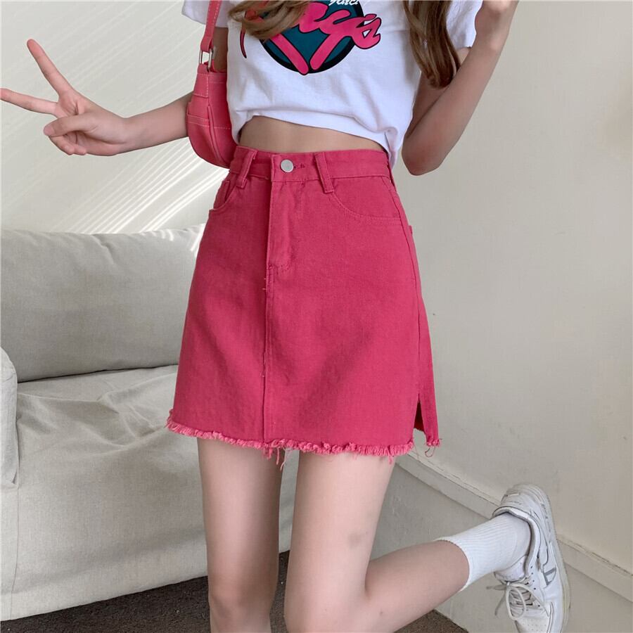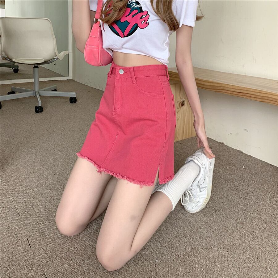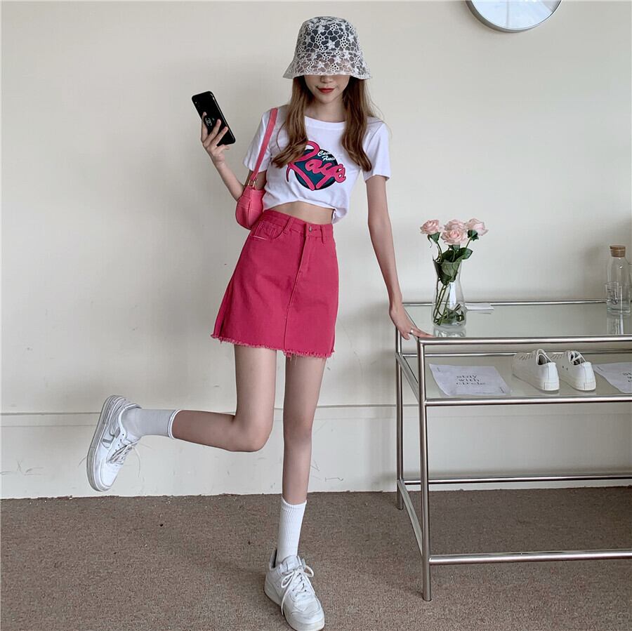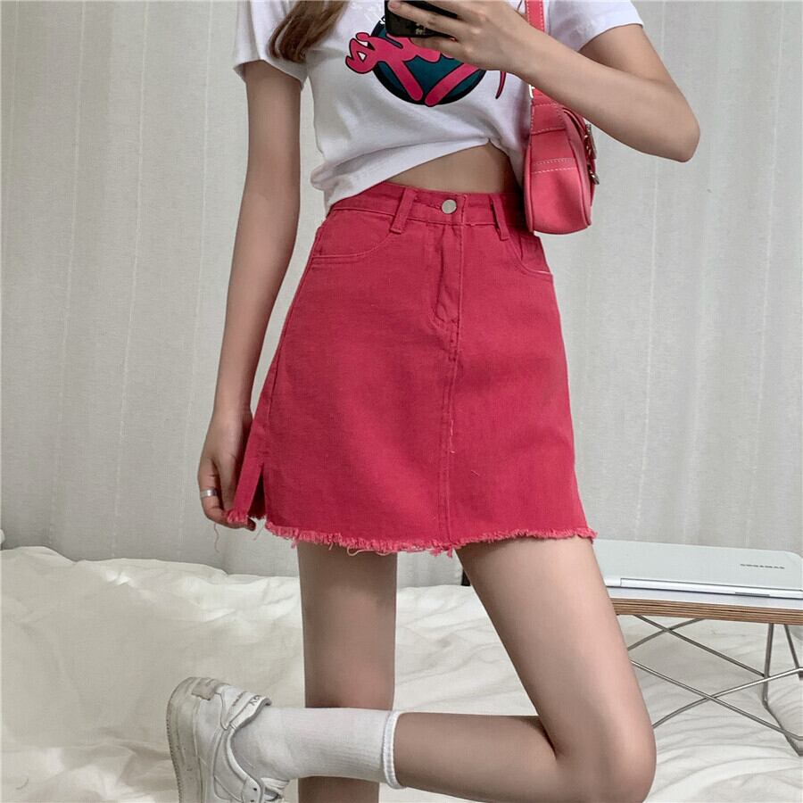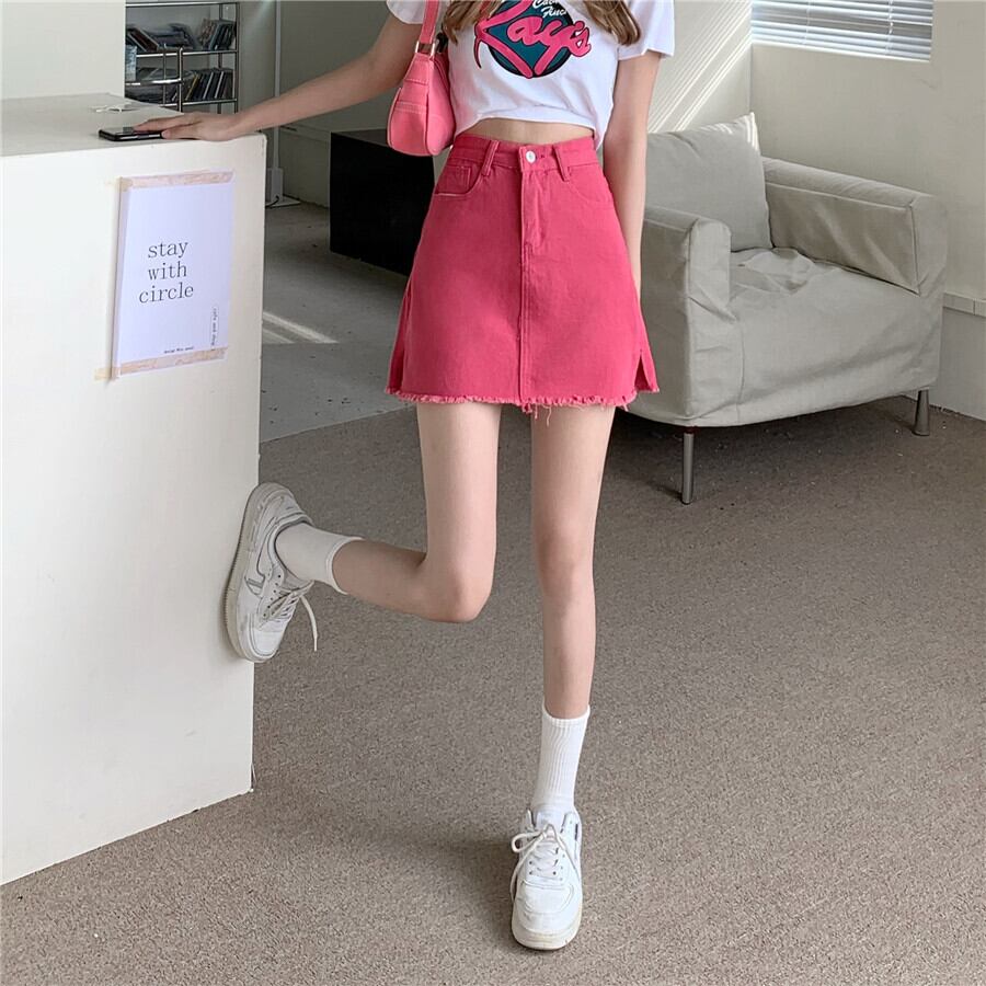 ローズレッドスカート2022新デザインセンスニッチパッケージヒップスカートサマーメスAラインハイウエストデニムスカート ハイウェスト 夏物 7460044203479739 | framboise21