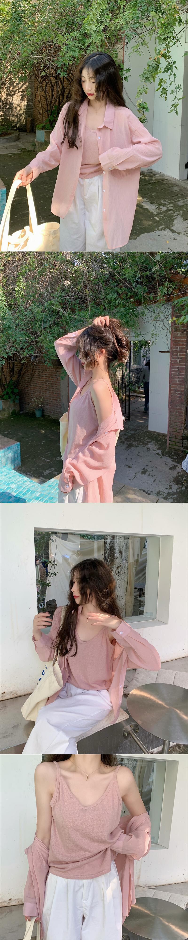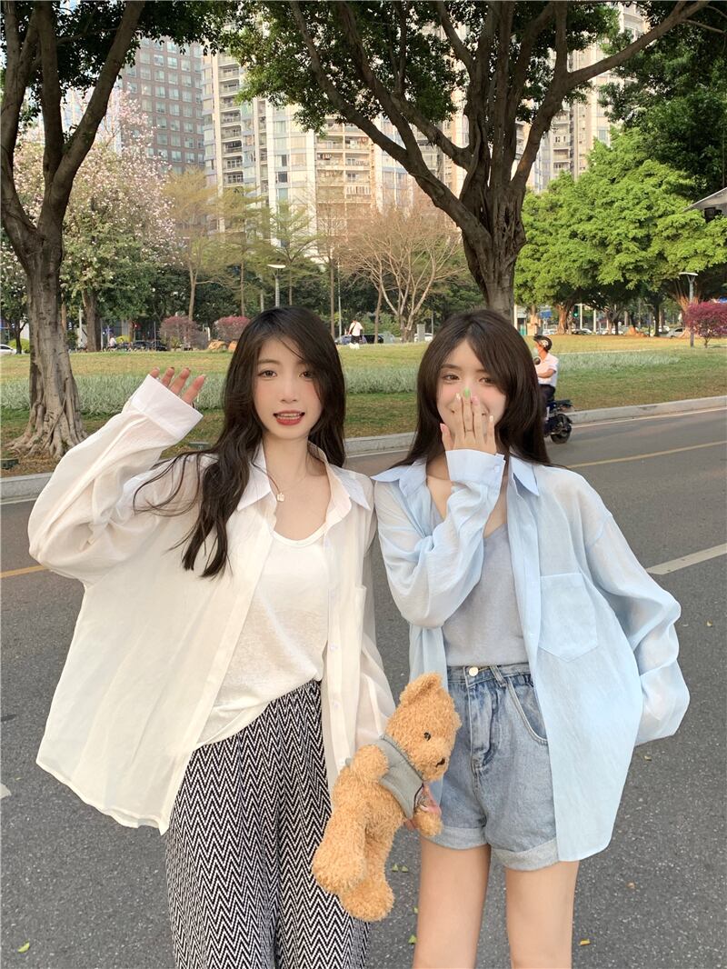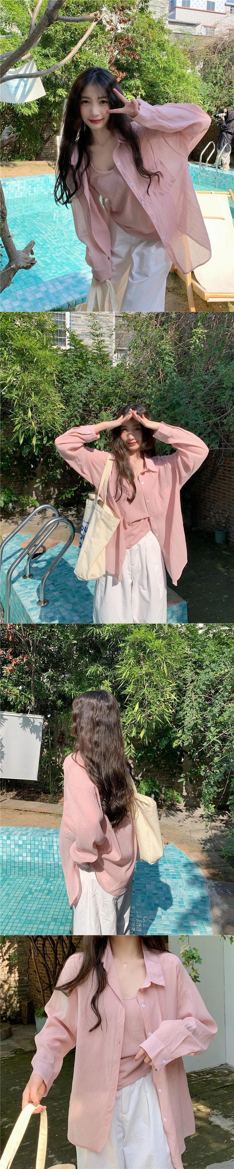 ゆったりとしたオールマッチの長袖日焼け止めシャツレディース薄手で甘いシャツ薄手のコート、カジュアルなサスペンダートップ香港フレーバー ロング 大人ガーリー スウィート キュート 7460098222942104 | framboise21