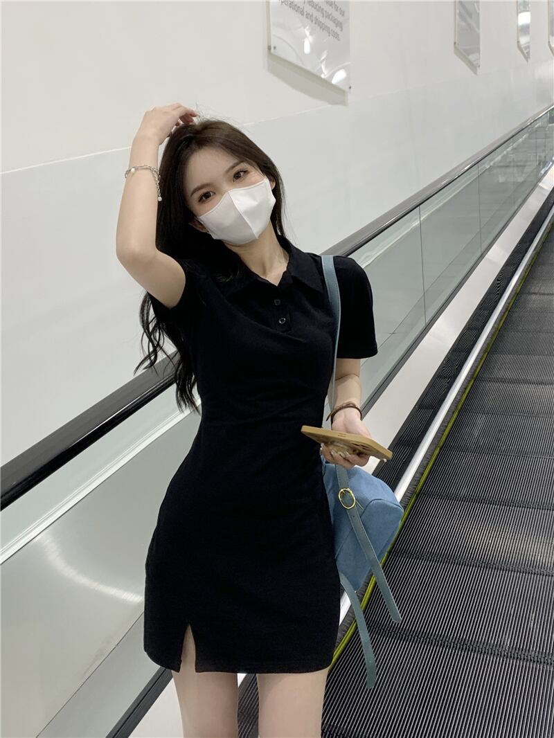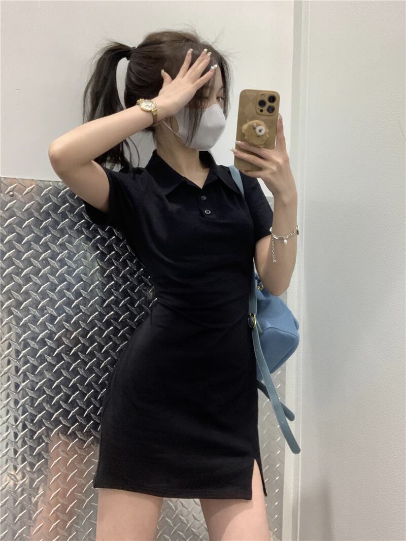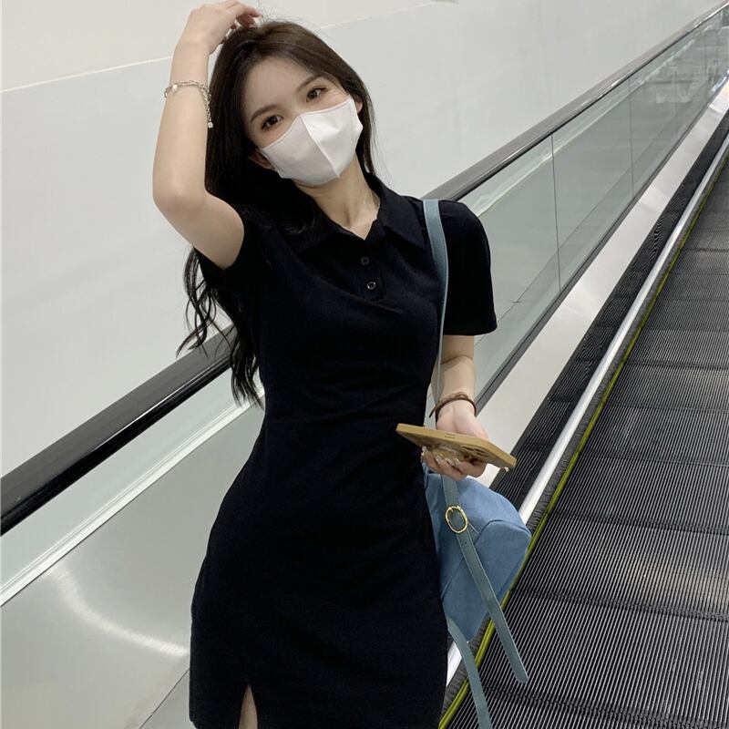 黒のドレス女性の夏のセクシーな純粋な欲望ポロスカート2022新しいフランスのヘップバーンスタイルのリトルブラックドレス サマー 夏物 ピュア 7460022355871778 | framboise21
