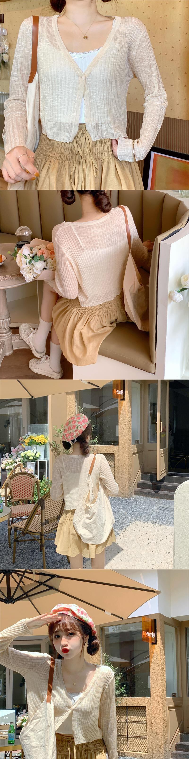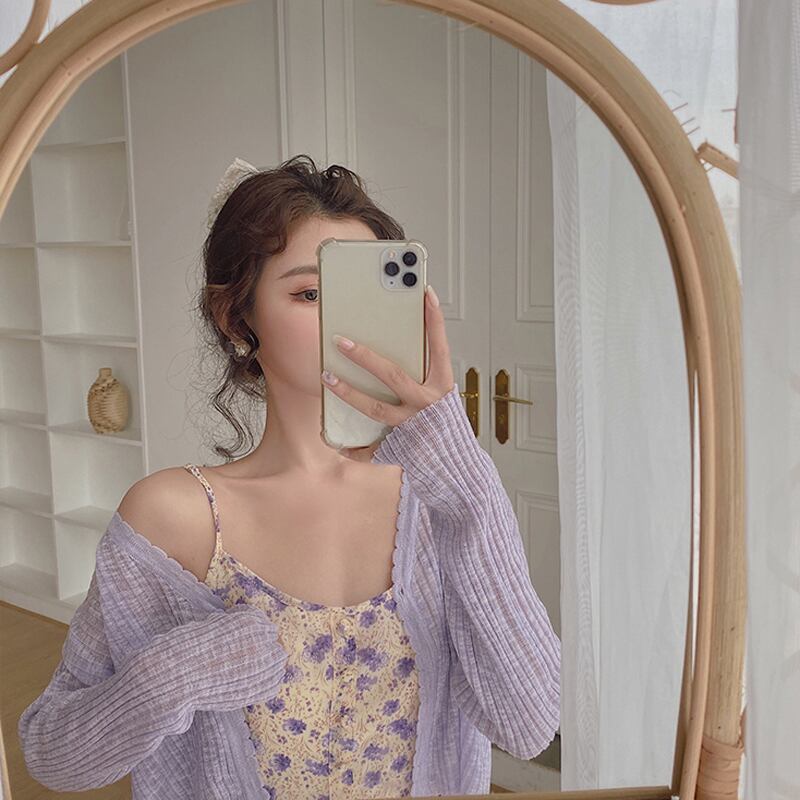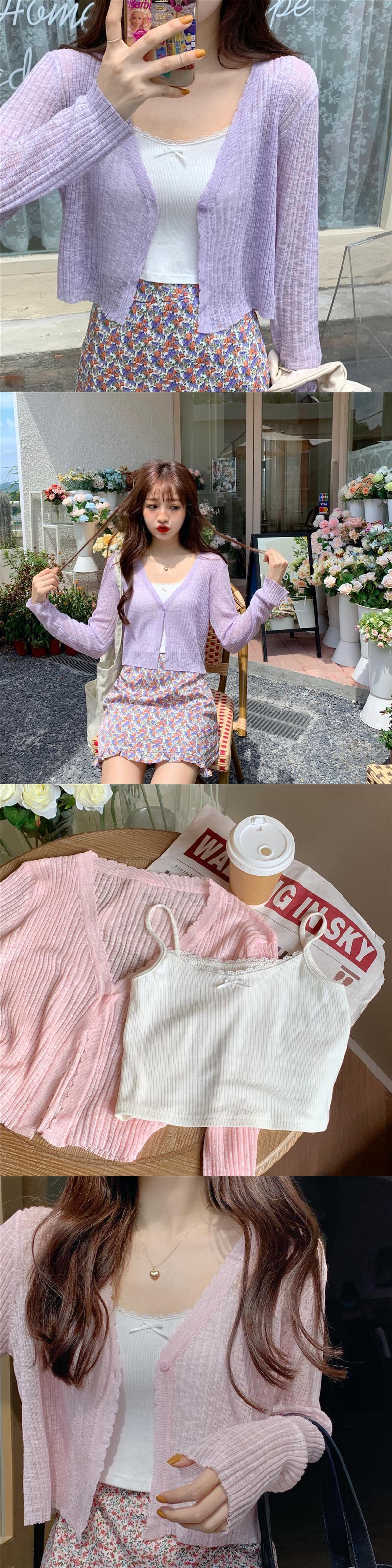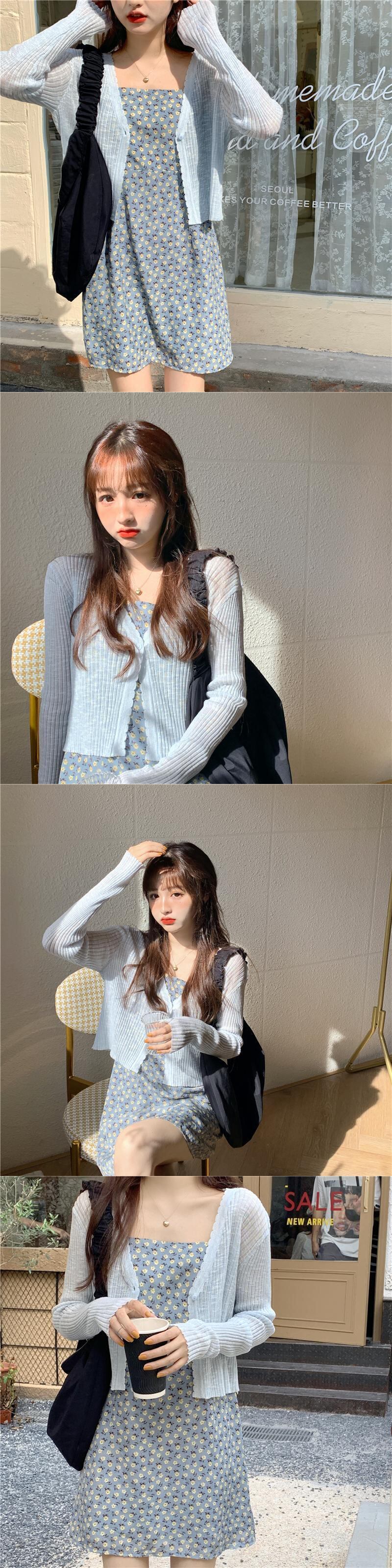 アイスシルクサンスクリーンカーディガンレディースサマーサスペンダースカート、スモックスモックスモールジャケットルーズショートシンセクションニットエアコンシャツ 夏物 7460015470967631 | framboise21