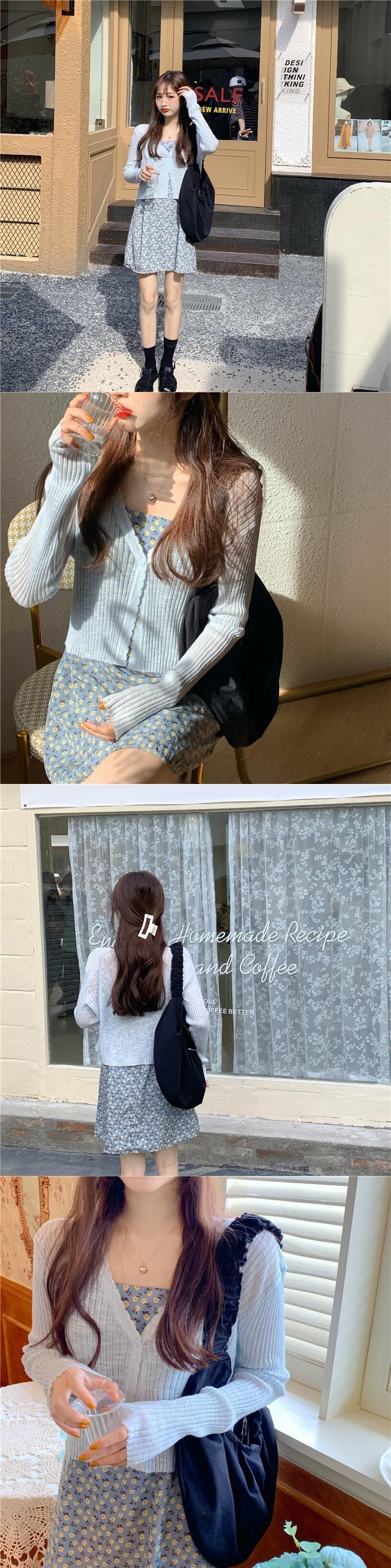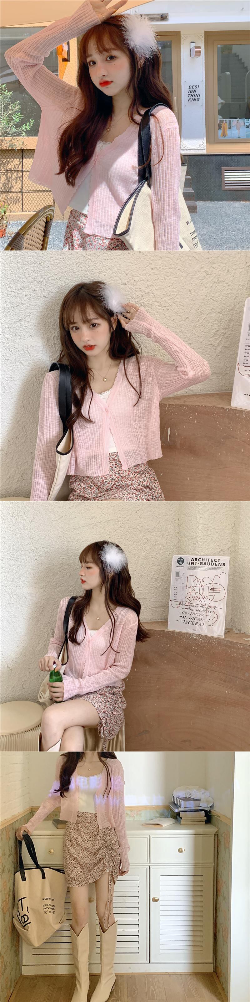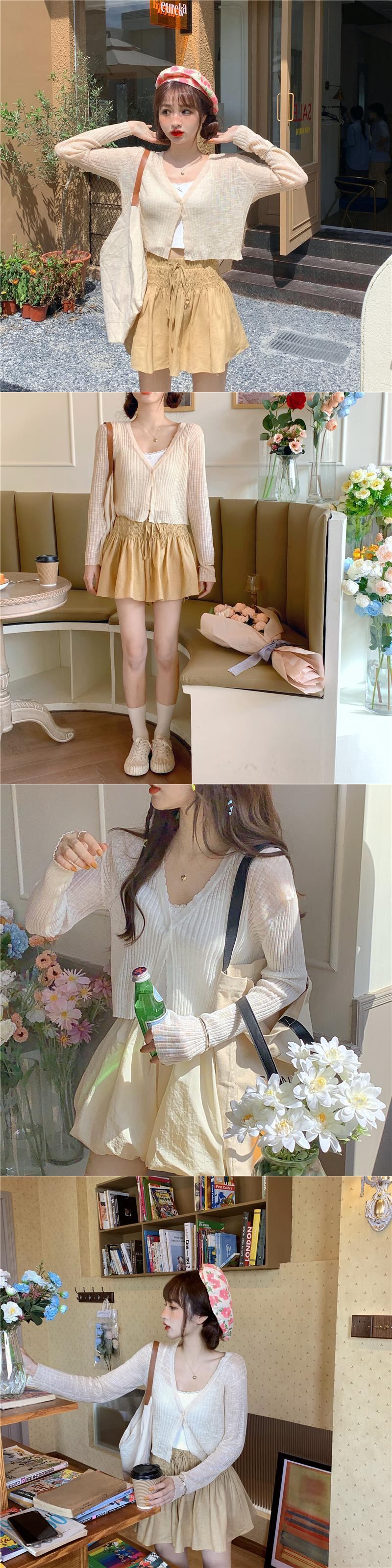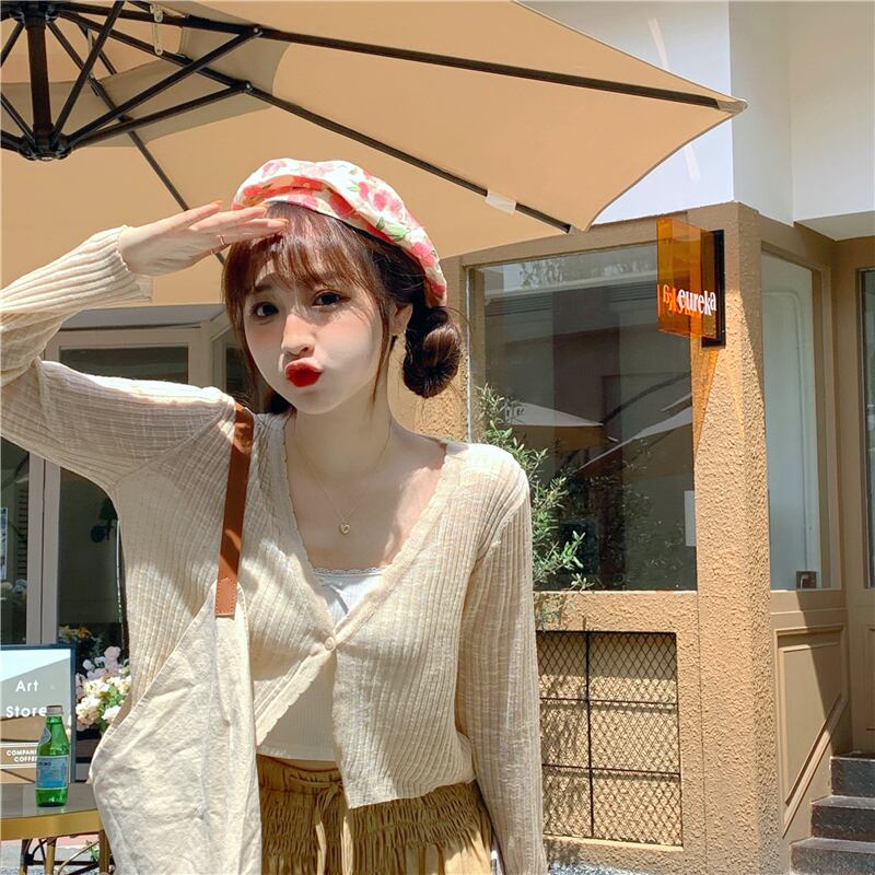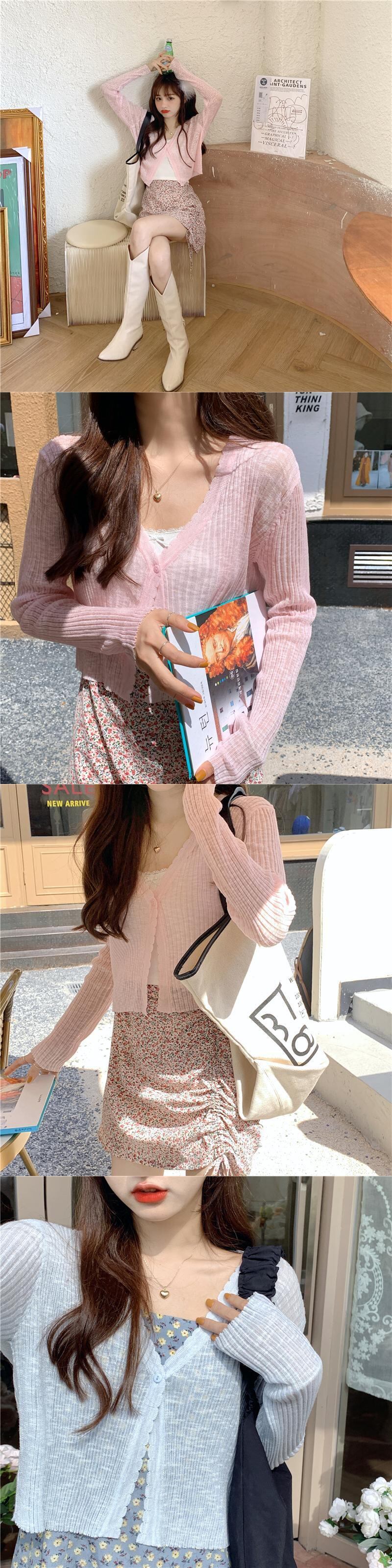 アイスシルクサンスクリーンカーディガンレディースサマーサスペンダースカート、スモックスモックスモールジャケットルーズショートシンセクションニットエアコンシャツ 夏物 7460015470967631 | framboise21