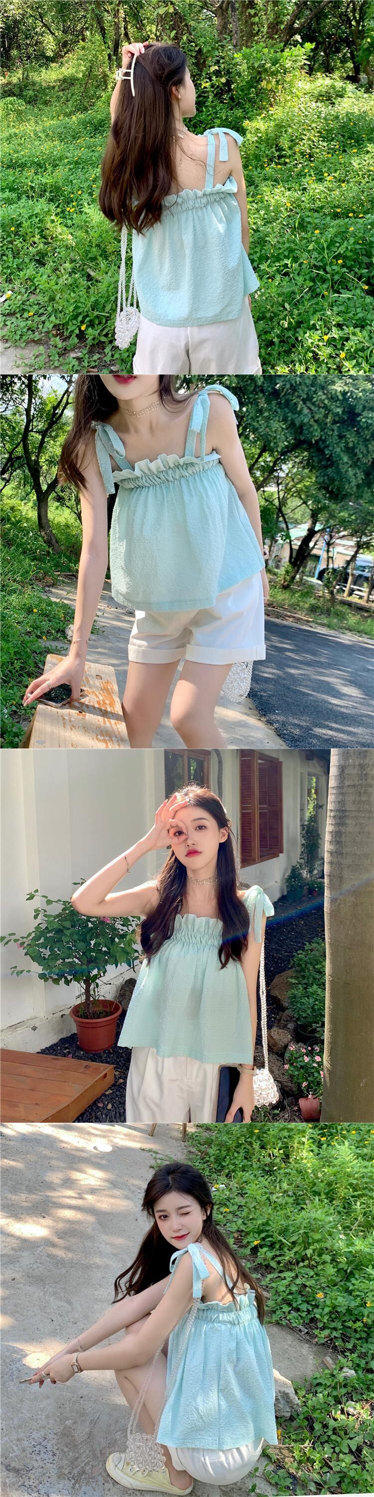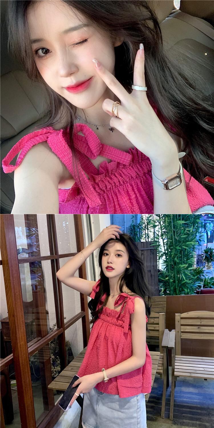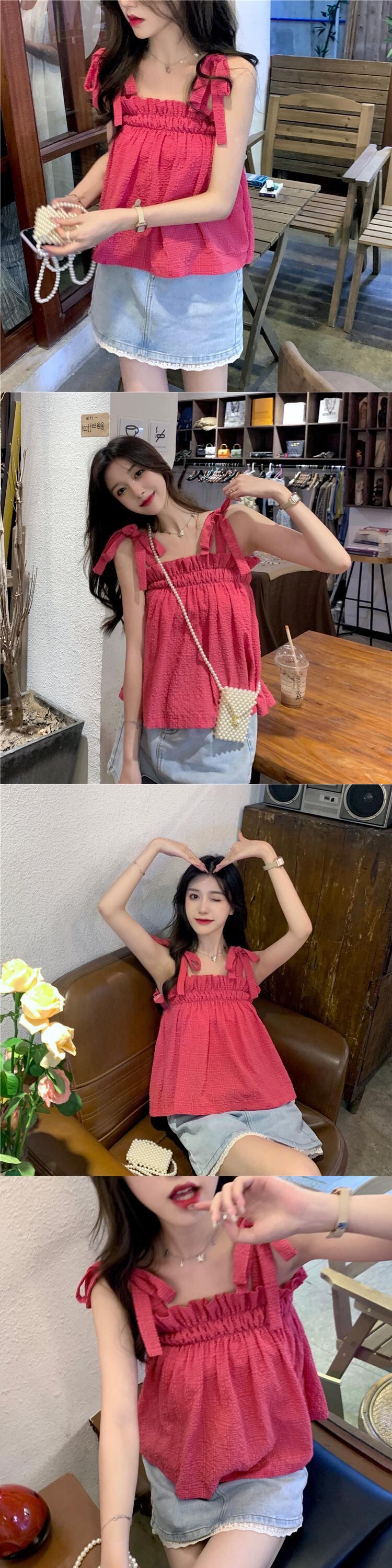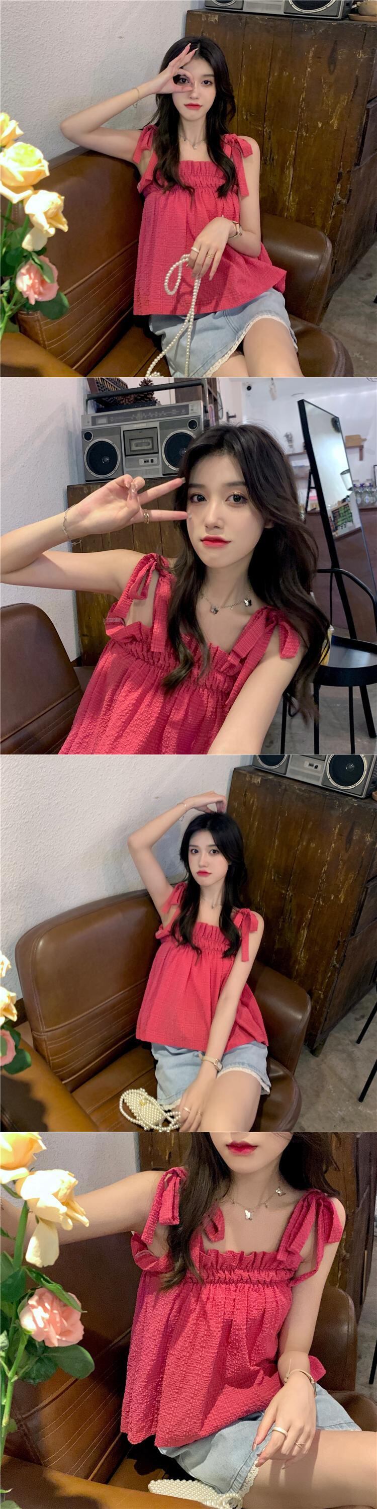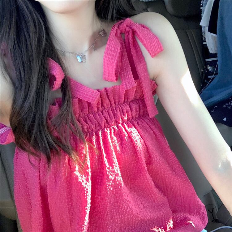 蝶結びの小さな新鮮なラズベリーレッドのサスペンダーデザインのニッチな外見の感覚は、トップの女性の夏のベストの甘いものを着用します 大人ガーリー スウィート キュート カジュアル サマー 夏物 7460038051835827 | framboise21