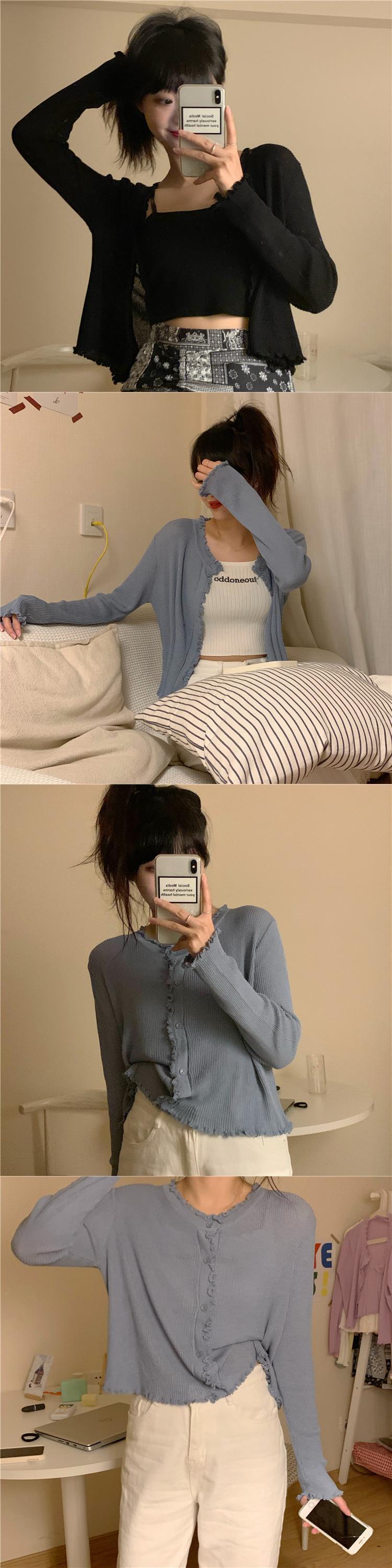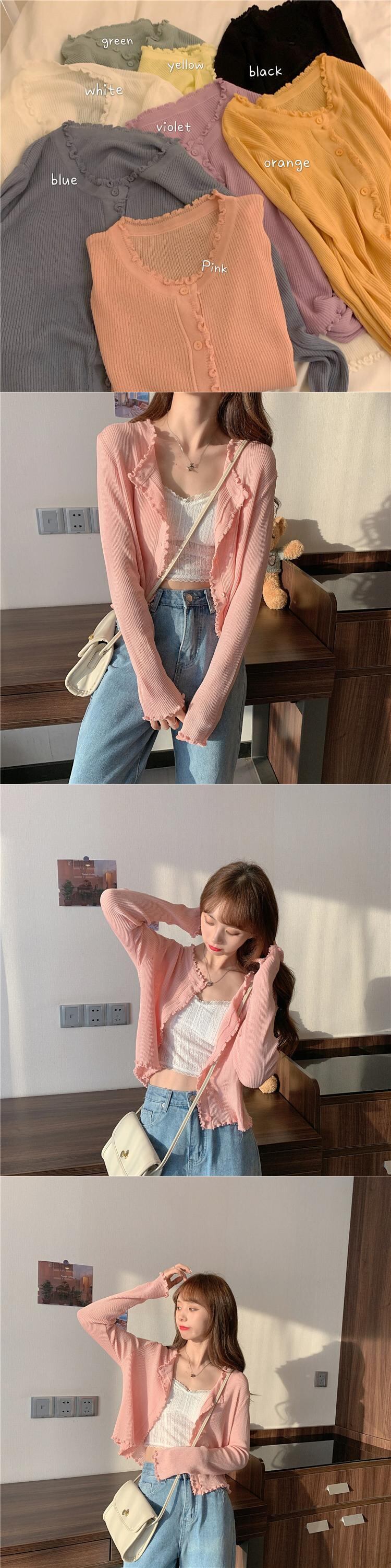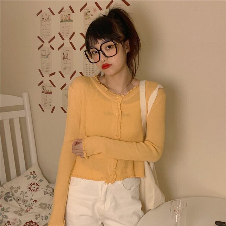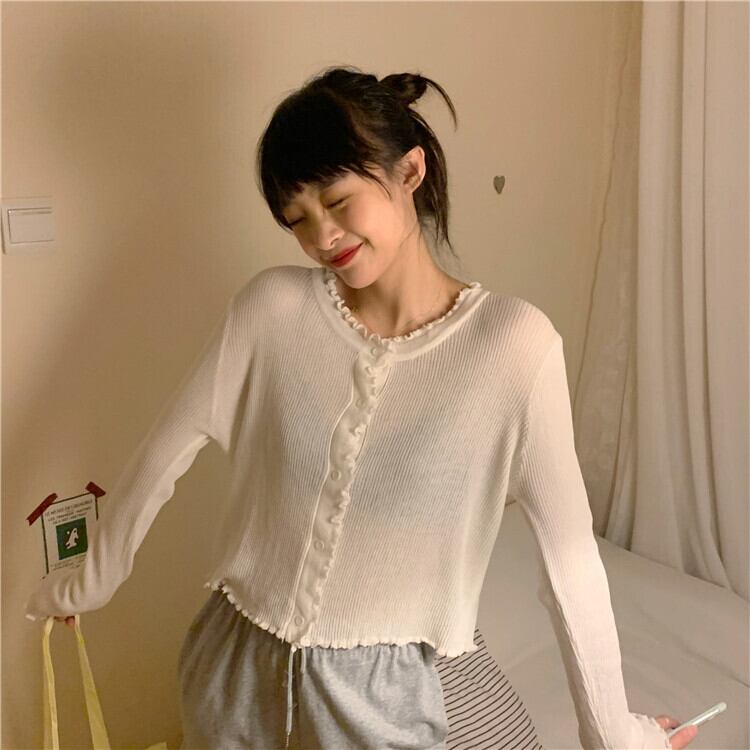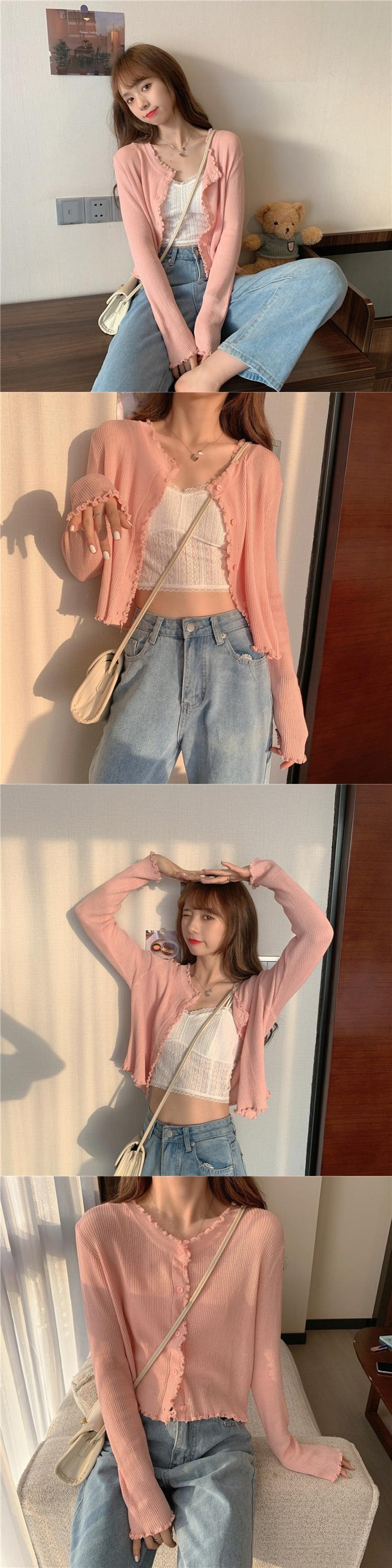 白い日焼け止めカーディガン女性の夏の薄いニットブラウスサスペンダースカート、短いカビの縁の長袖コート ショート ロング ホワイト サマー 夏物 7460086264887983 | framboise21
