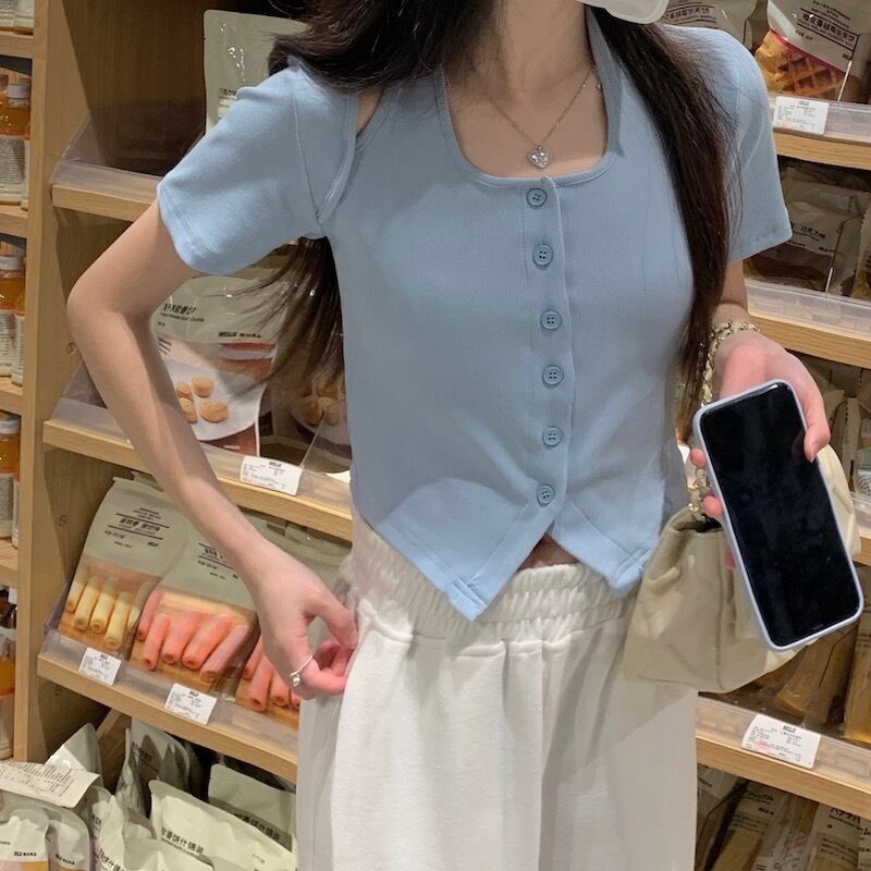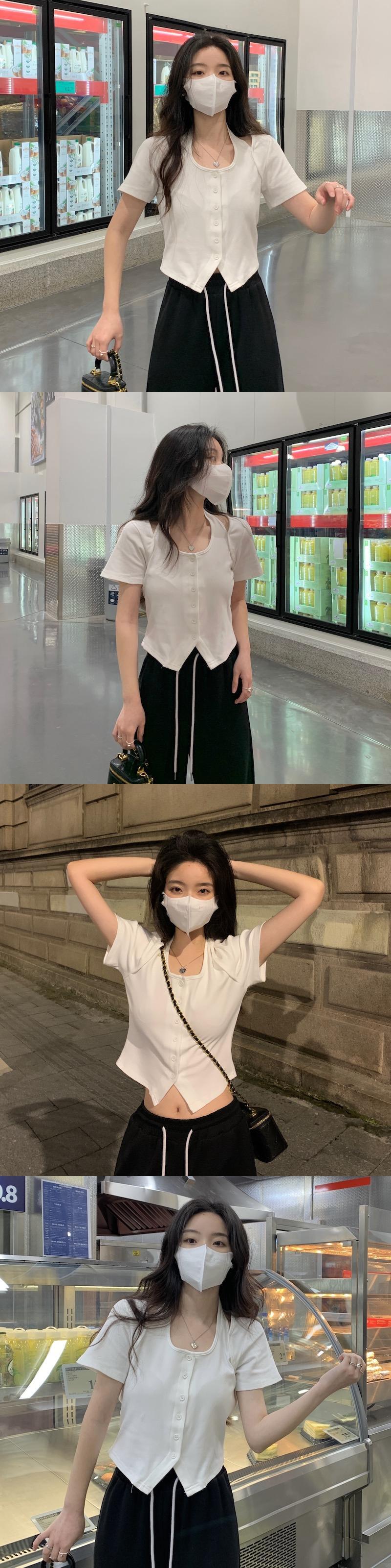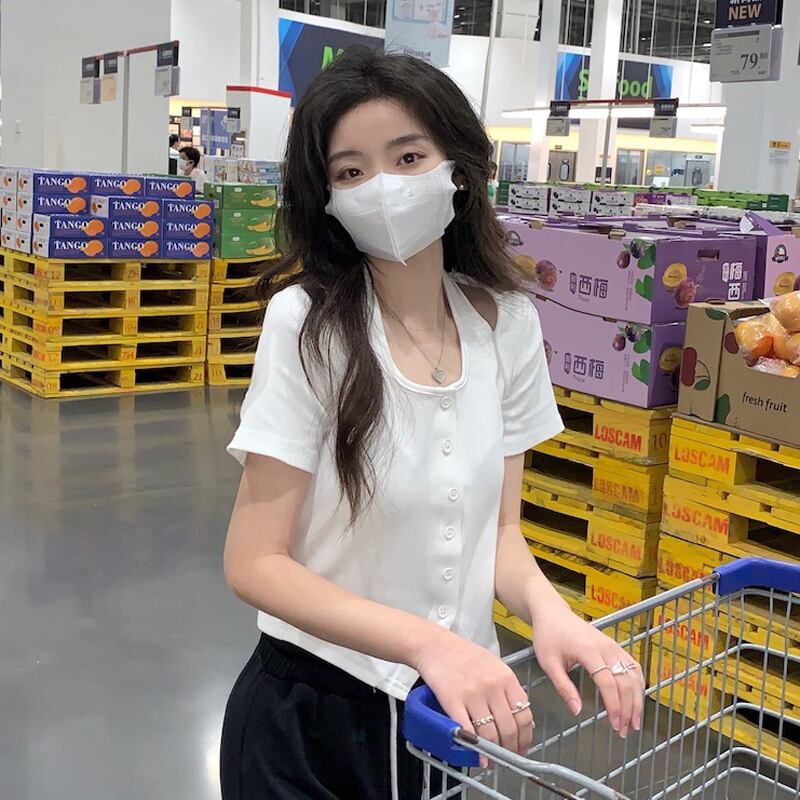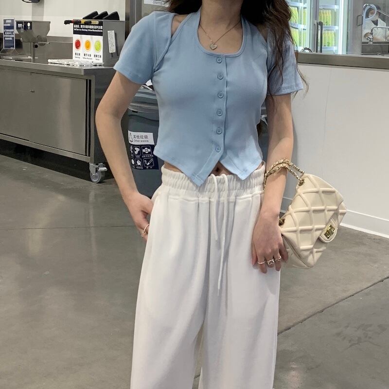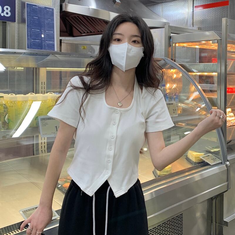 フロントショルダー半袖Tシャツレディースサマーホワイトショートトップ甘くてスパイシーなデザインの不規則なフェイクツーピースホルターシャツ 大人ガーリー スウィート キュート カジュアル 夏物 7460037873250947 | framboise21
