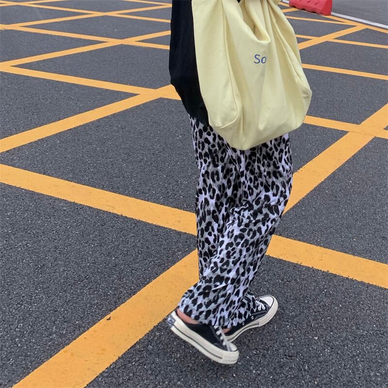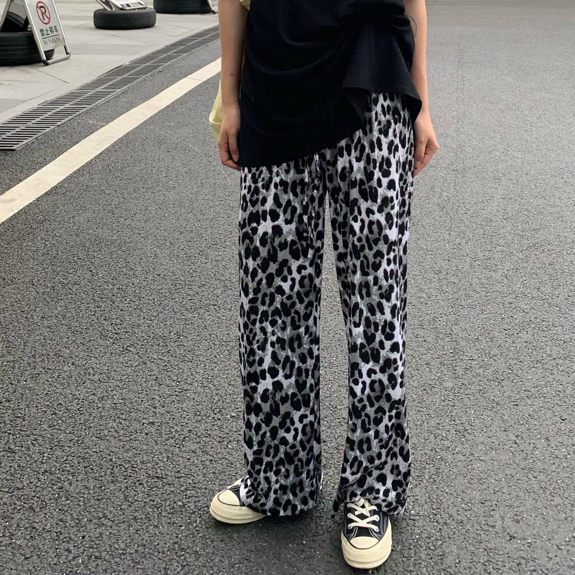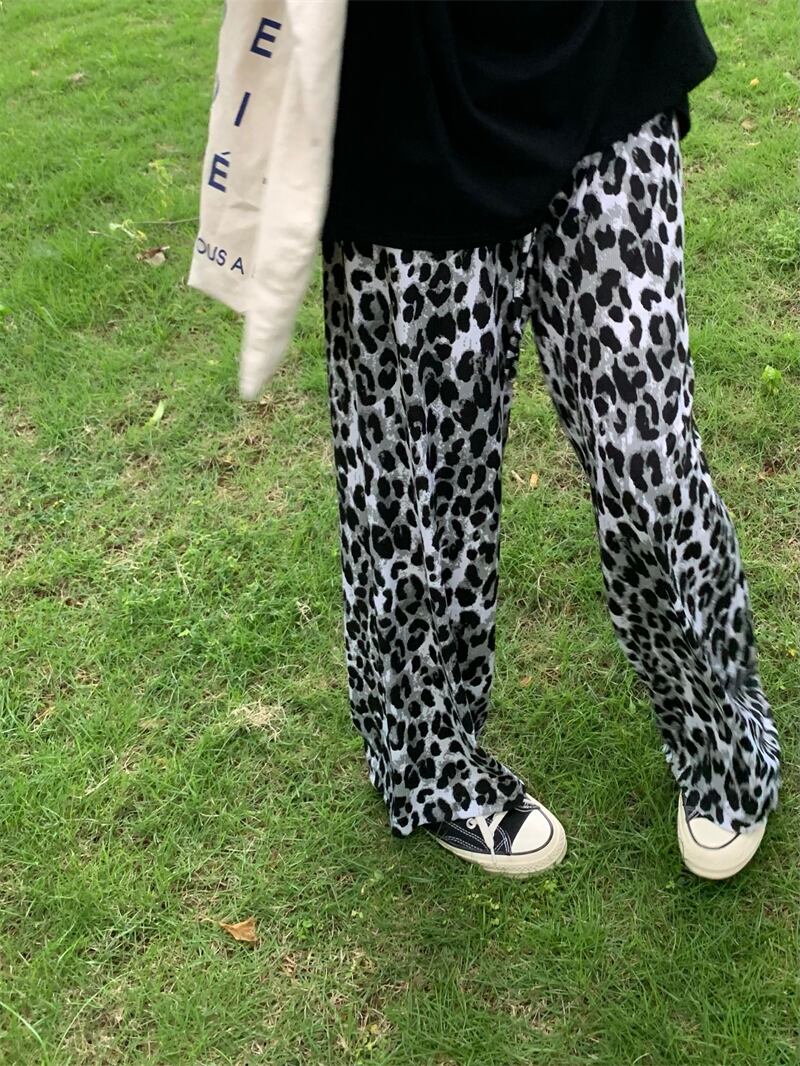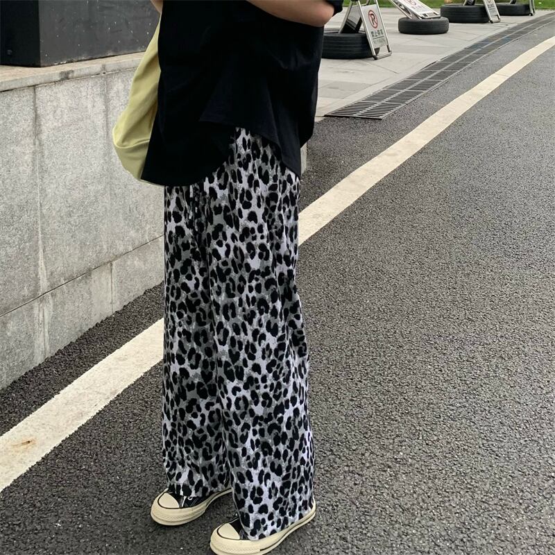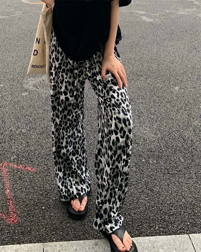 ヒョウ柄ワイドレッグパンツレディースサマーシンストレートカジュアルパンツレトロハイストリートルーズオールマッチハイウエストドレープパンツ ハイウェスト 夏物 7460037228811913 | framboise21