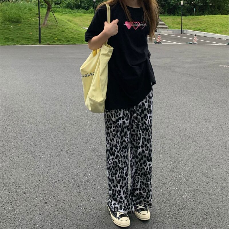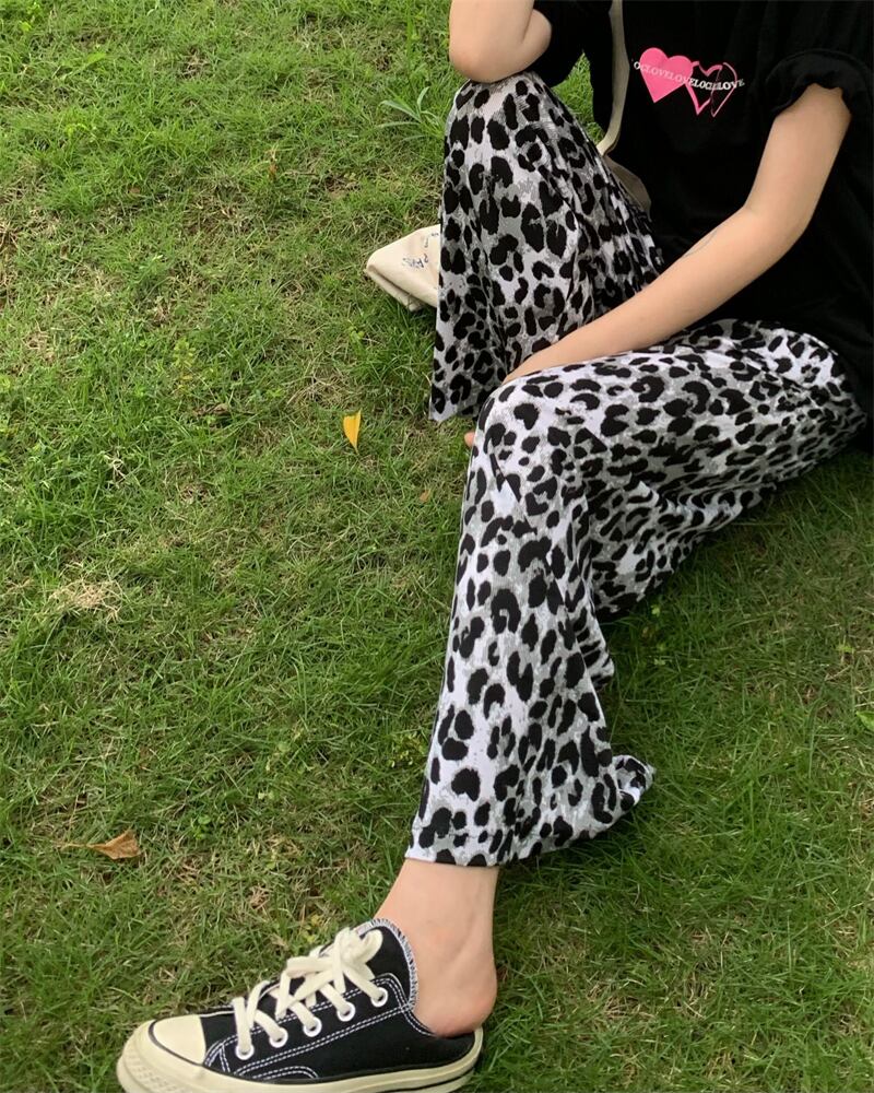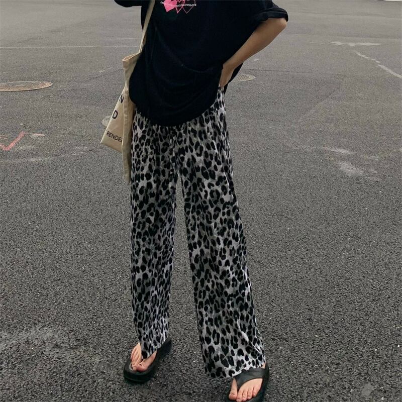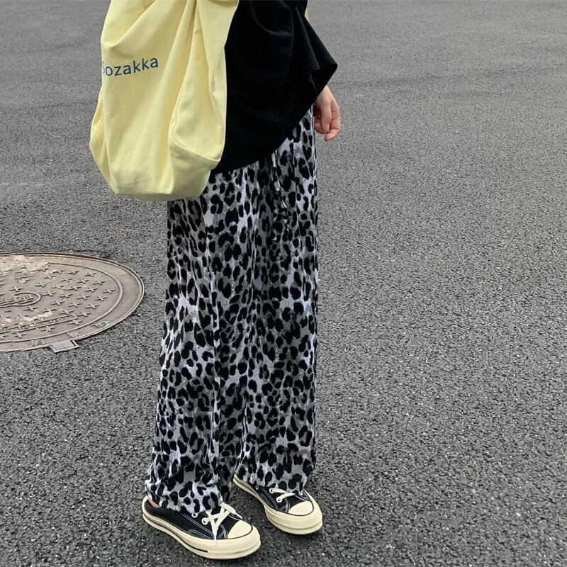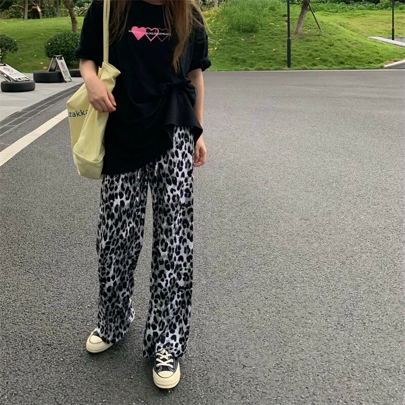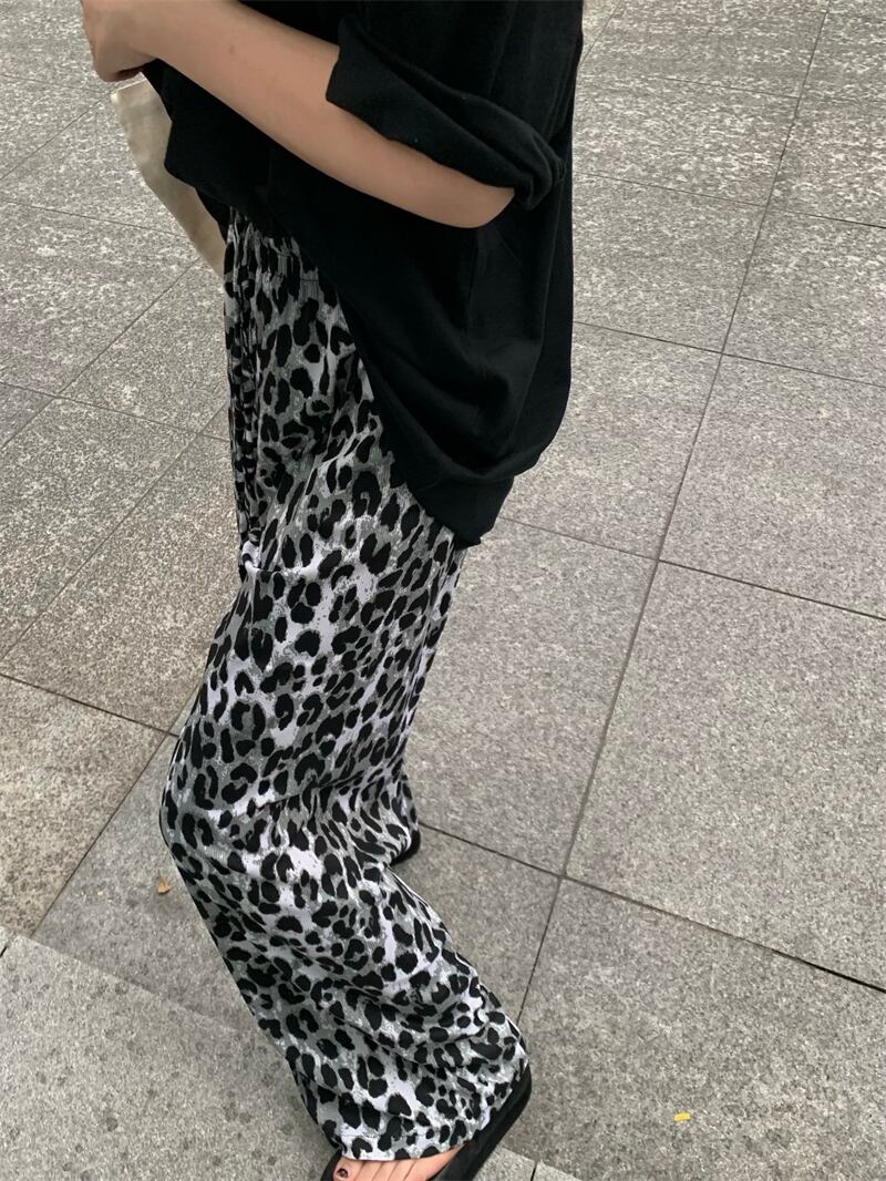 ヒョウ柄ワイドレッグパンツレディースサマーシンストレートカジュアルパンツレトロハイストリートルーズオールマッチハイウエストドレープパンツ ハイウェスト 夏物 7460037228811913 | framboise21